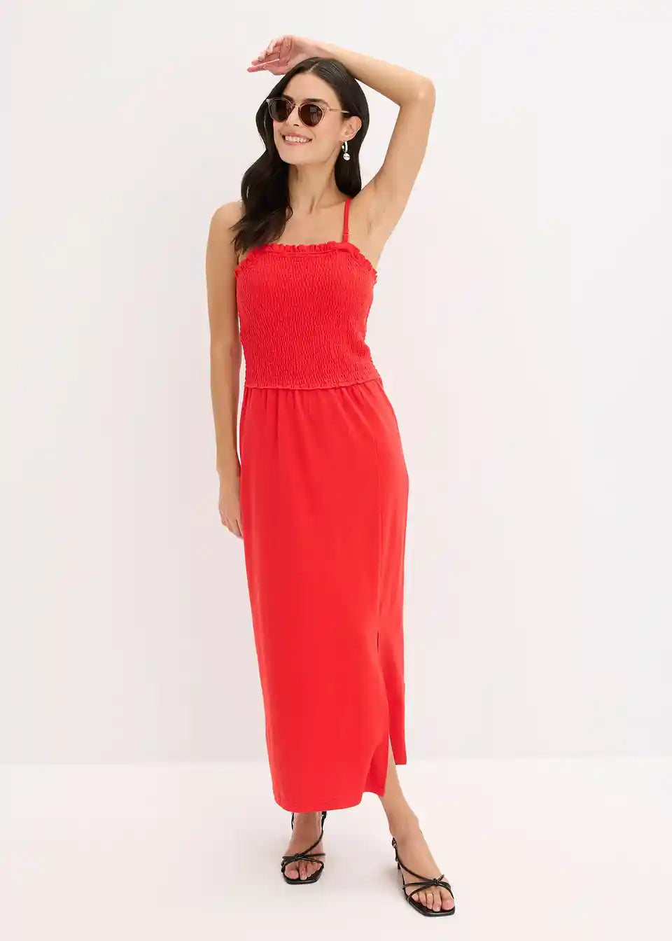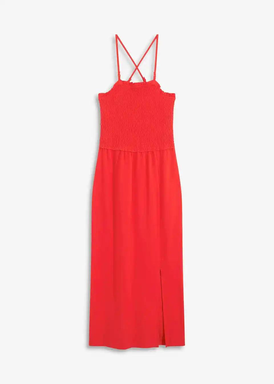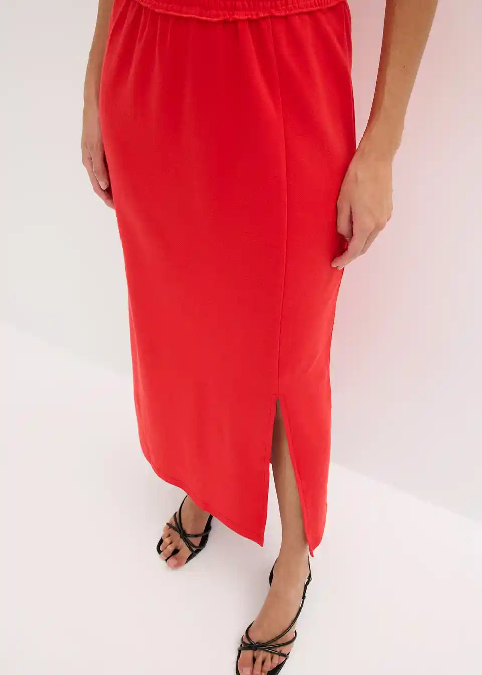 Midi haljina od kompaktnog jerseya s umetkom od gustih nabora i prorezom