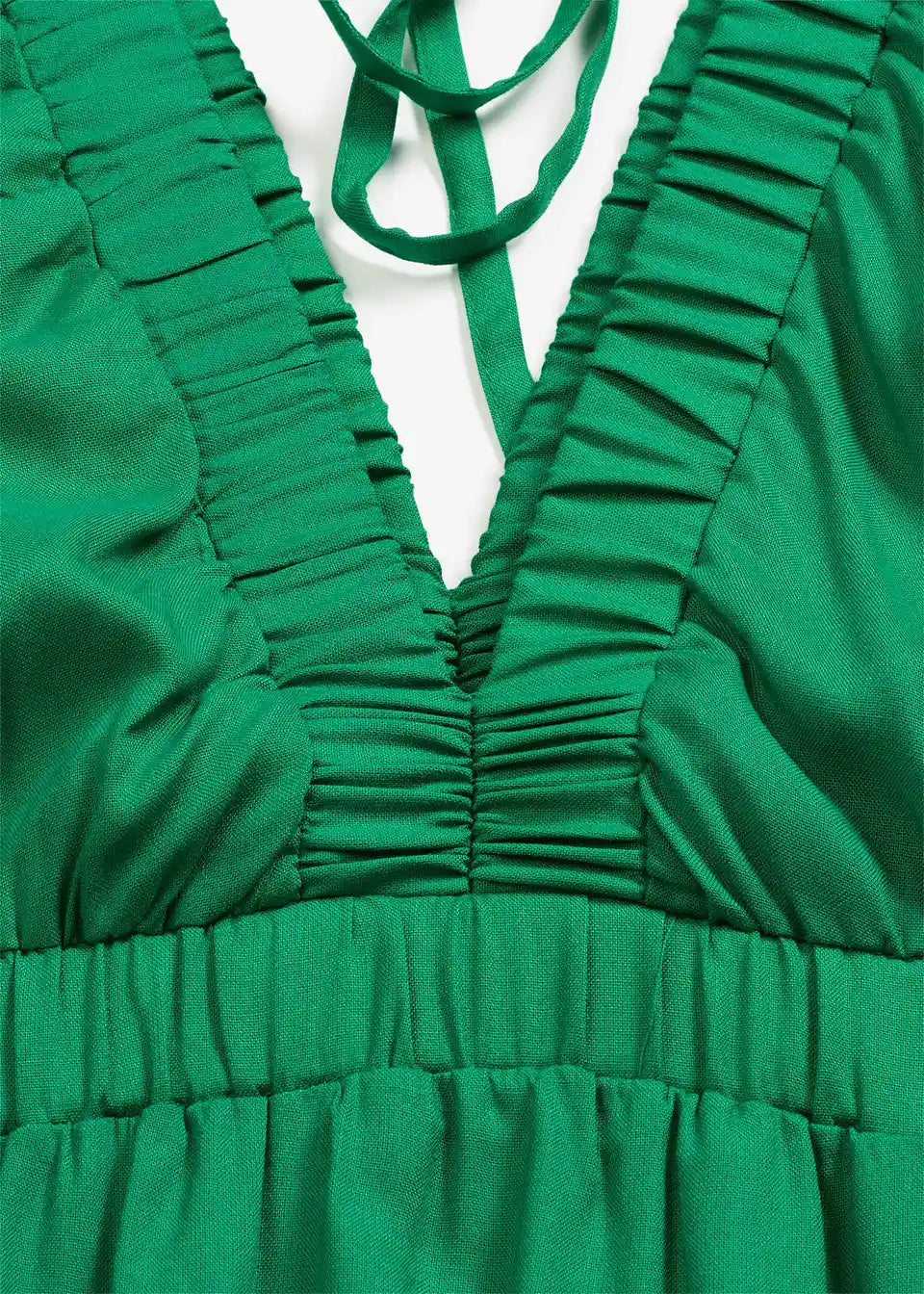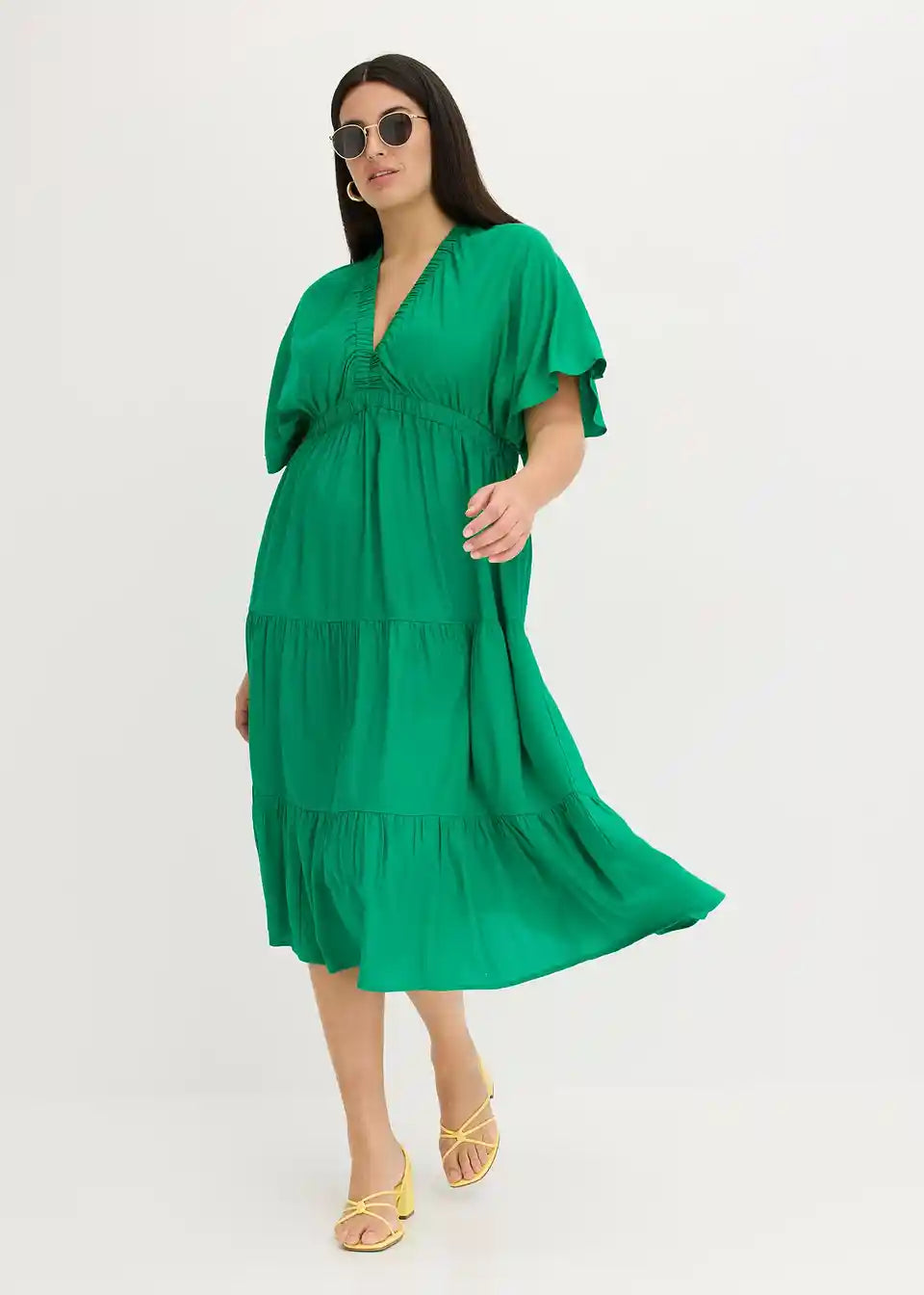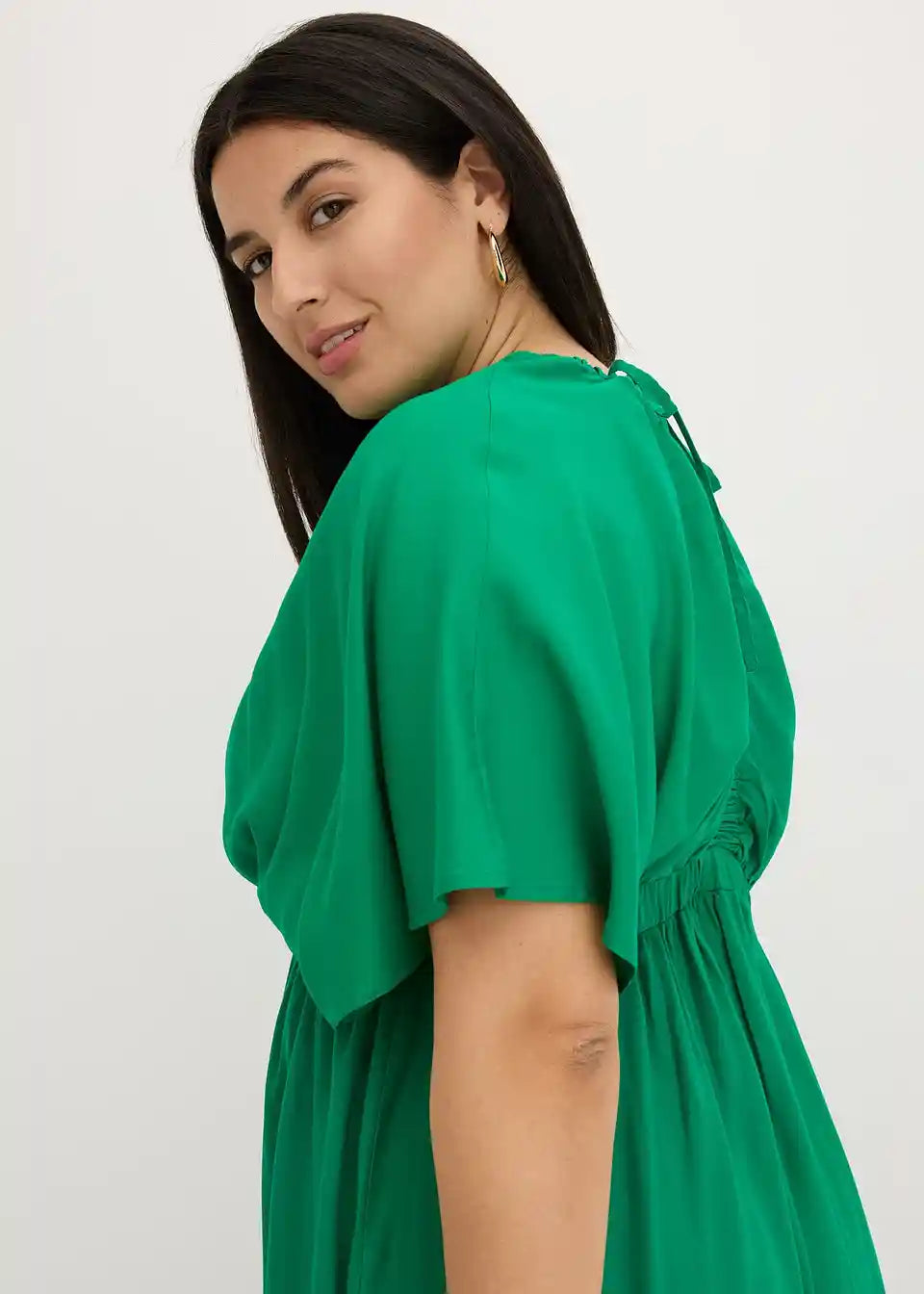 moderna midihaljina od lepršave viskoze s dubokim V-izrezom sprijeda i straga te vrpcom za vezanje na stražnjem izrezu