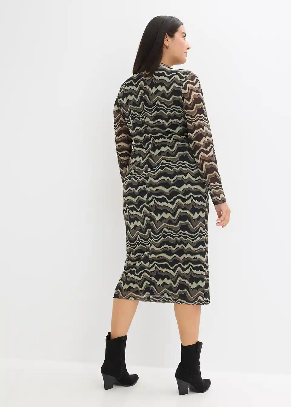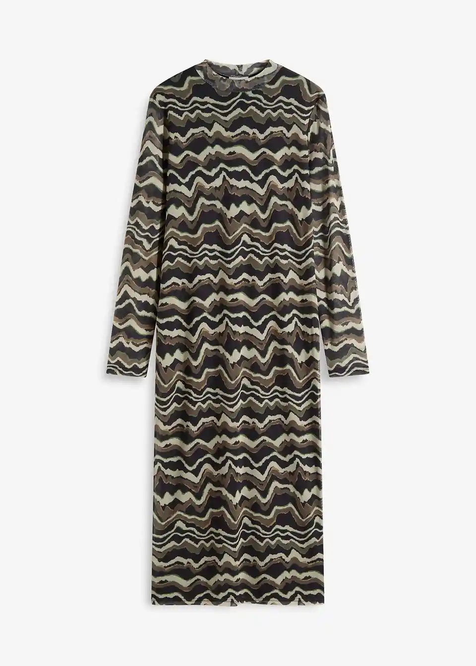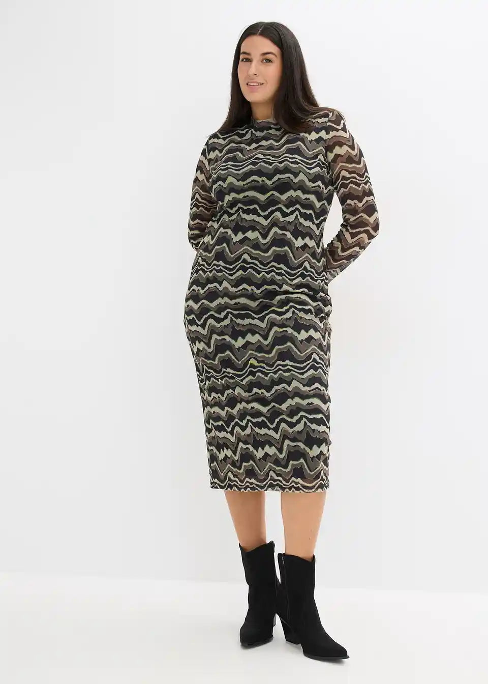 moderna štampana Jersey midihaljina od mekanog Mesh materijala sa stojećim ovratnikom