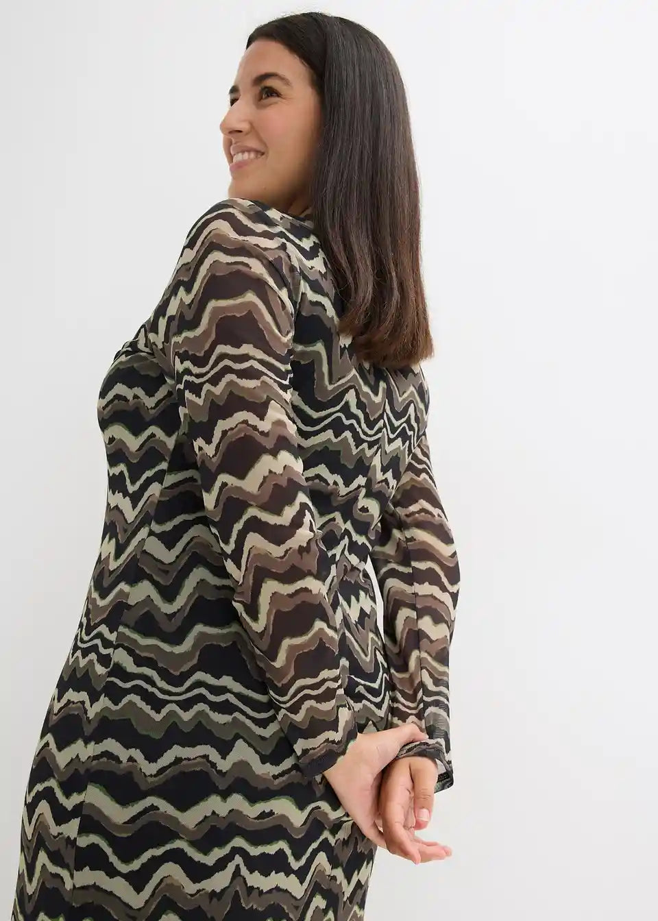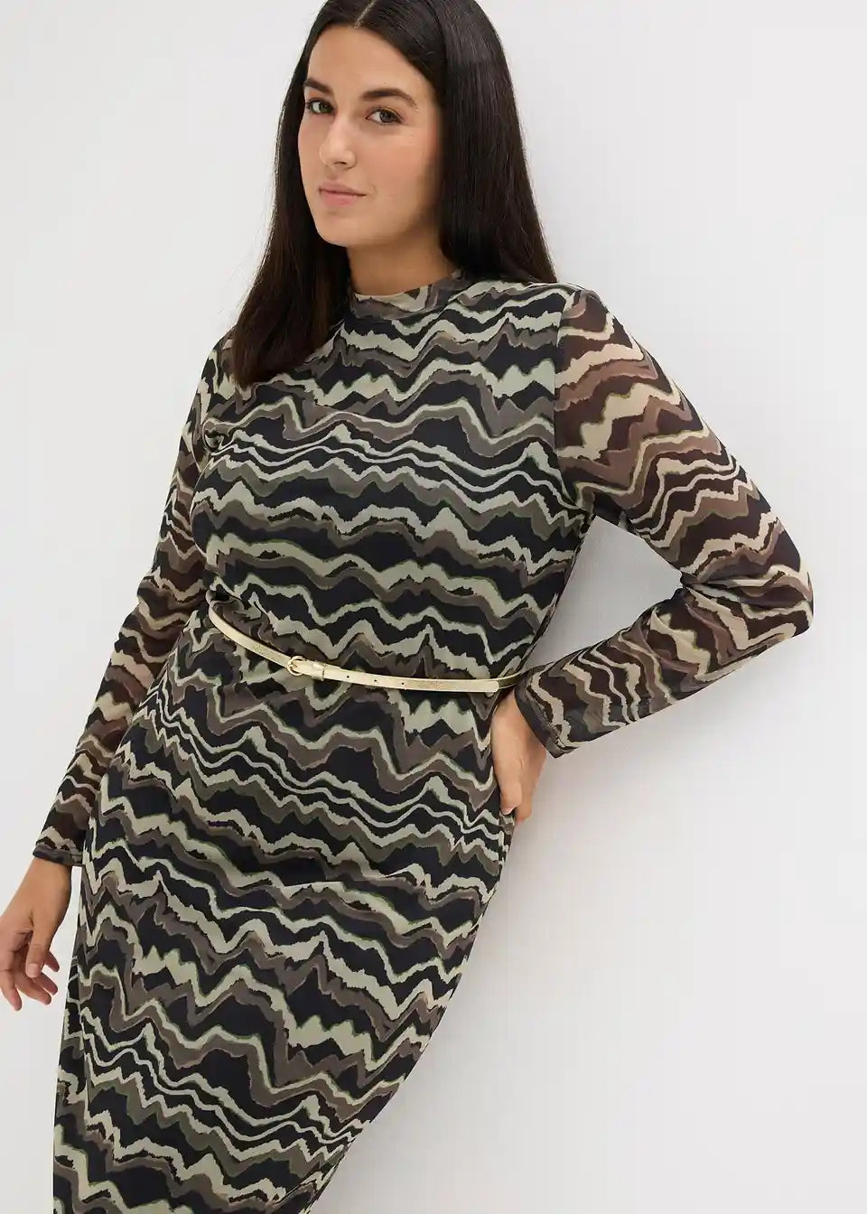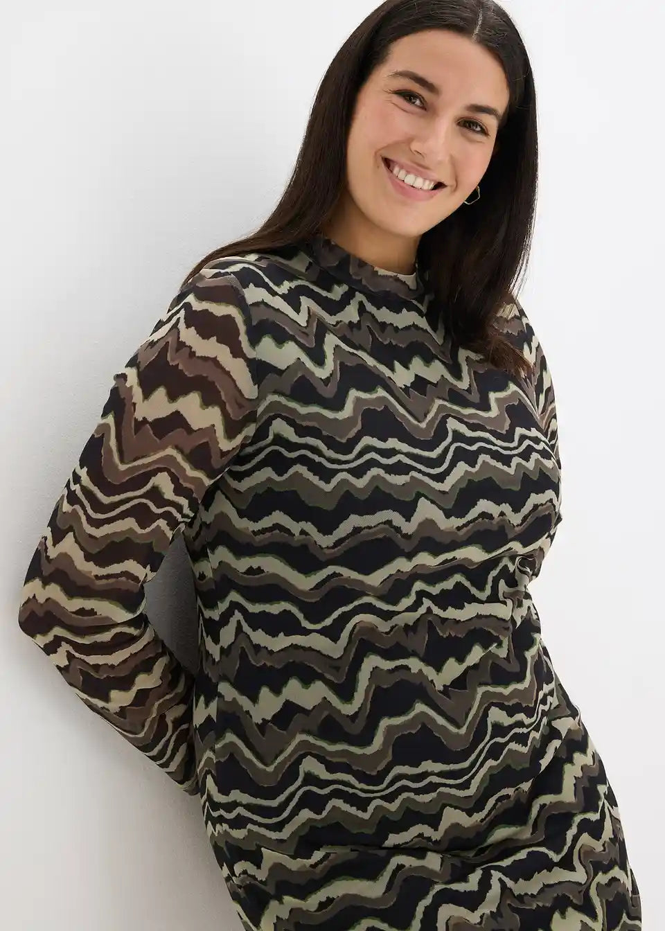 moderna štampana Jersey midihaljina od mekanog Mesh materijala sa stojećim ovratnikom