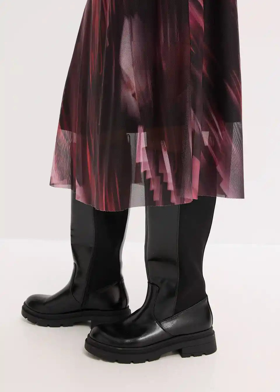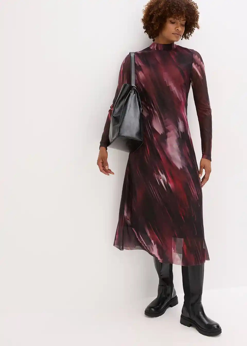 moderno printana jersey haljina midi dužine sa stojećom kragnom od soft mesh materijala