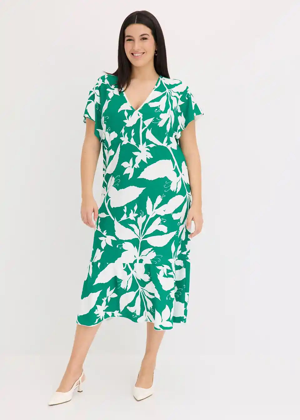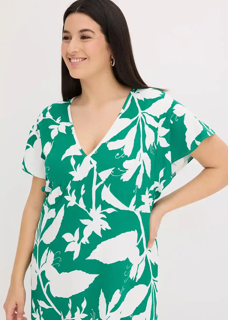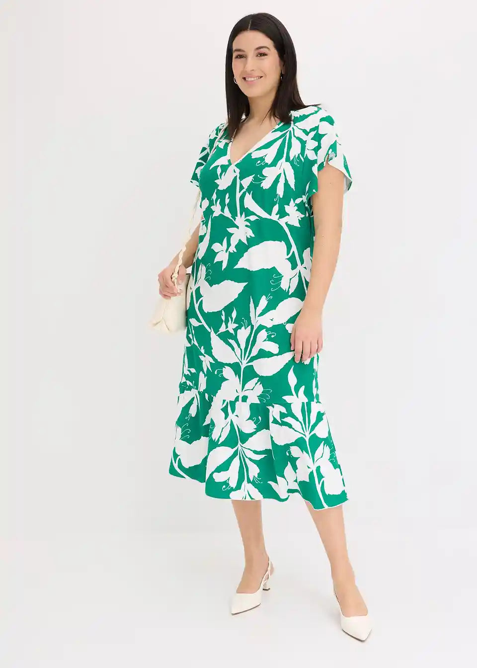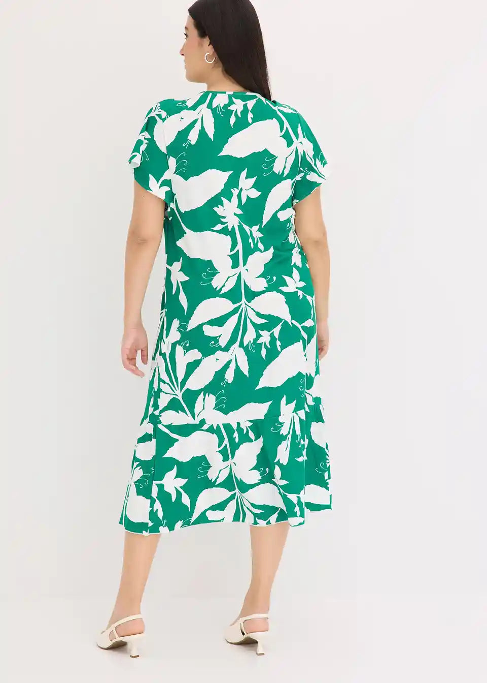 Haljina s naborima s cvjetnim printom i V-izrezom