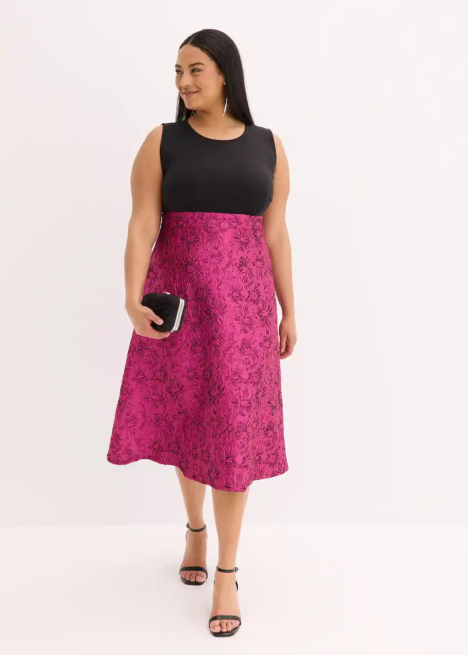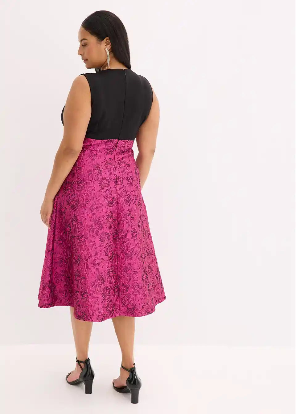 Moderna i ženstvena: koktel haljina midi dužine s lepršavom suknjom od sjajnog žakarda