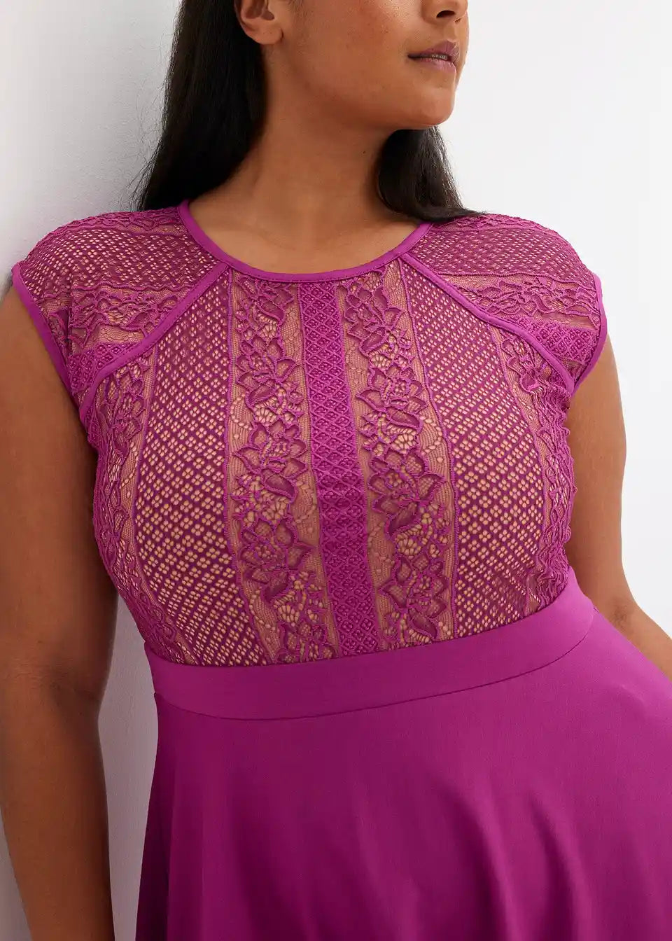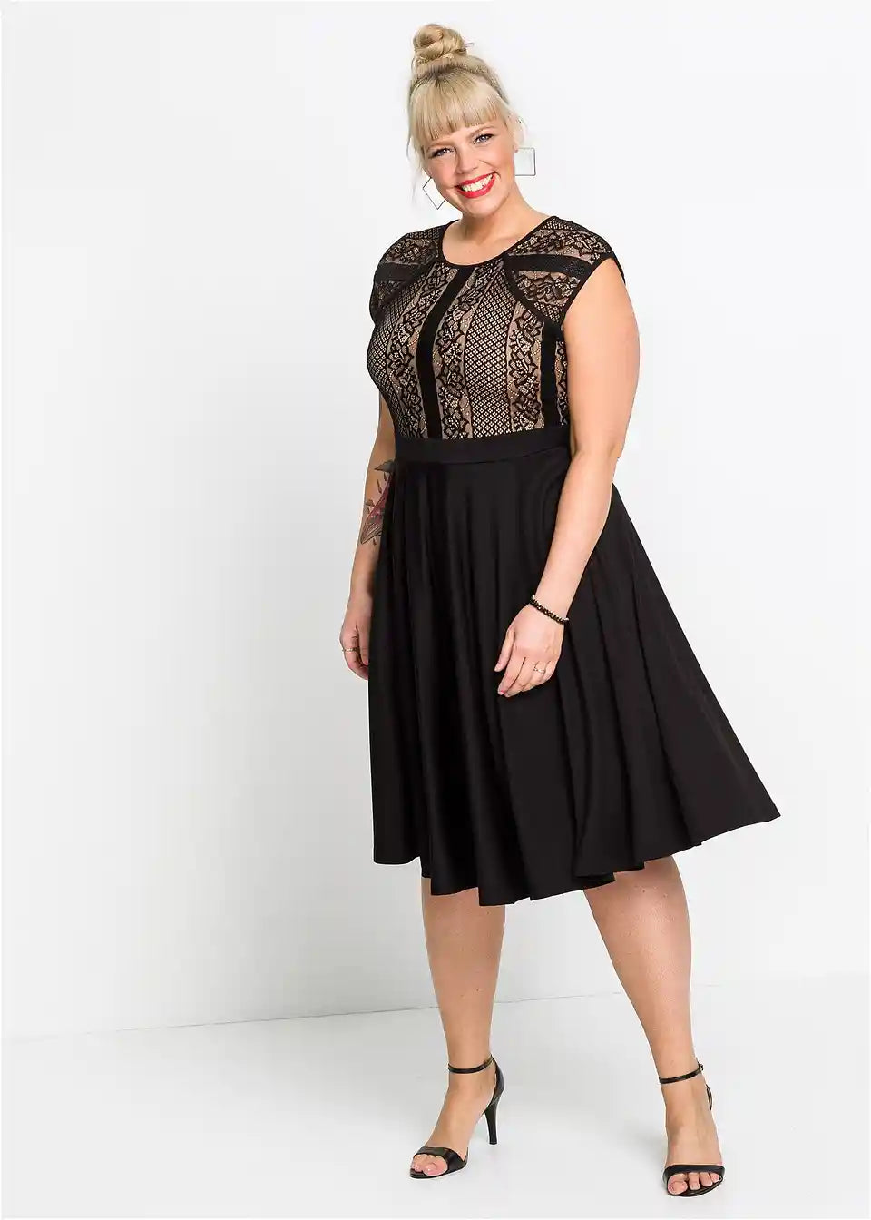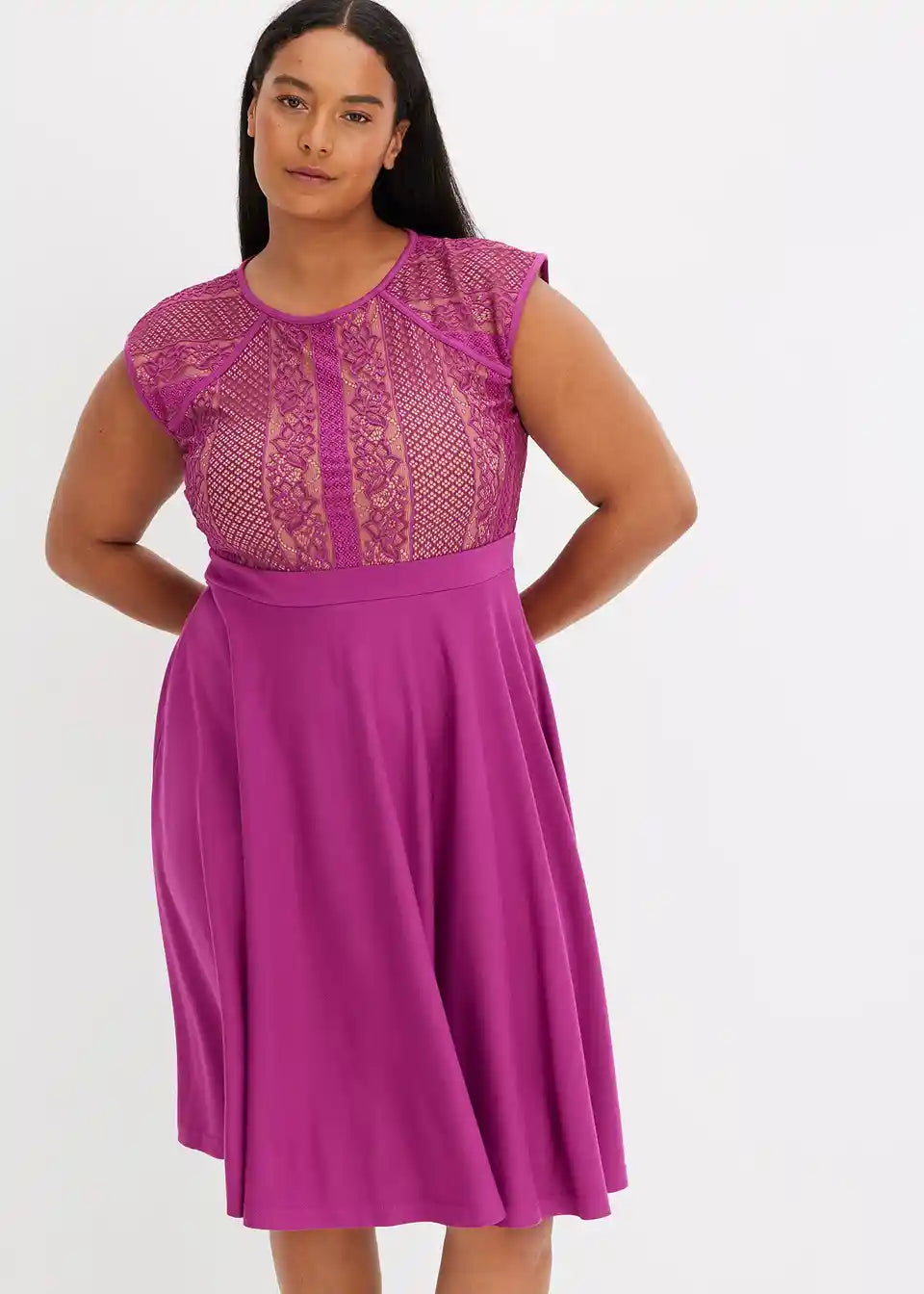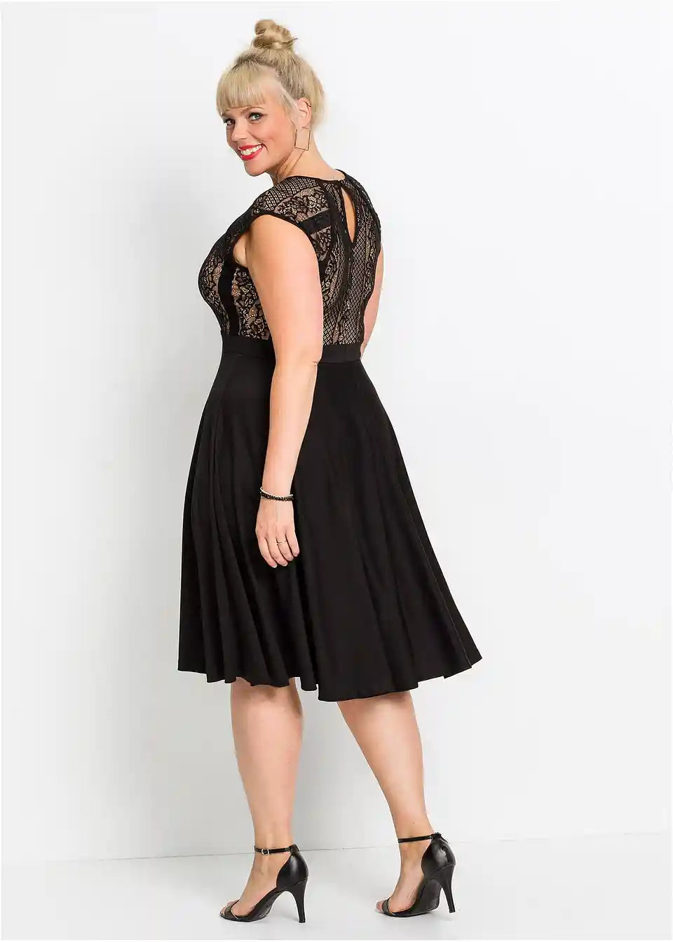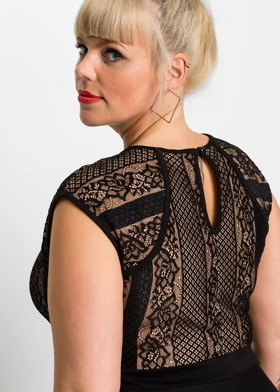 Za posebne prigode ova simpatična haljina s čipkom idealan je izbor. Fini umetak od pažljivo izrađenog čipkanog materijala daje haljini marke BODYFLIRT boutique njezin poseban izgled. Suknja koja doseže do koljena naglašava romantičan dizajn i odlično se slaže s gležnjačama i sandalama. Uz šarmantnu haljinu s čipkom odgovaraju elegantni dodaci za svečani izgled.
