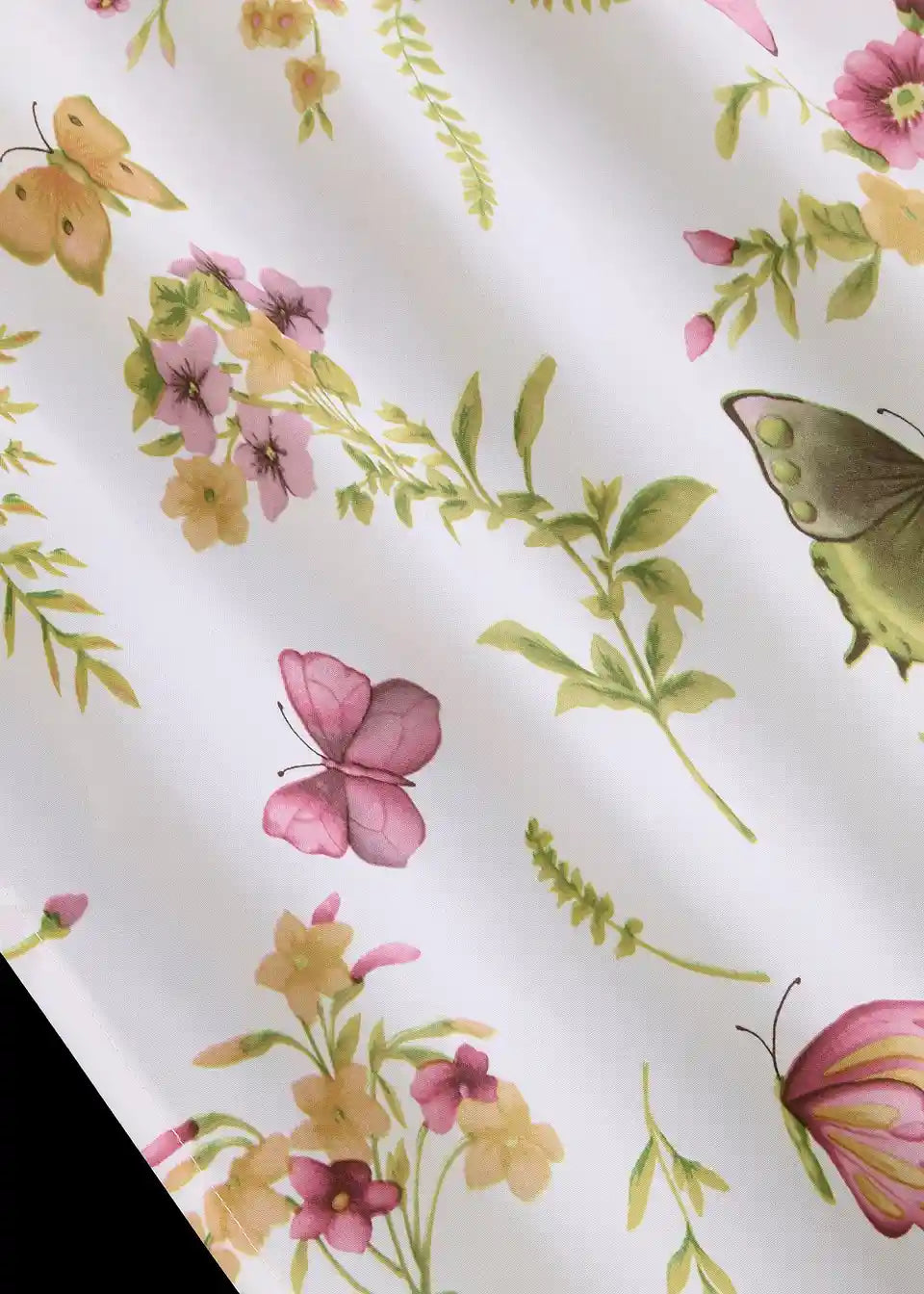 Zastor unosi proljeće na tvoj prozor. Impresionira ne samo briljantnim bojama, već i modernim, svježim dizajnom s motivima leptira i cvijeća. Neprozirni zastor izrađen je od visokokvalitetne mikrofiber tkanine, što ga čini posebno elegantnim i omogućuje blagi ulazak svjetlosti. Zastor dolazi s odgovarajućim držačem za zatezanje.