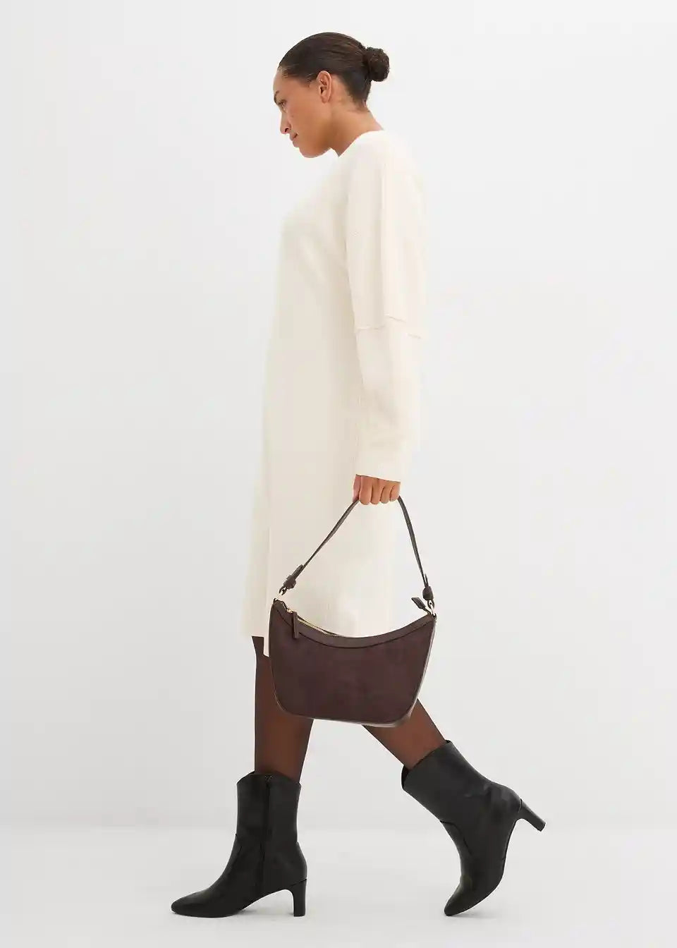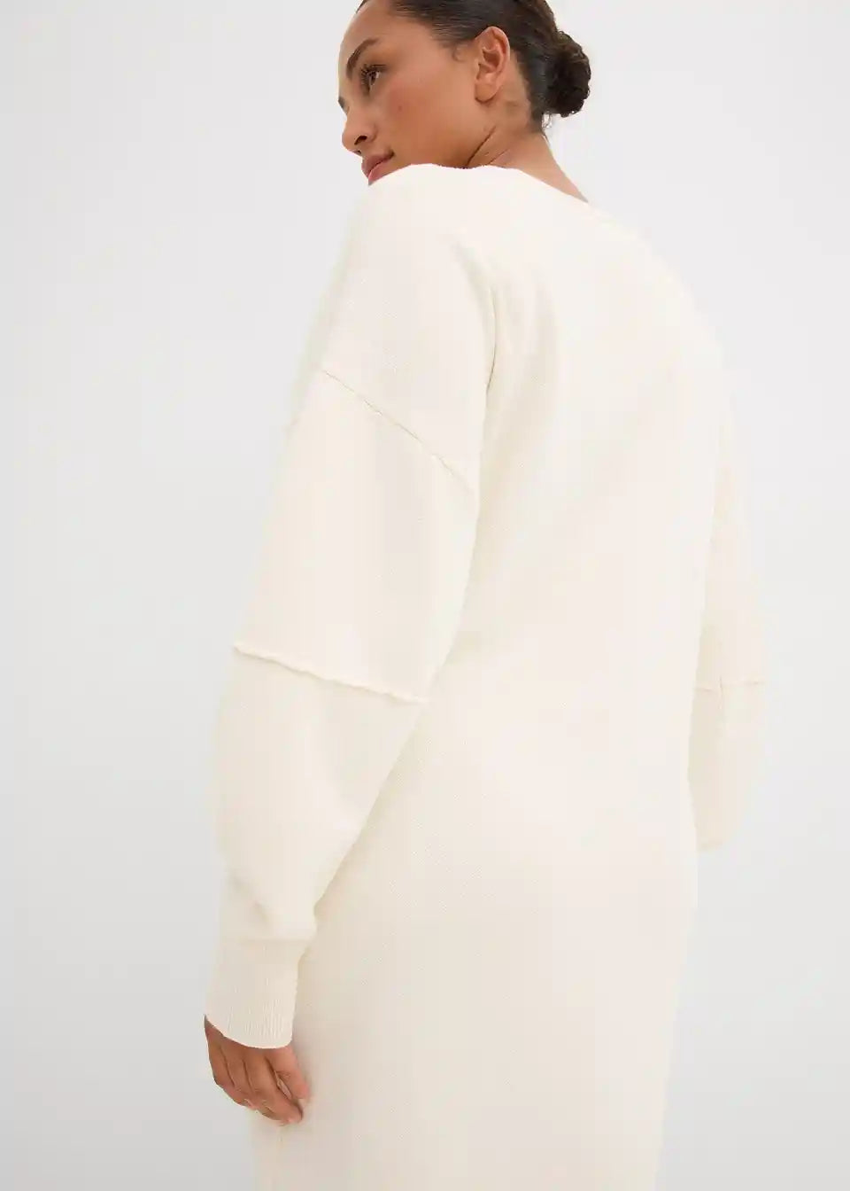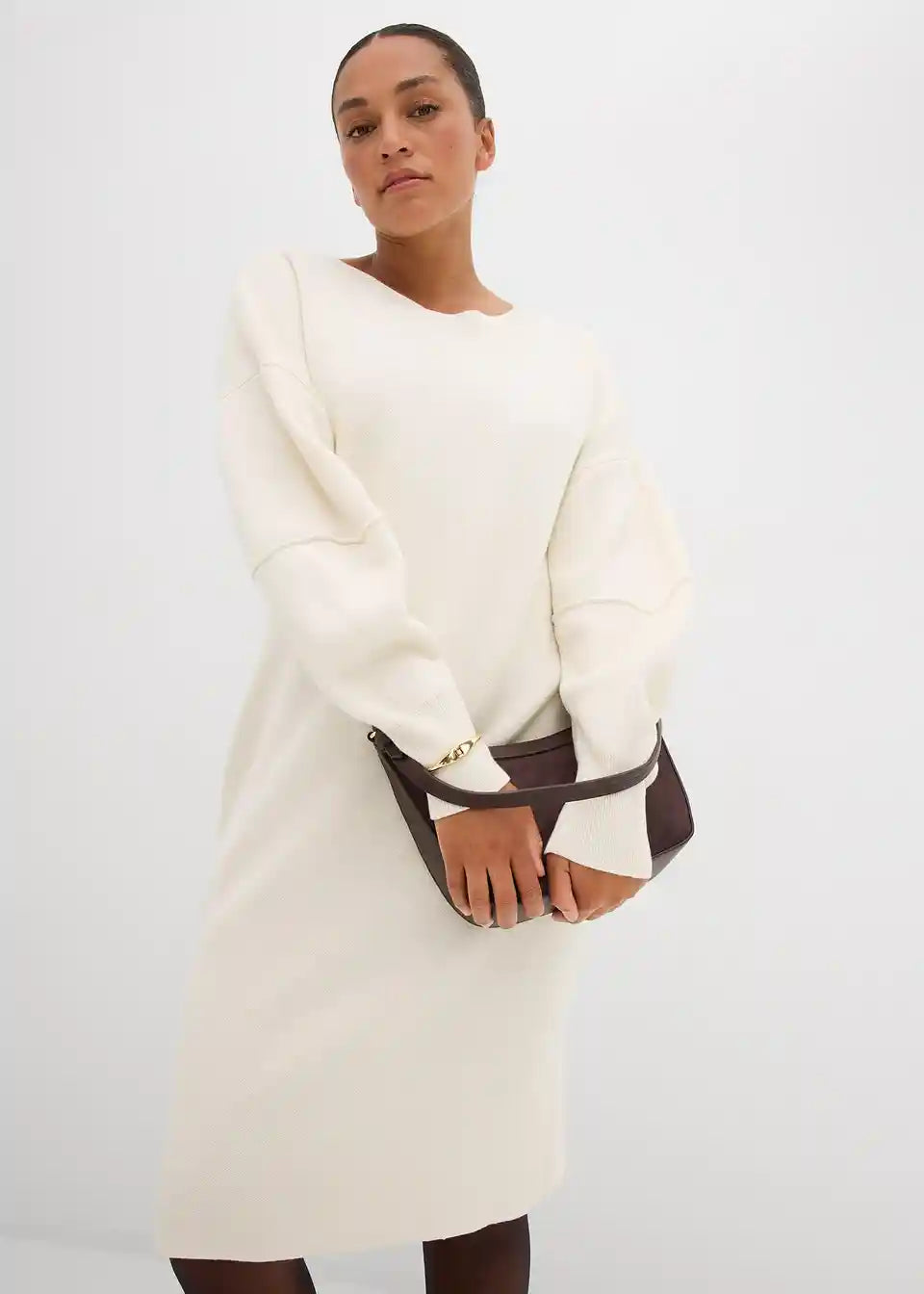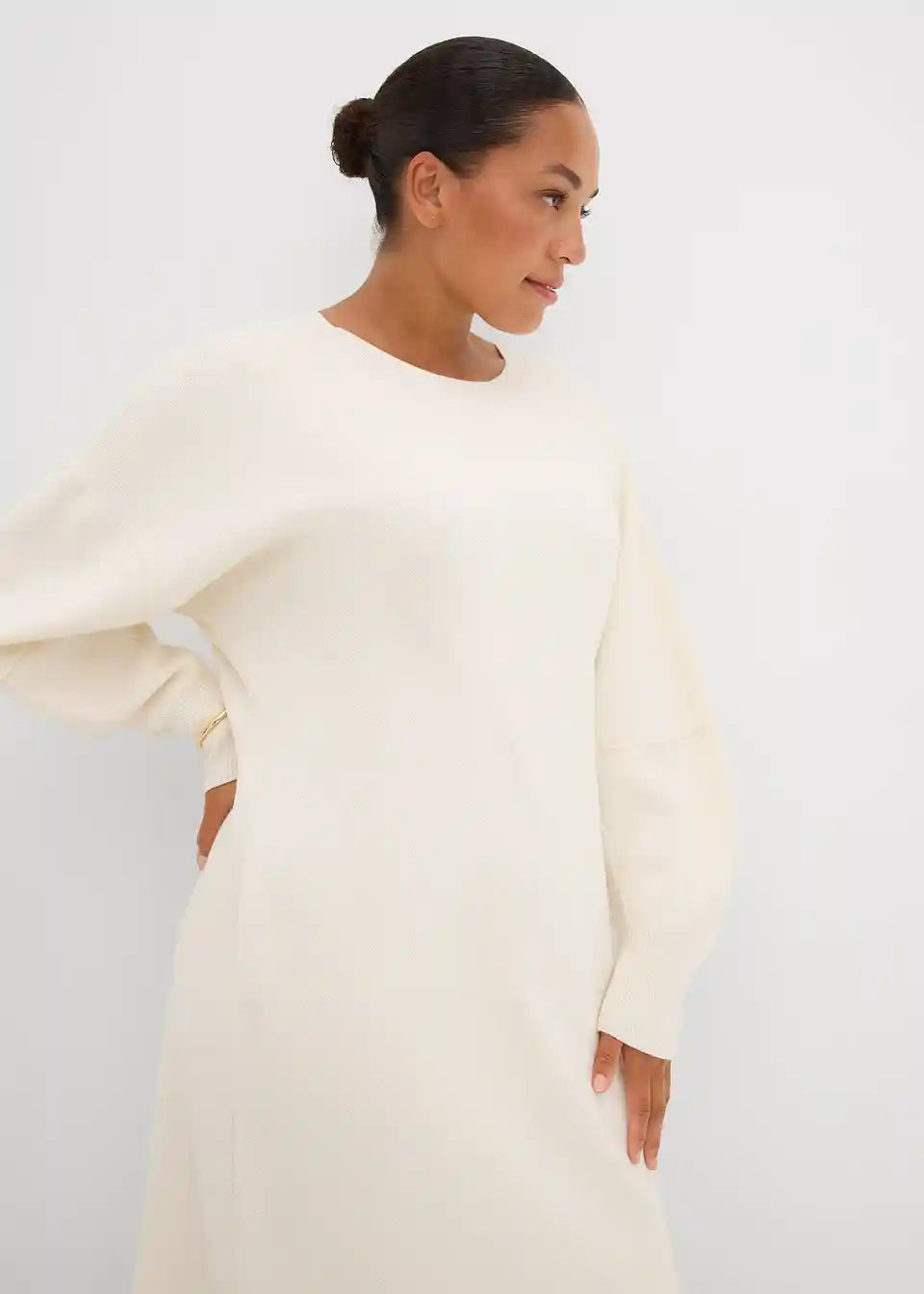 Strukirana midi pletena haljina s voluminoznim rukavima Regular Fit kroja