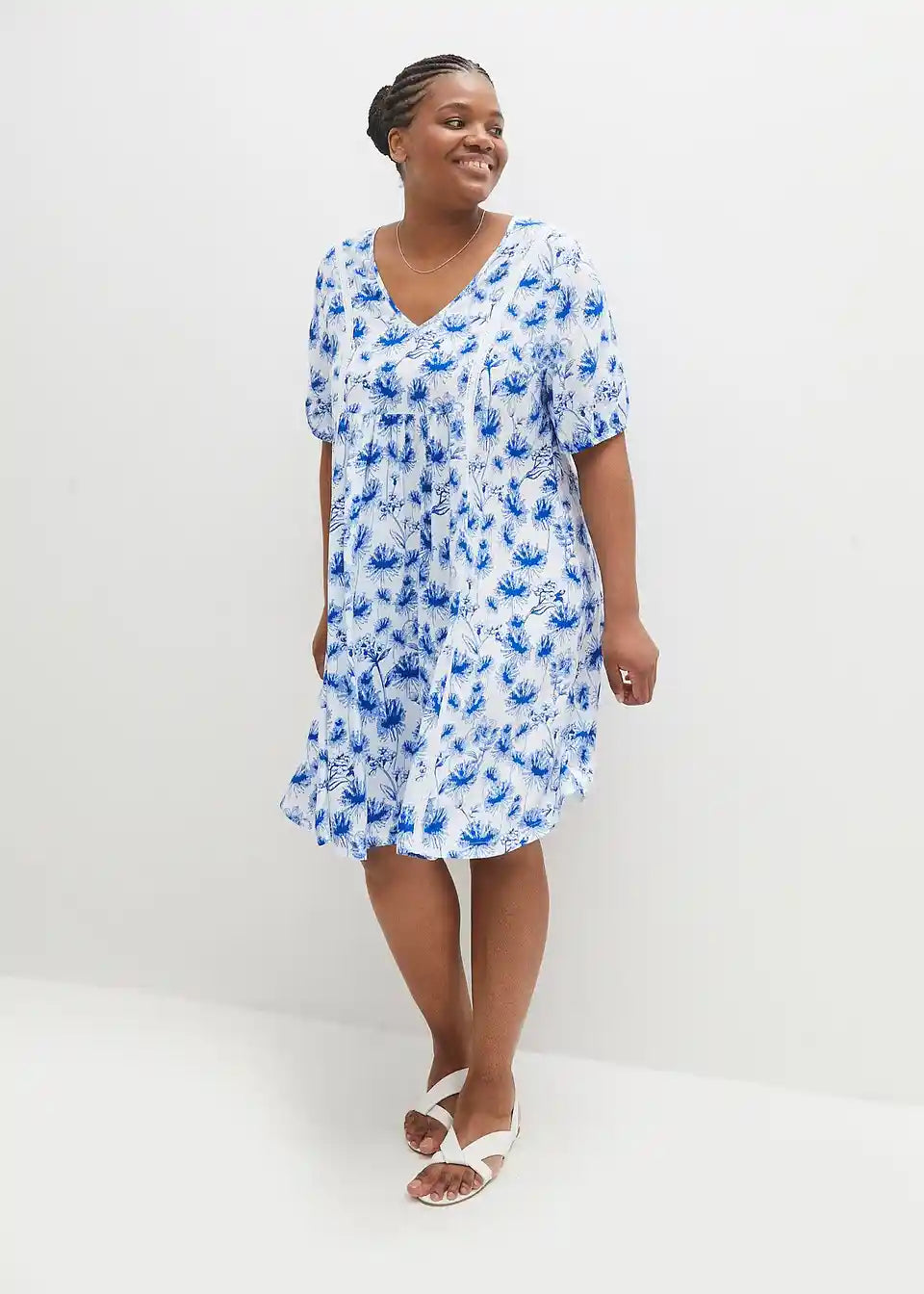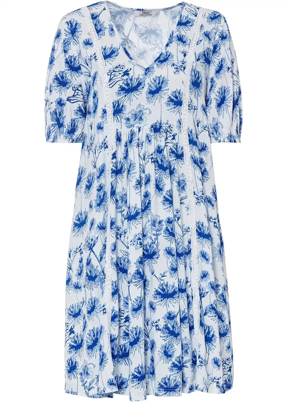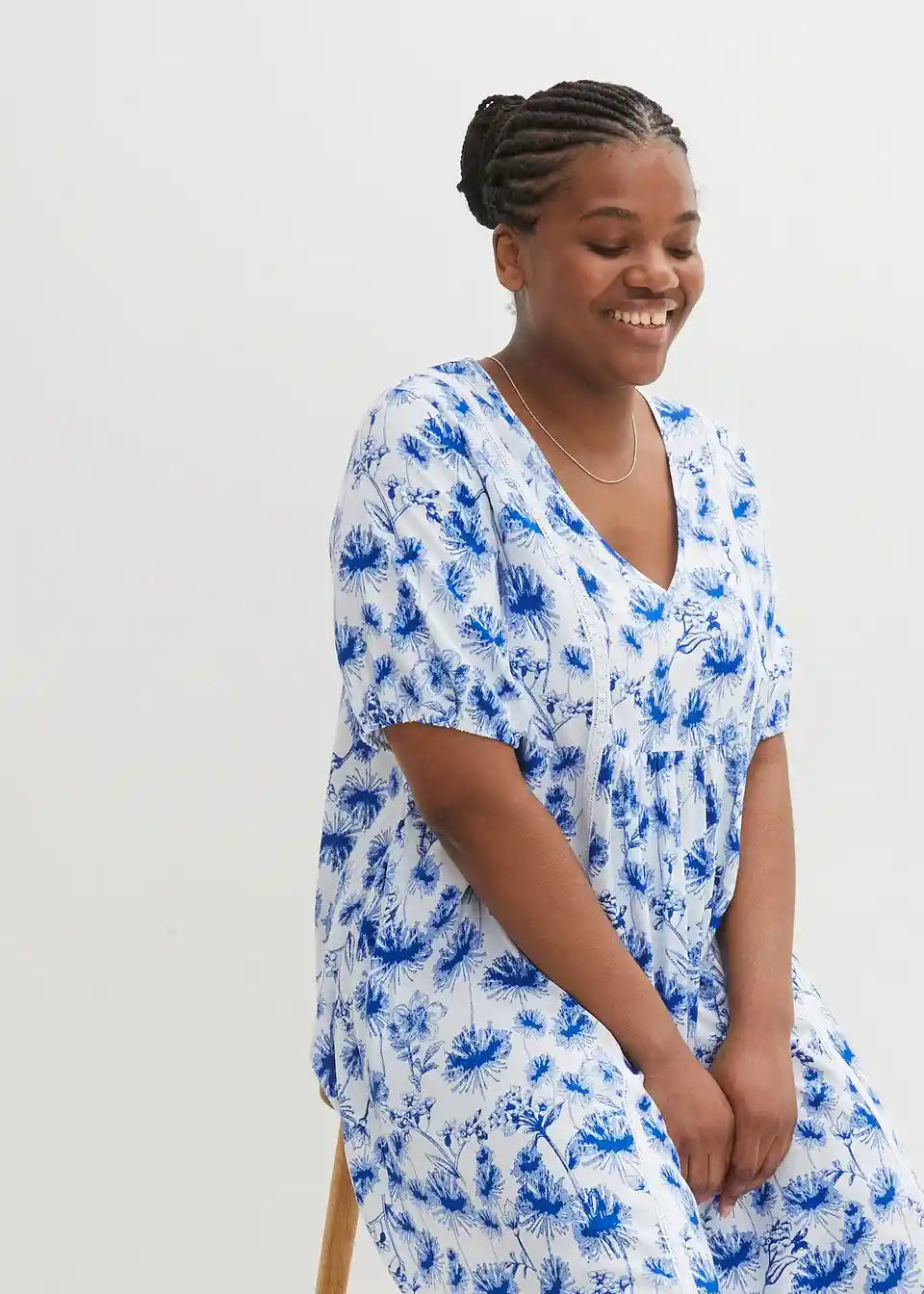 Tunika-haljina koja se oblikuje prema figuri s čipkom i balon rukavima