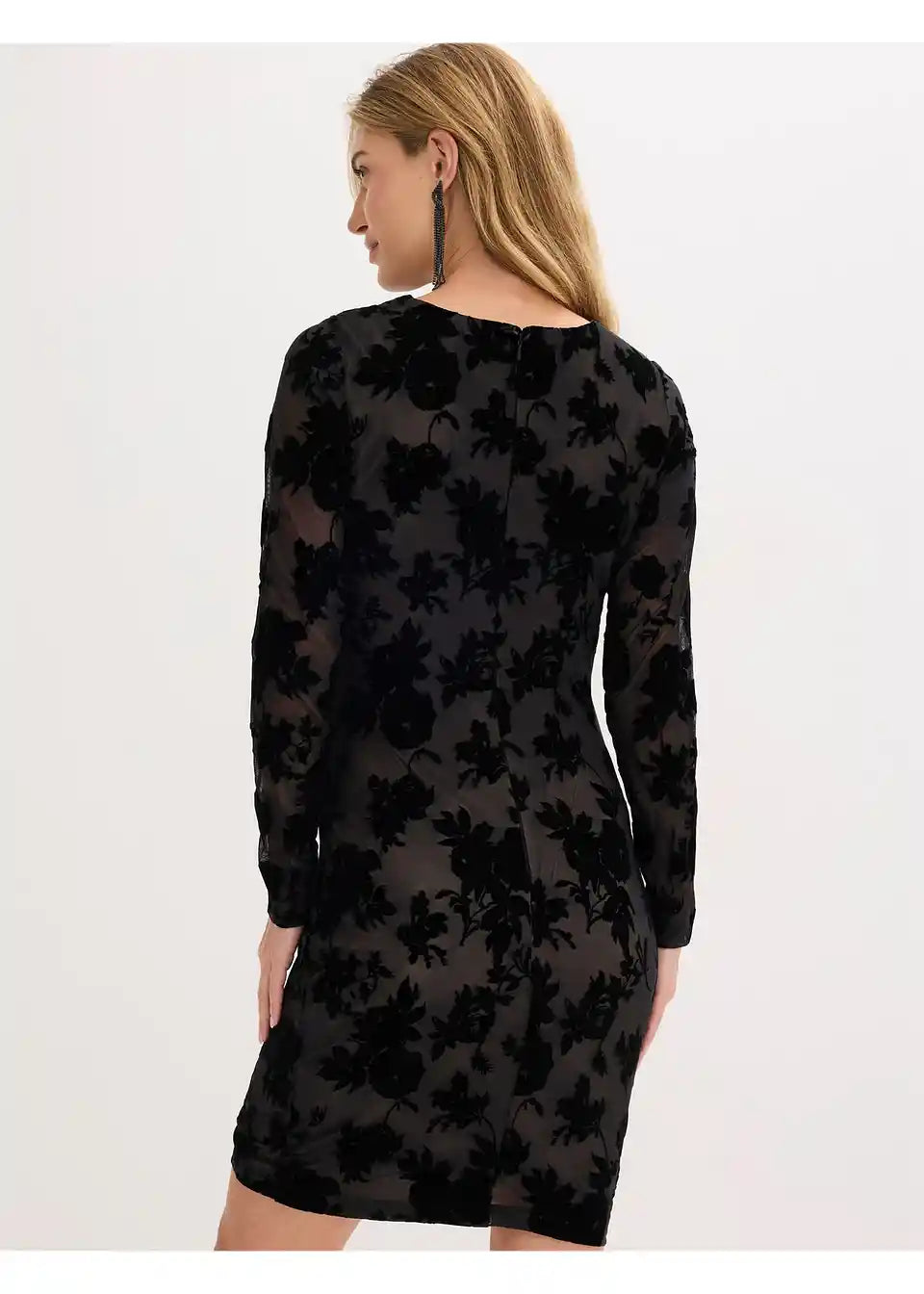 Moderna i ženstvena: mini haljina od finog mesh materijala s flock printom i nude podstavom