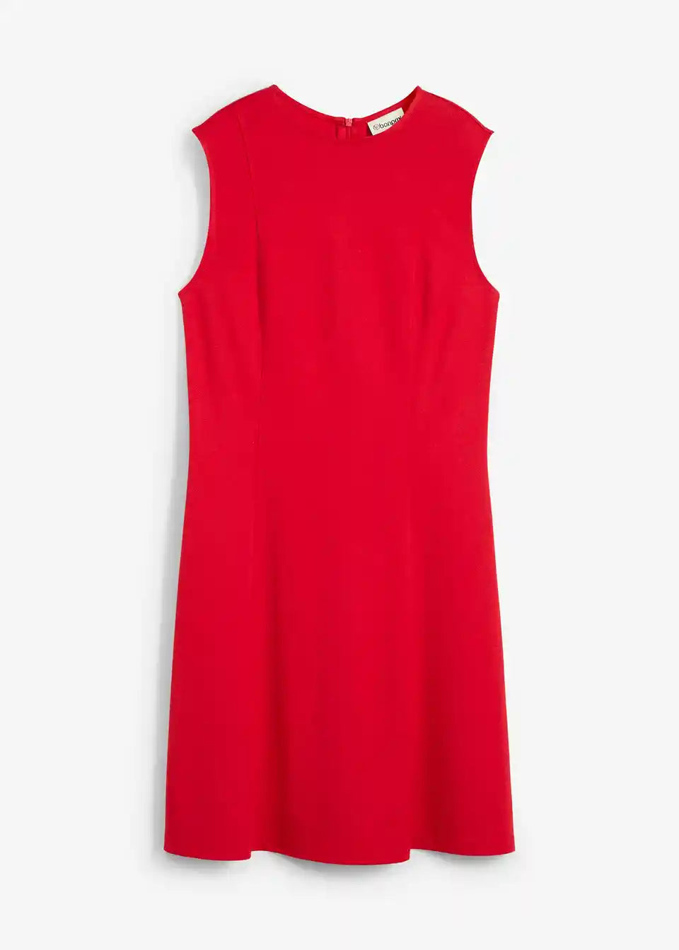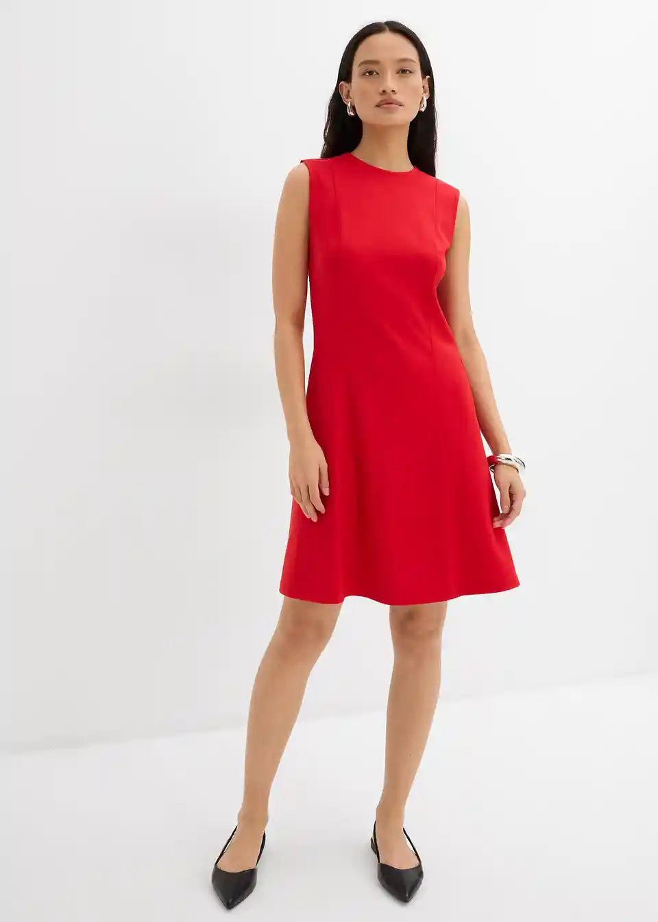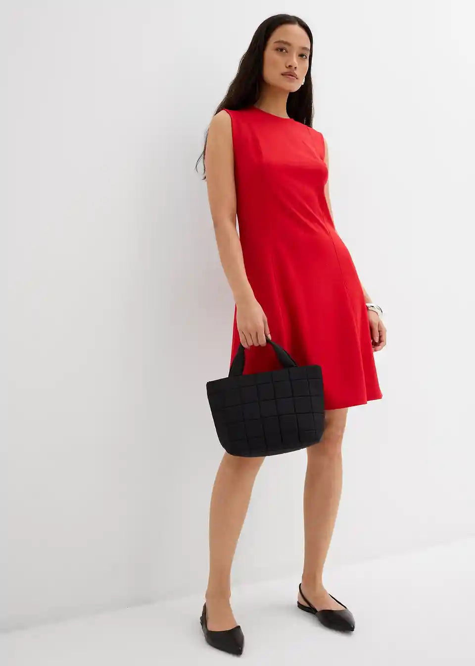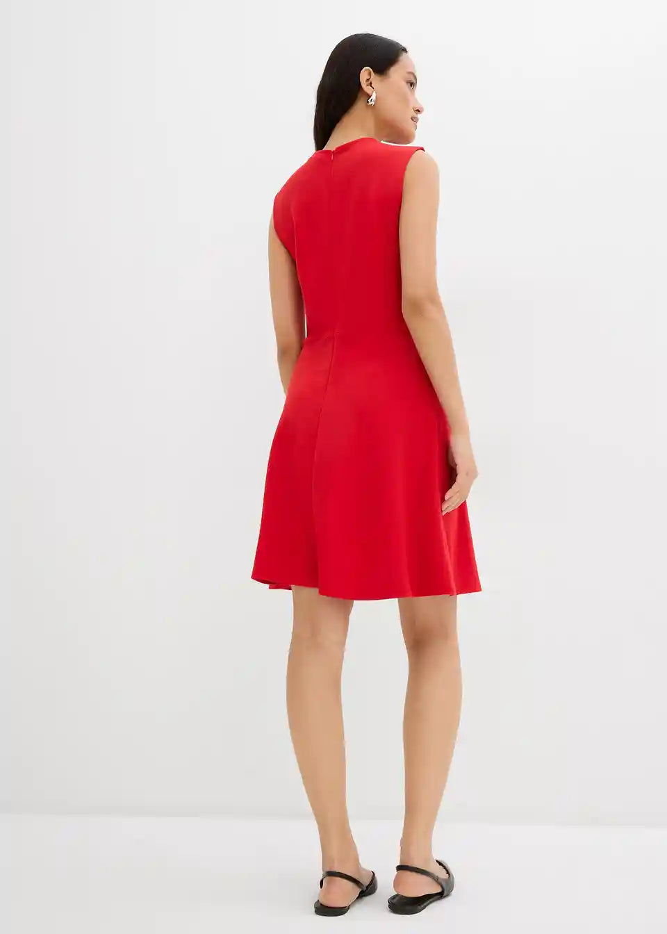 Kratka haljina s proširenim rubom, podjeljenim šavovima sprijeda i patentnim zatvaračem straga