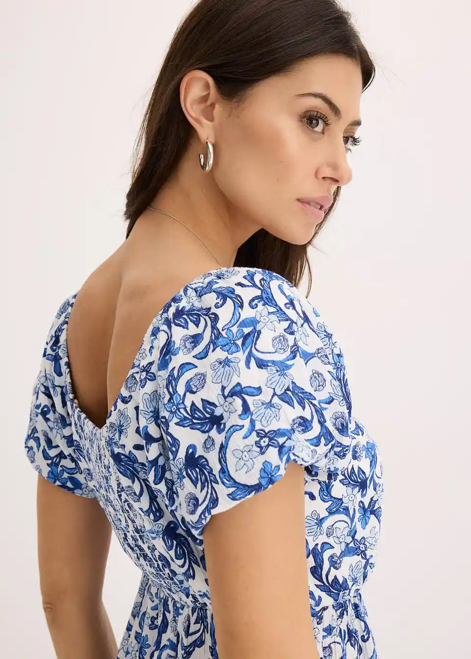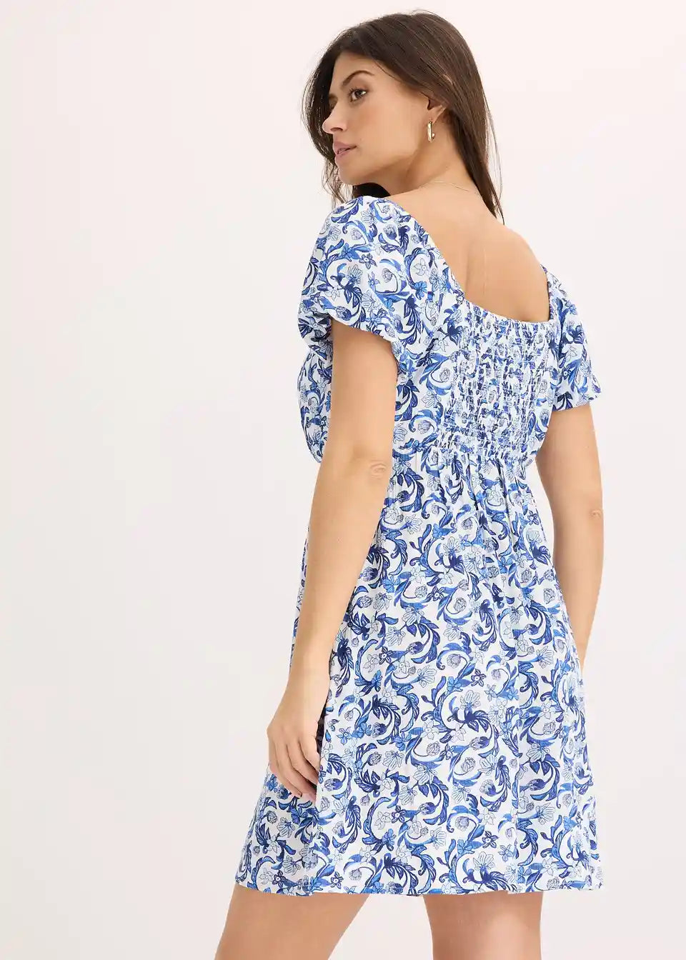 Haljina s cvjetnim uzorkom i naborima sprijeda i straga