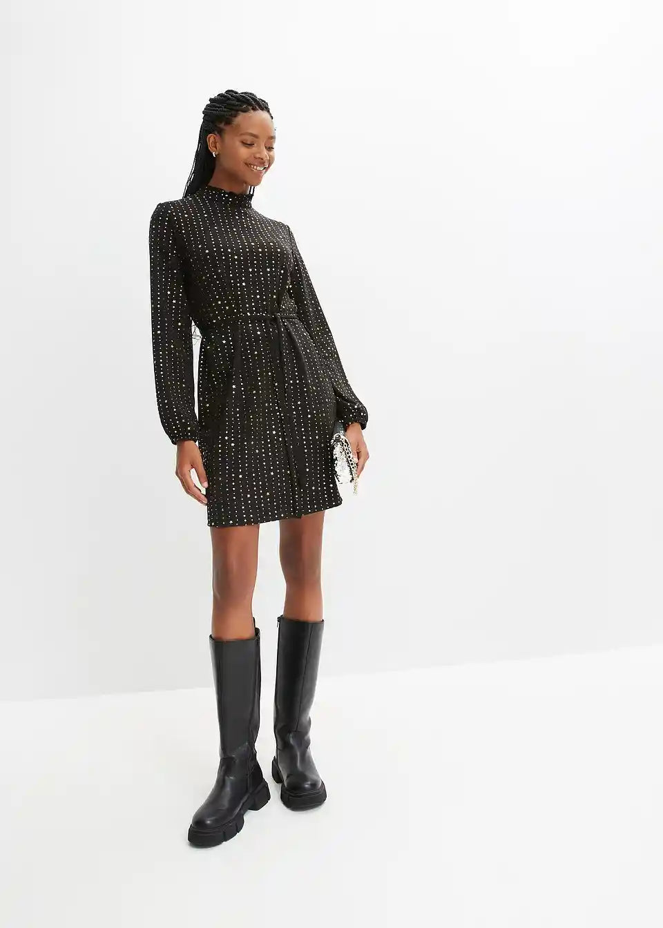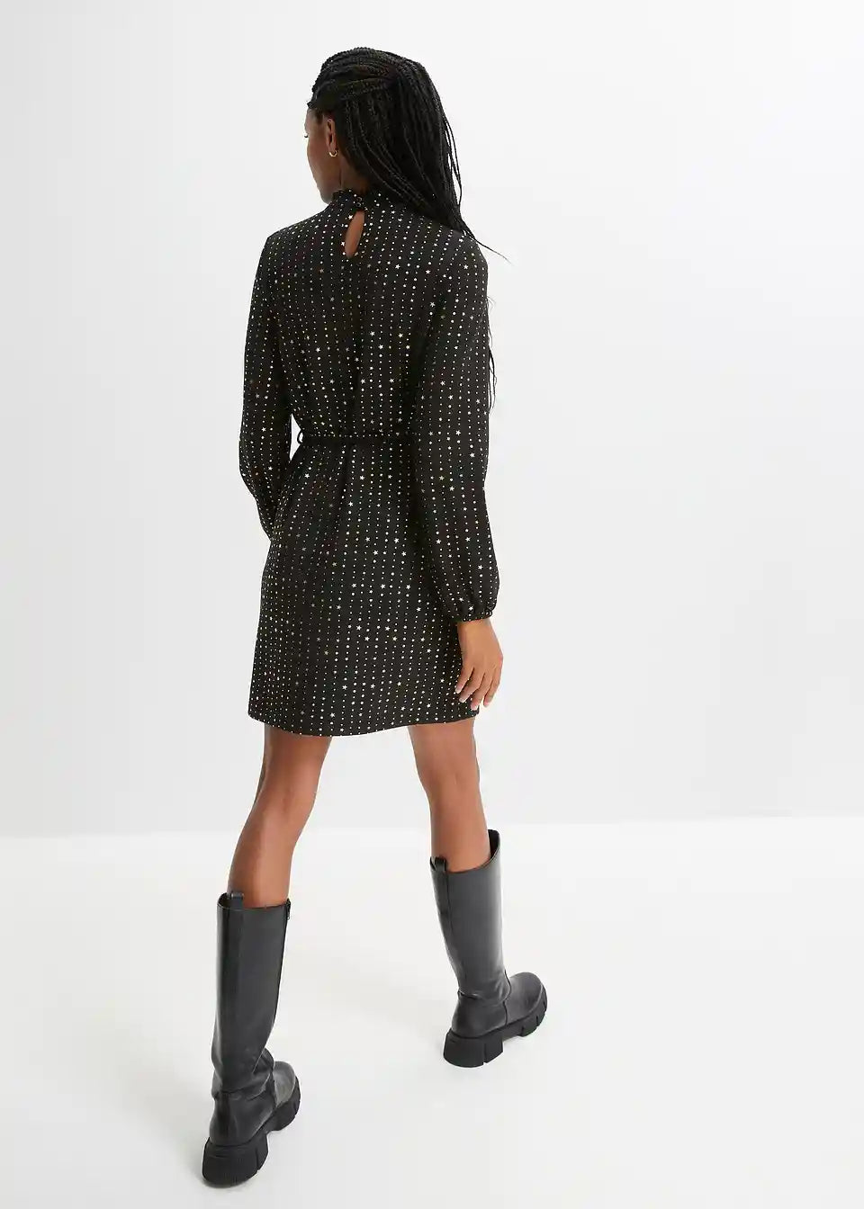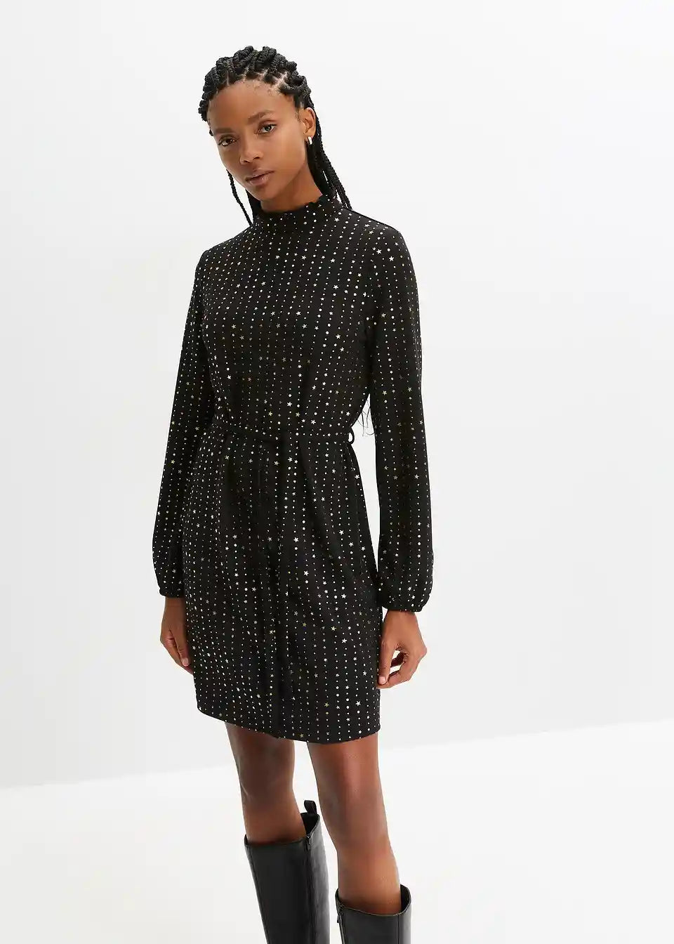 Moderna haljina s teksturiranim izgledom i vezicom, uz sjajni otisak