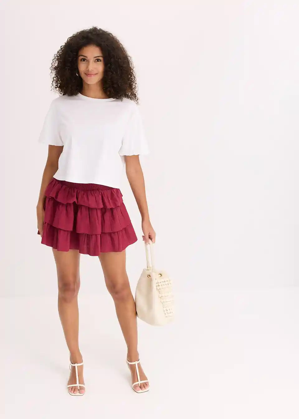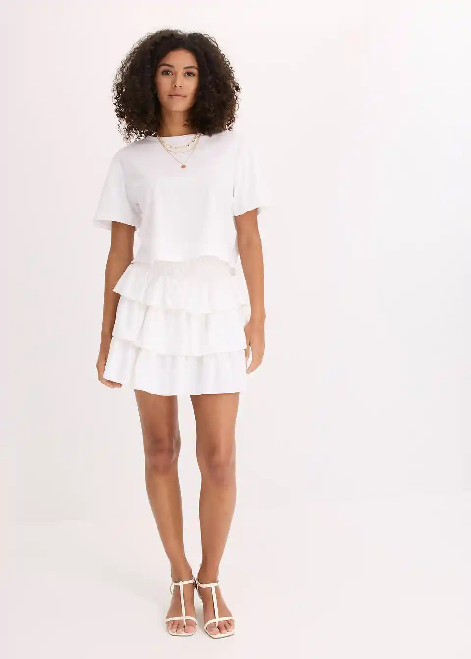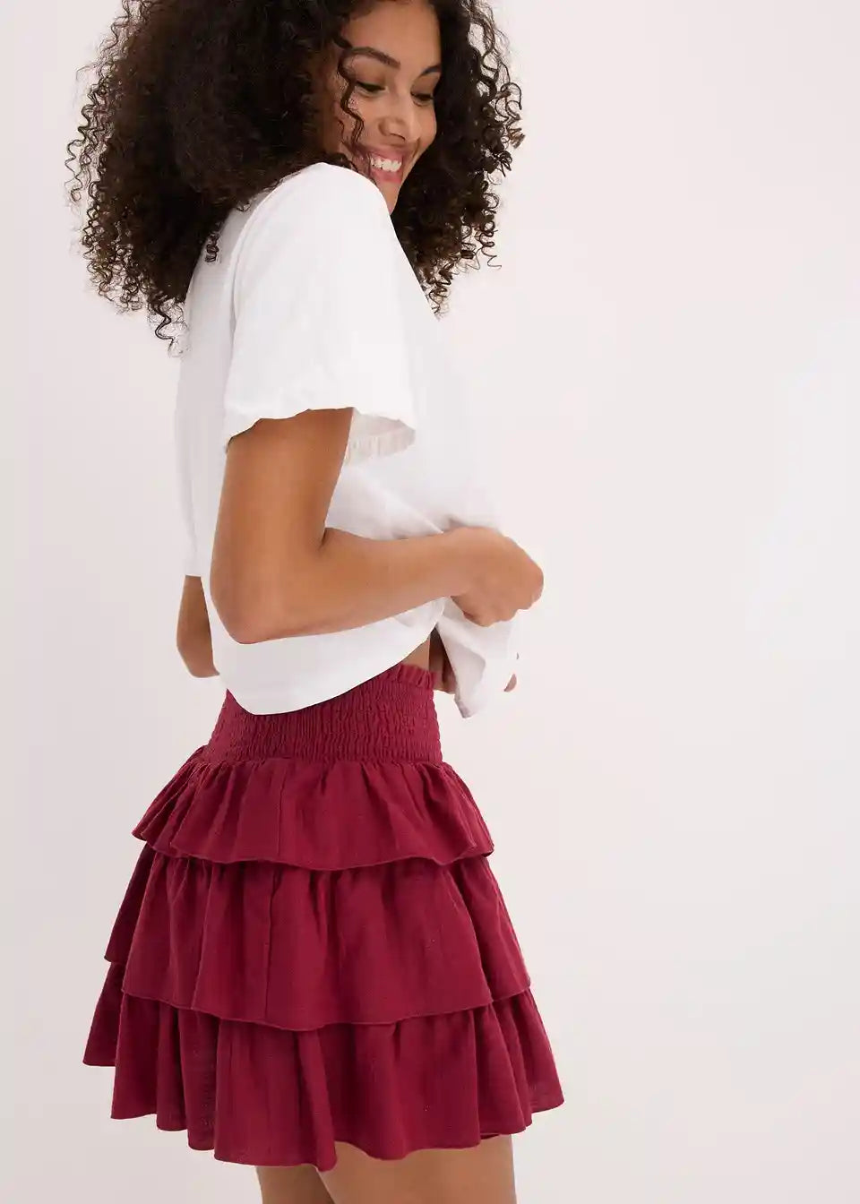Moderna mini suknja s prošivenim strukom i volanima od čiste pamuka