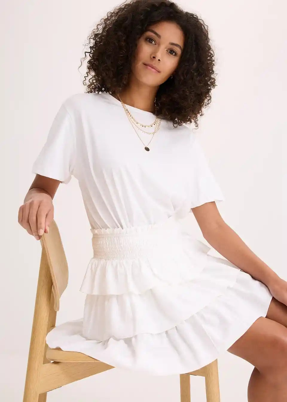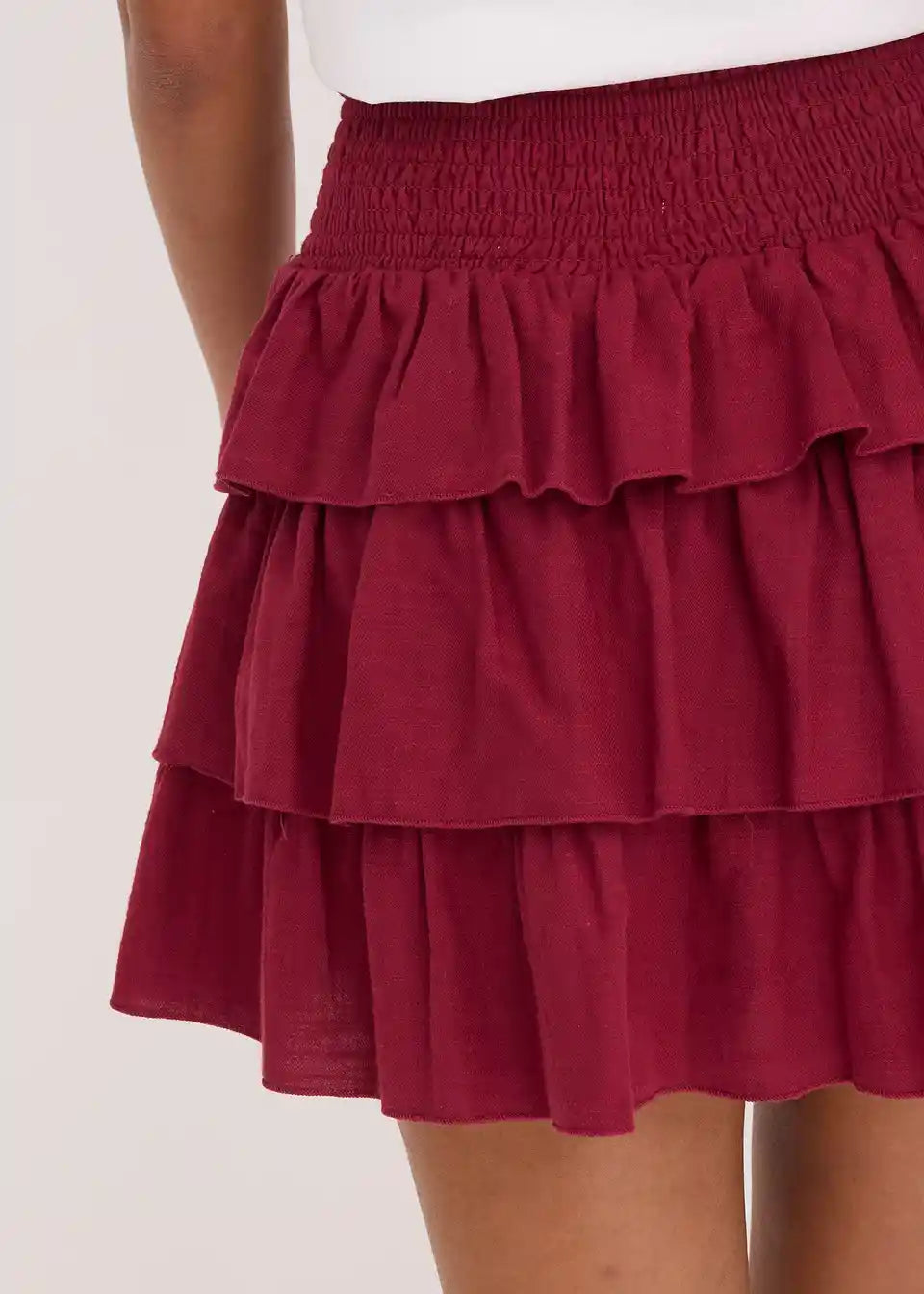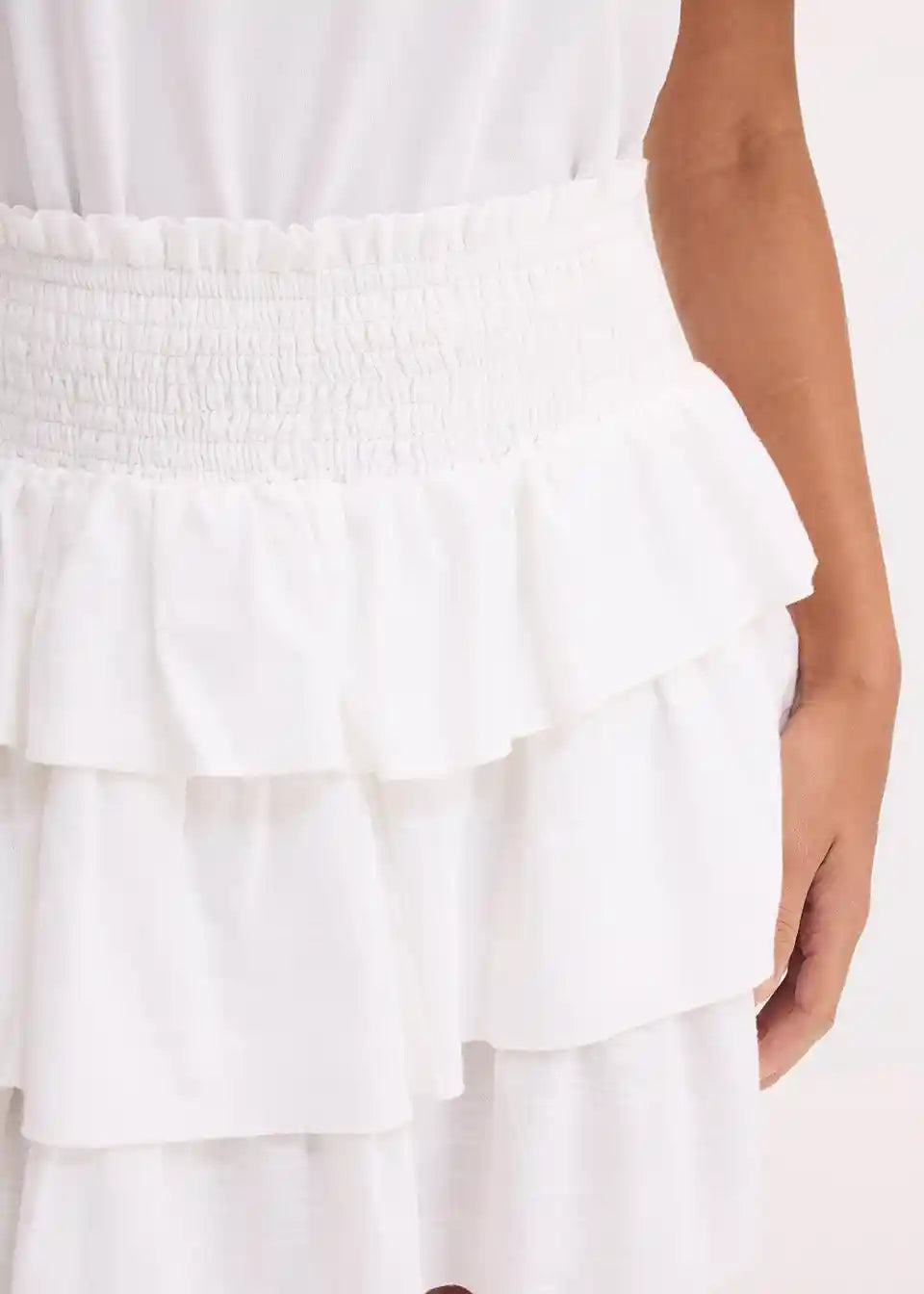 Moderna mini suknja s prošivenim strukom i volanima od čiste pamuka