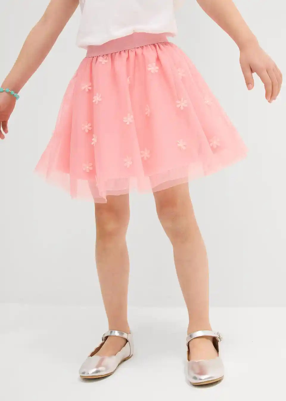Dječja mini suknja od tila s pričvršćenim cvjetićima