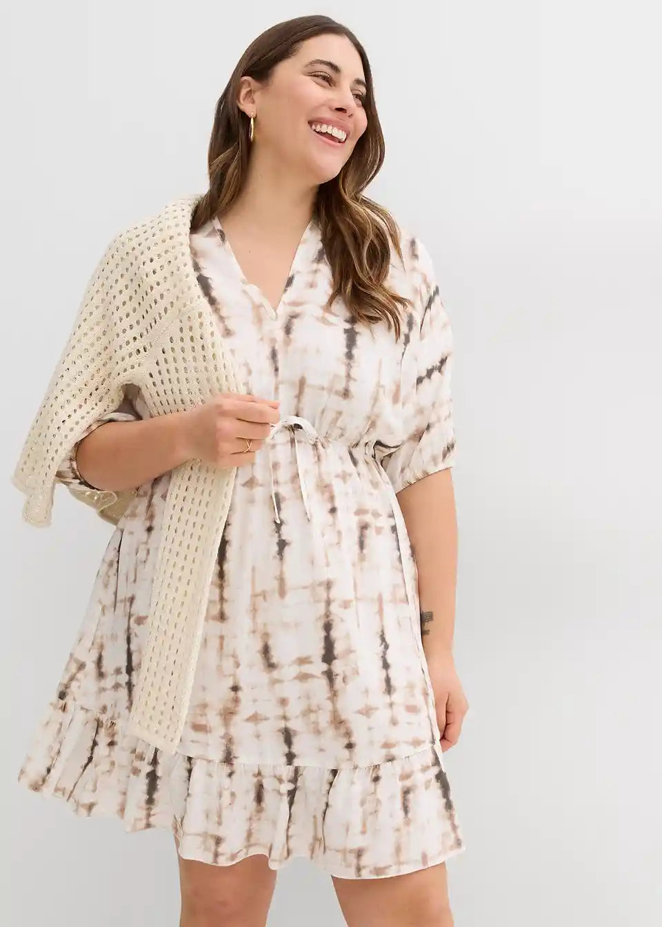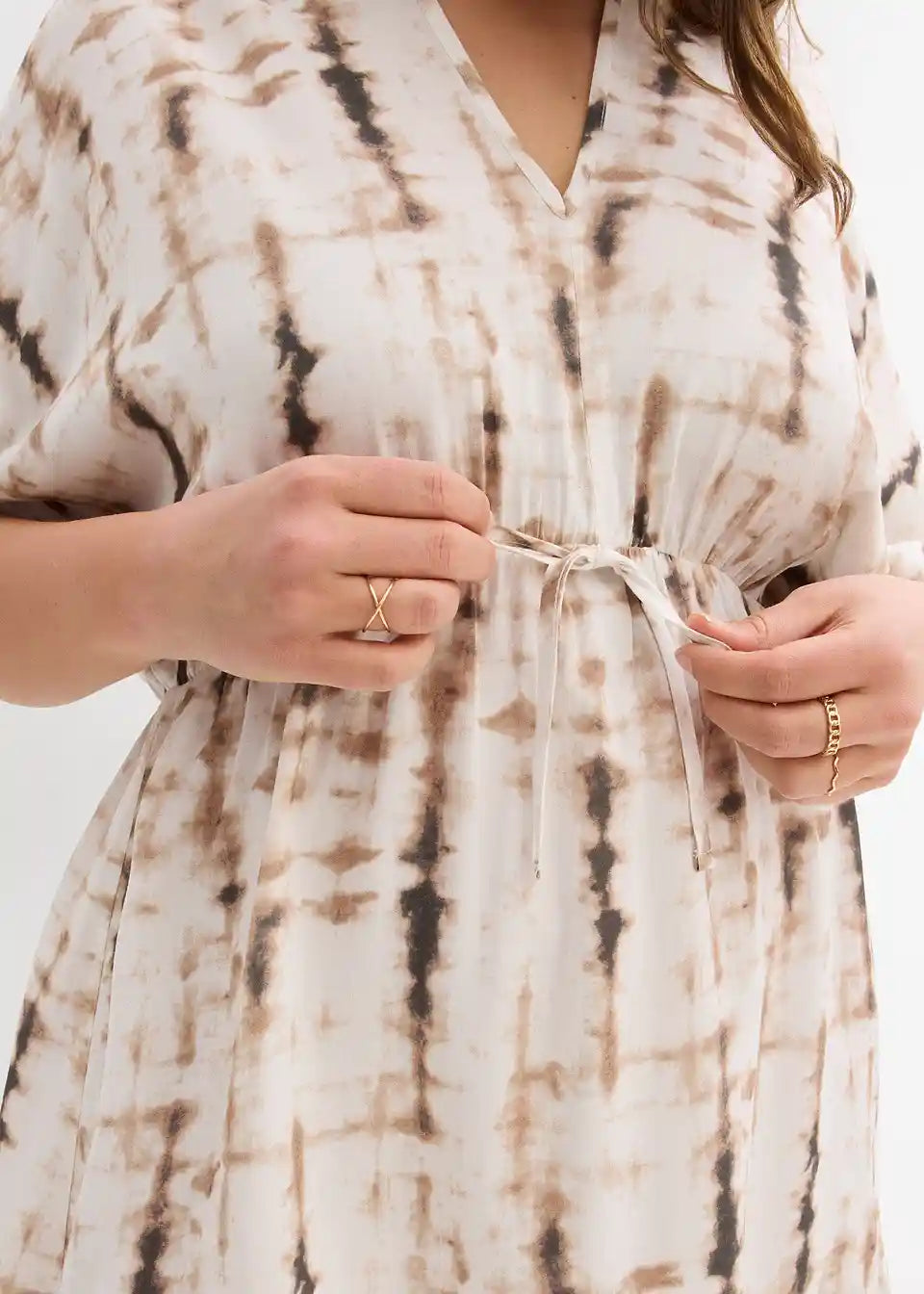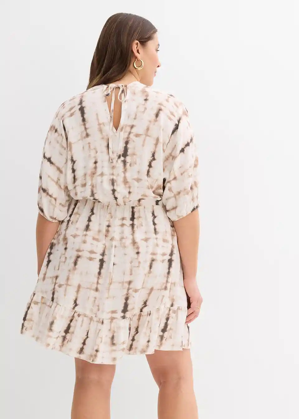 Trendi minikleid od lepršave viskoze s batik uzorkom i vezanjem