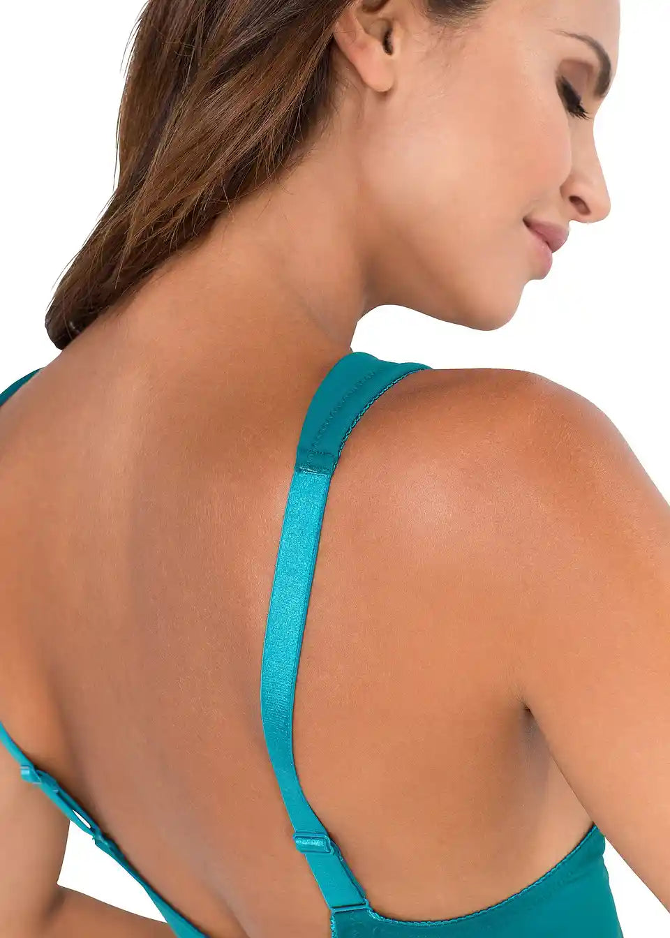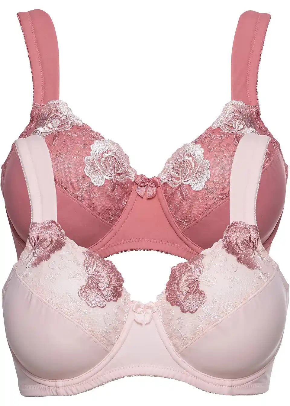 Poseban kroj postiže udoban učinak kod ovog minimizer grudnjaka u dvostrukom pakiranju: Vizualno smanjuje poprsje. Široke naramenice s podstavom koje su šire u velikim košaricama doprinose dodatnom osjećaju olakšanja. Lijepa vez koja pokriva polovicu košarica zajedno s malom satenskom mašnom osigurava ukusni izgled. Minimizer grudnjak od bpc selection u dvostrukom pakiranju u bojama zatvara se na leđima u tri stupnja klasičnom varijantom s kukicama i očicama, koja je šira u velikim veličinama.