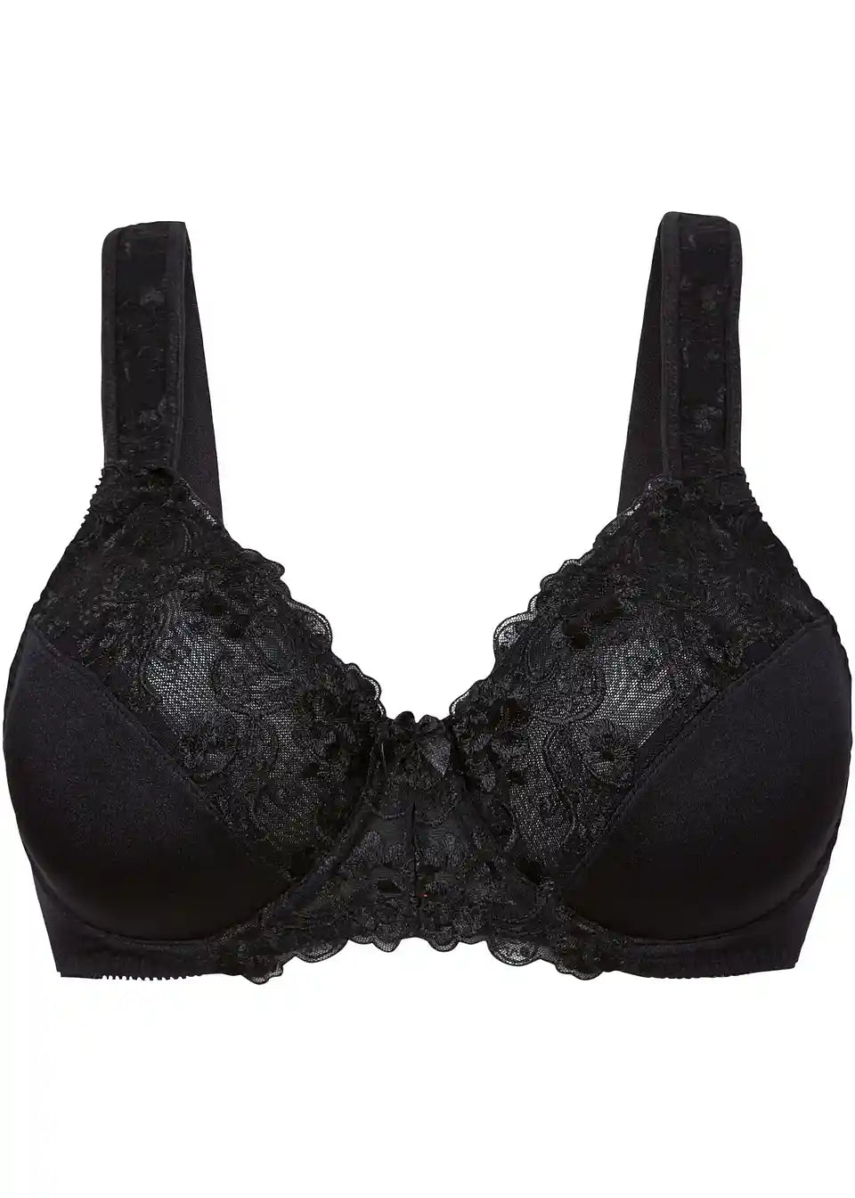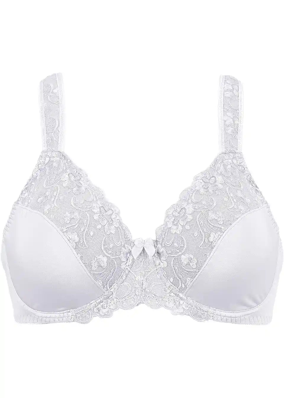Izvrstan Minimizer grudnjak marke bpc selection optički smanjuje volumen grudi. Idealan je za veće veličine grudi te zahvaljujući posebnom kroju pruža optimalnu podršku. Ugrađene žice osiguravaju visoku udobnost nošenja. Ekstra široke, podložene naramenice rasterećuju ramena. Poseban dojam daje profinjeni vez kojim je grudnjak stiliziran i u bijeloj boji savršeno ukrašen za vaše vjenčanje.