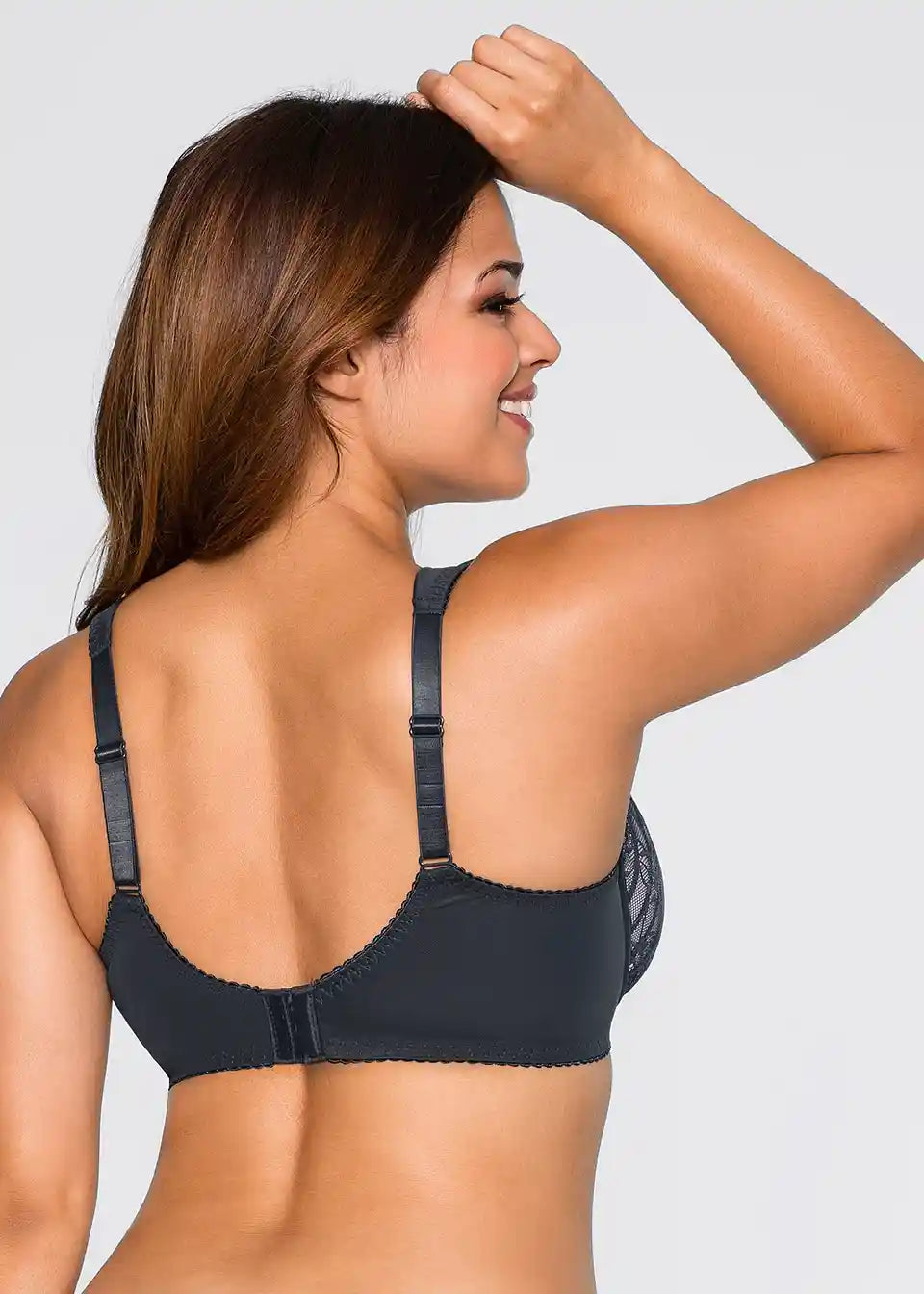 Ovaj minimizer grudnjak iz bpc selection idealan je za dame s većim poprsjem. Njegov poseban kroj vizualno smanjuje poprsje. Široke naramenice smanjuju opterećenje leđa zahvaljujući podstavi te osiguravaju visoku udobnost. Žičane košarice modela prekrivene su finom čipkom, a gornji dio je proziran.