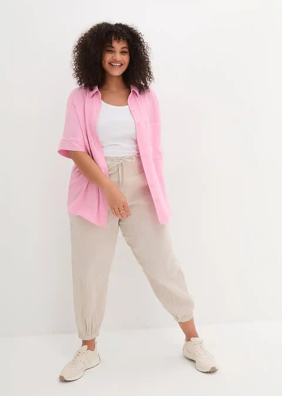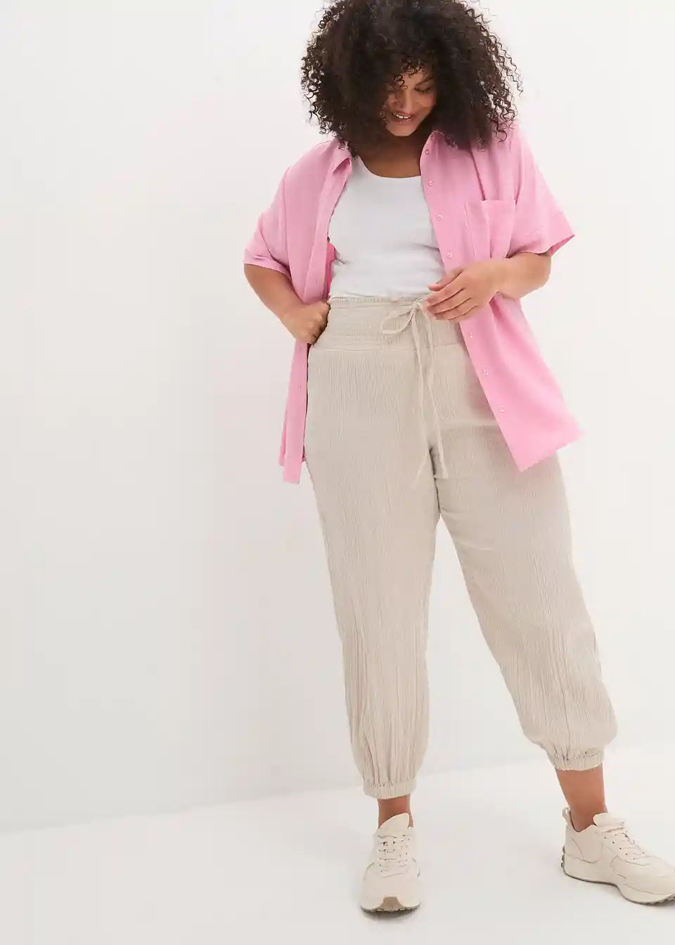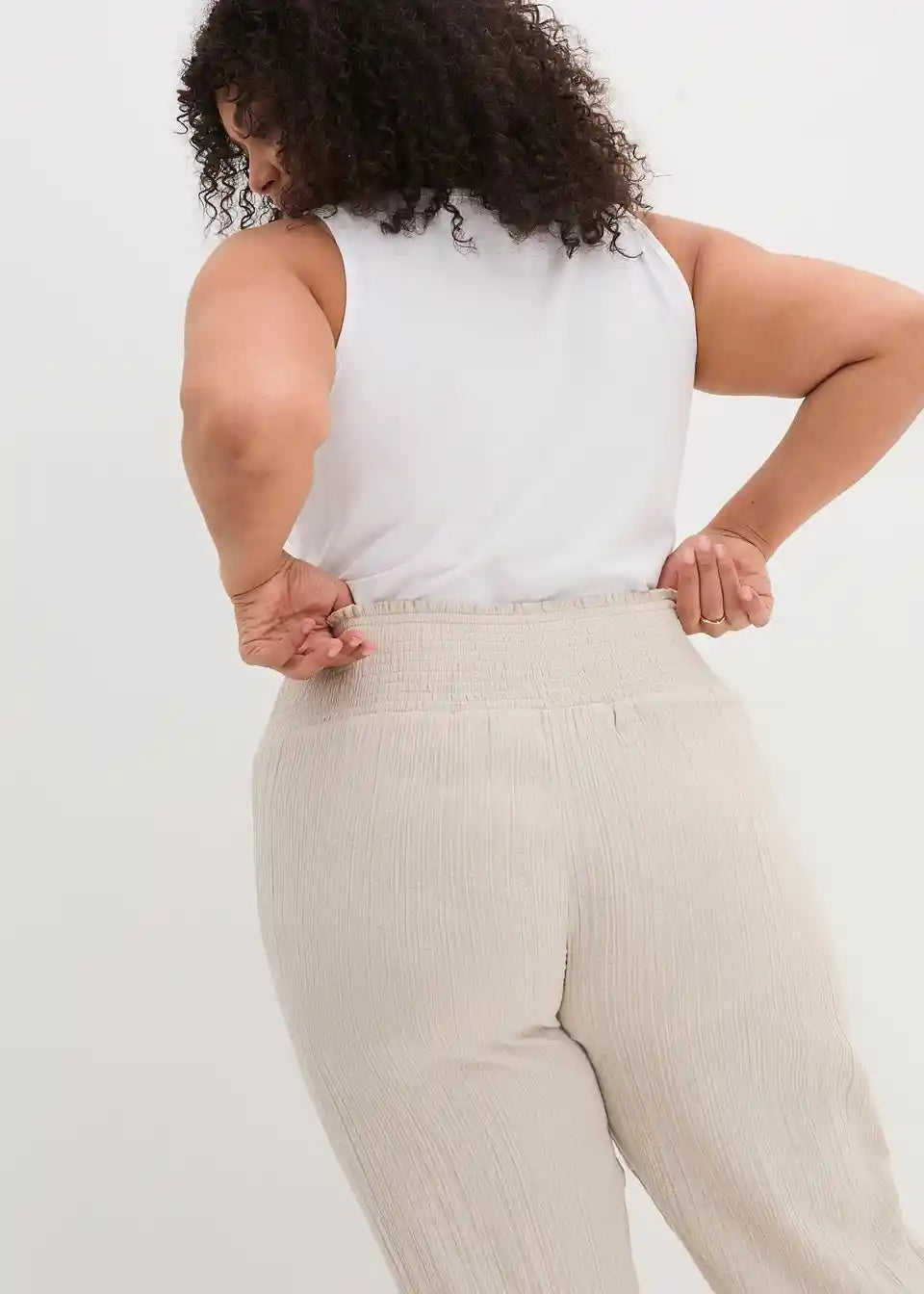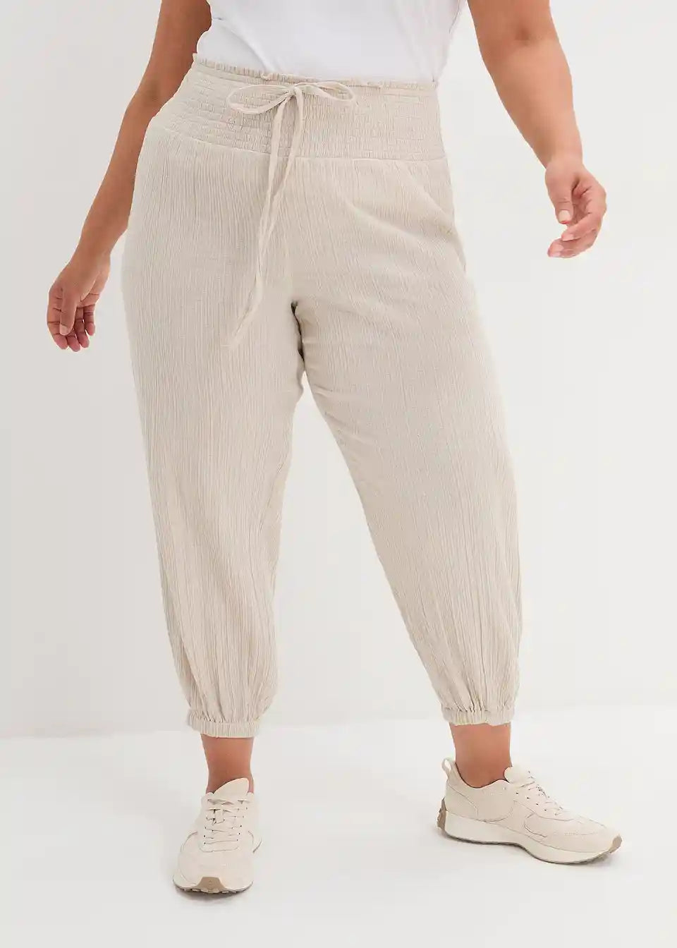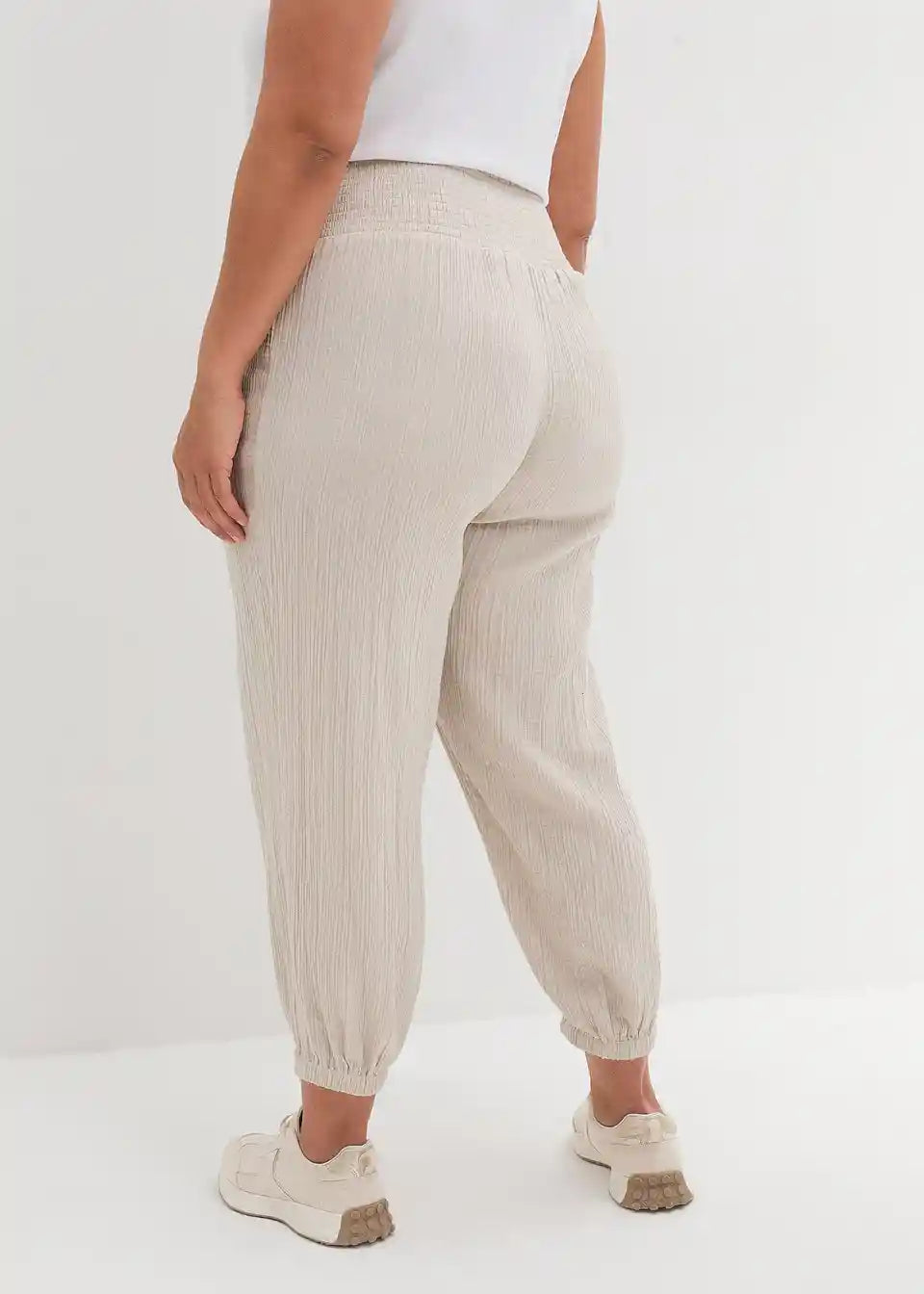 Udobne mušelinske hlače sa širokim elastičnim pojasom