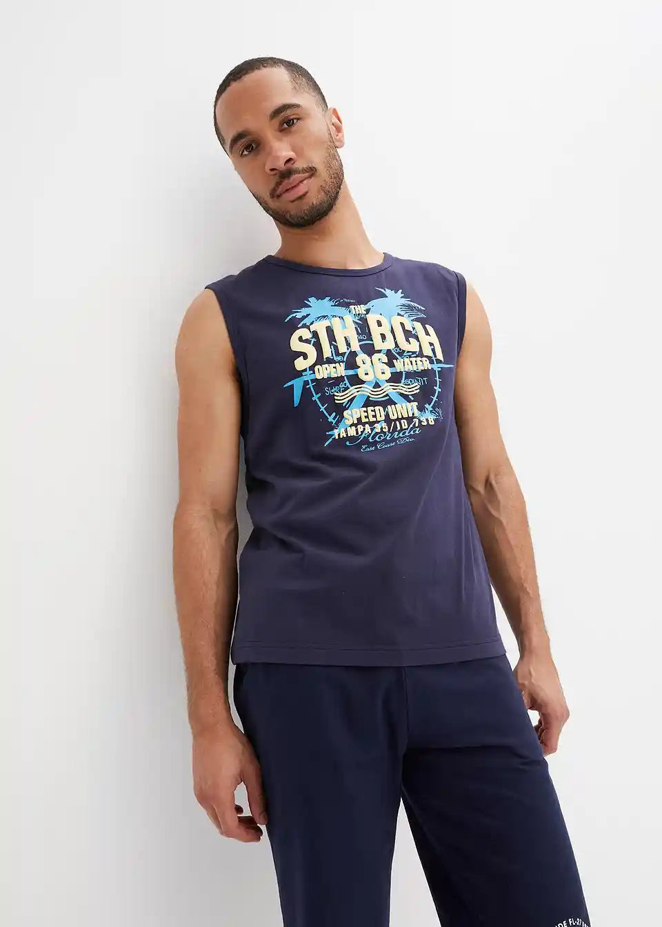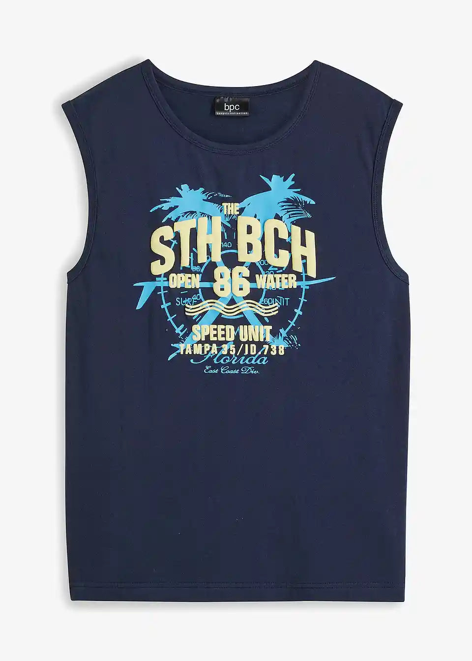Ova muška majica bez rukava Regular Fit posebno pridonosi izražavanju nadlaktica. Široki otvori za ruke dodatno naglašavaju ležerni kroj modela. Prednji dio majice ističe se prekrasnim, višebojnim printom. Bilo uz kratke hlače i papuče ili uz traperice i tenisice: Majica iz bpc kolekcije osigurava opušten izgled.