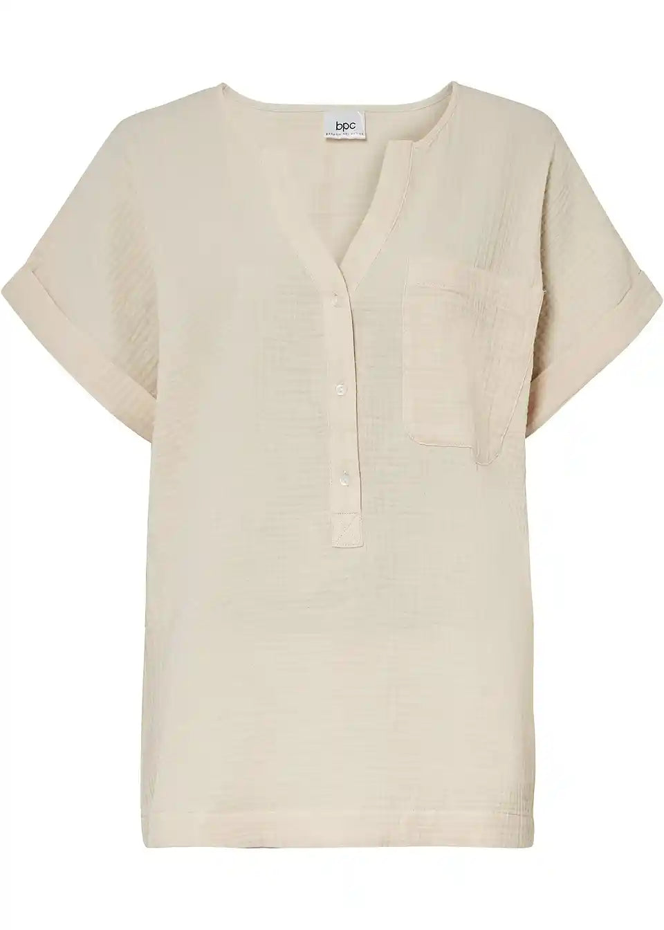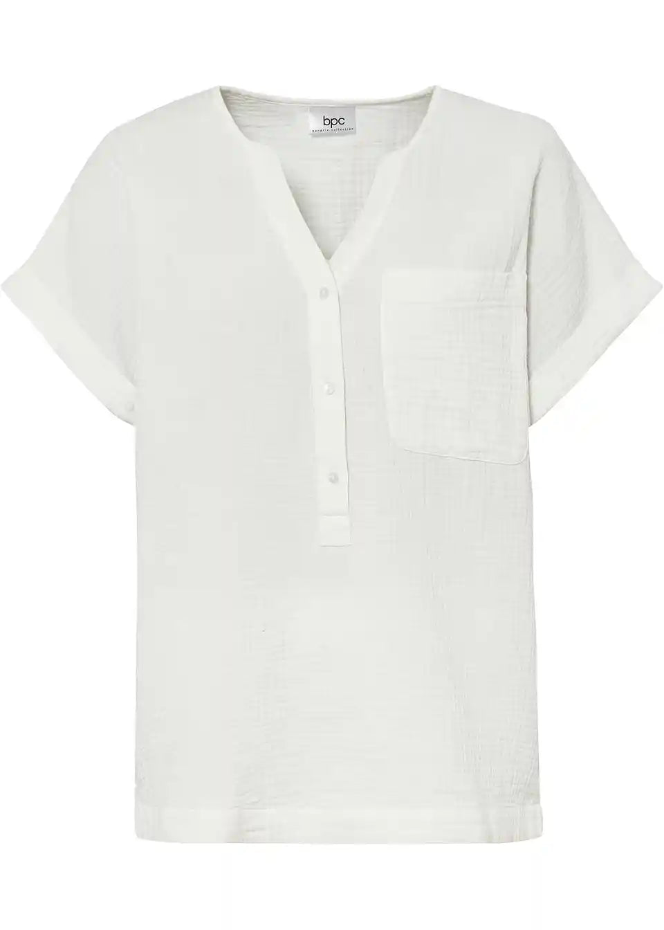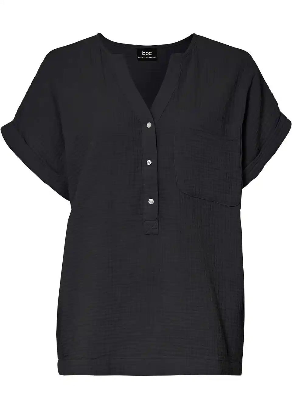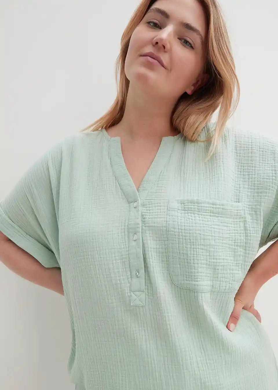 Bluza od muslina s kopčanjem na gumbe i džepom