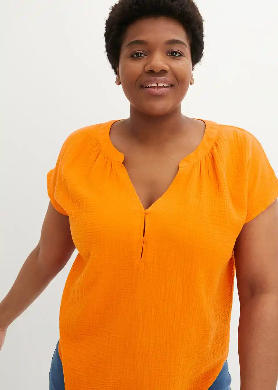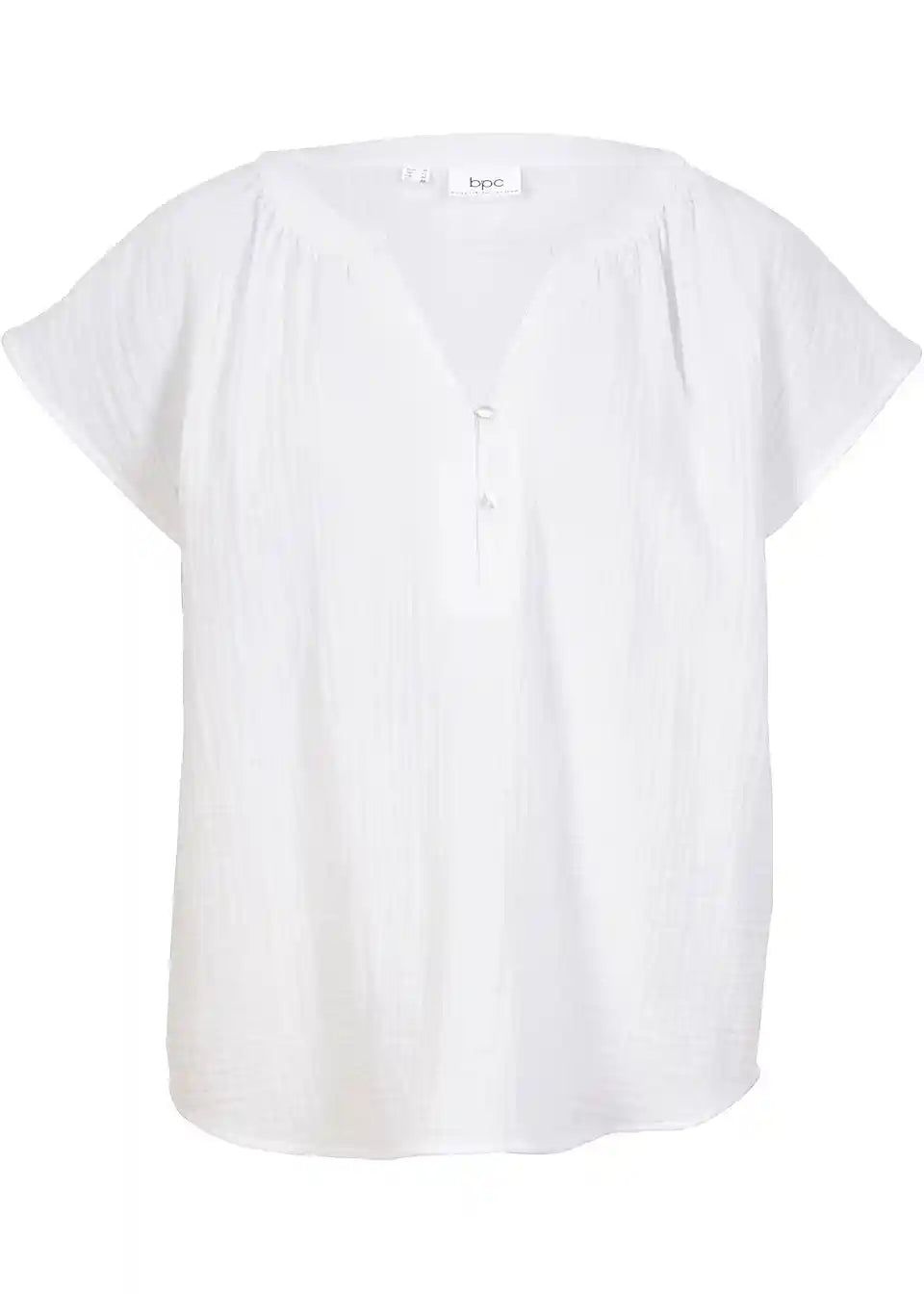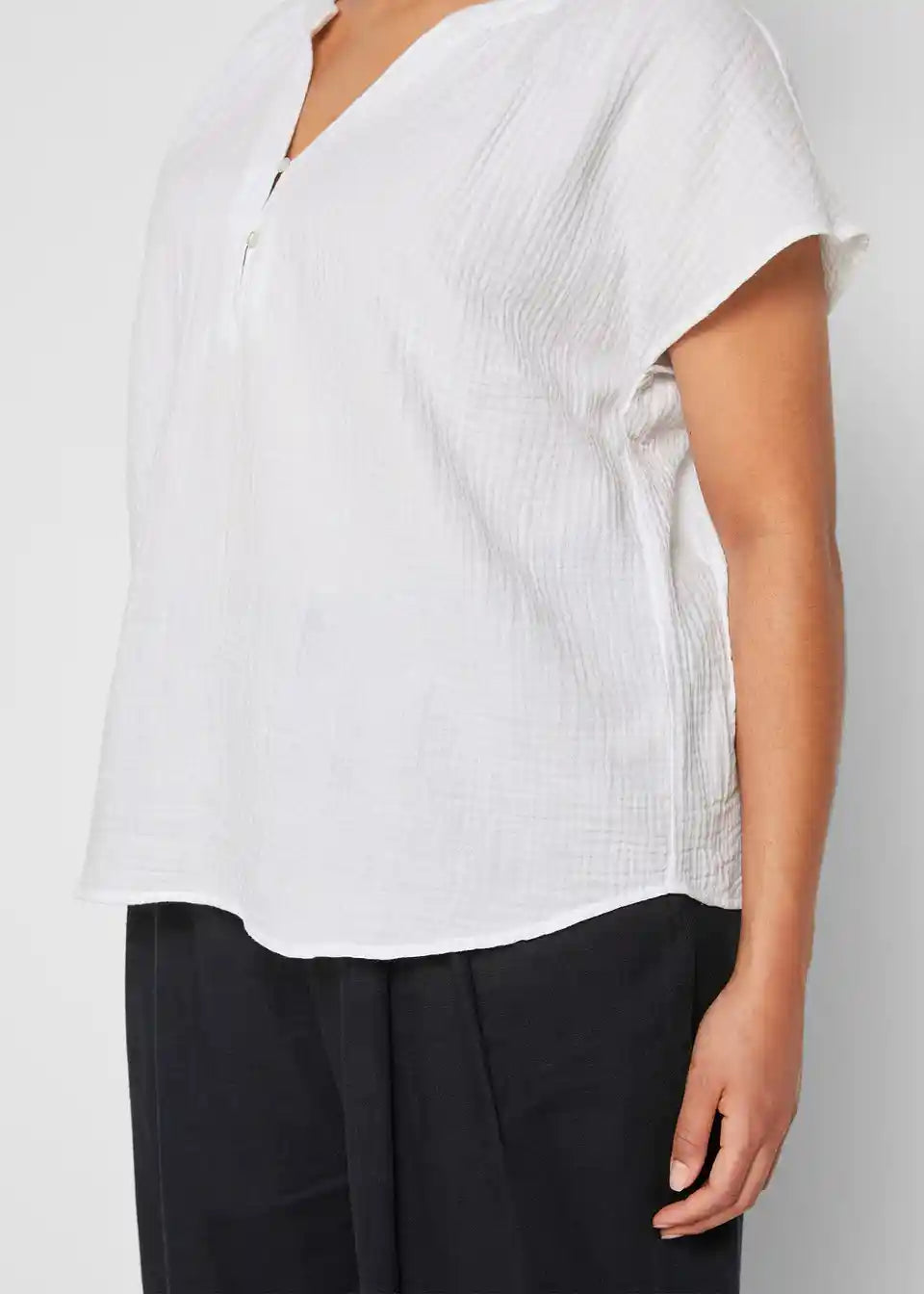 Moderna musselin-bluza s V-izrezom i prepuštenim ramenima