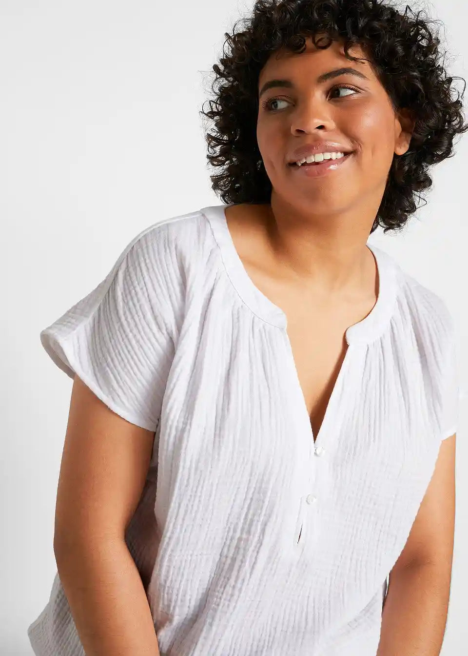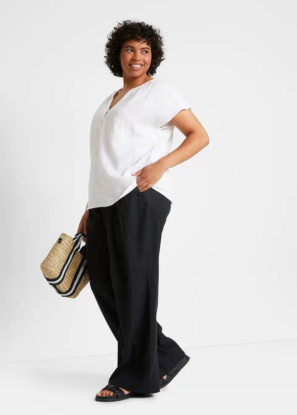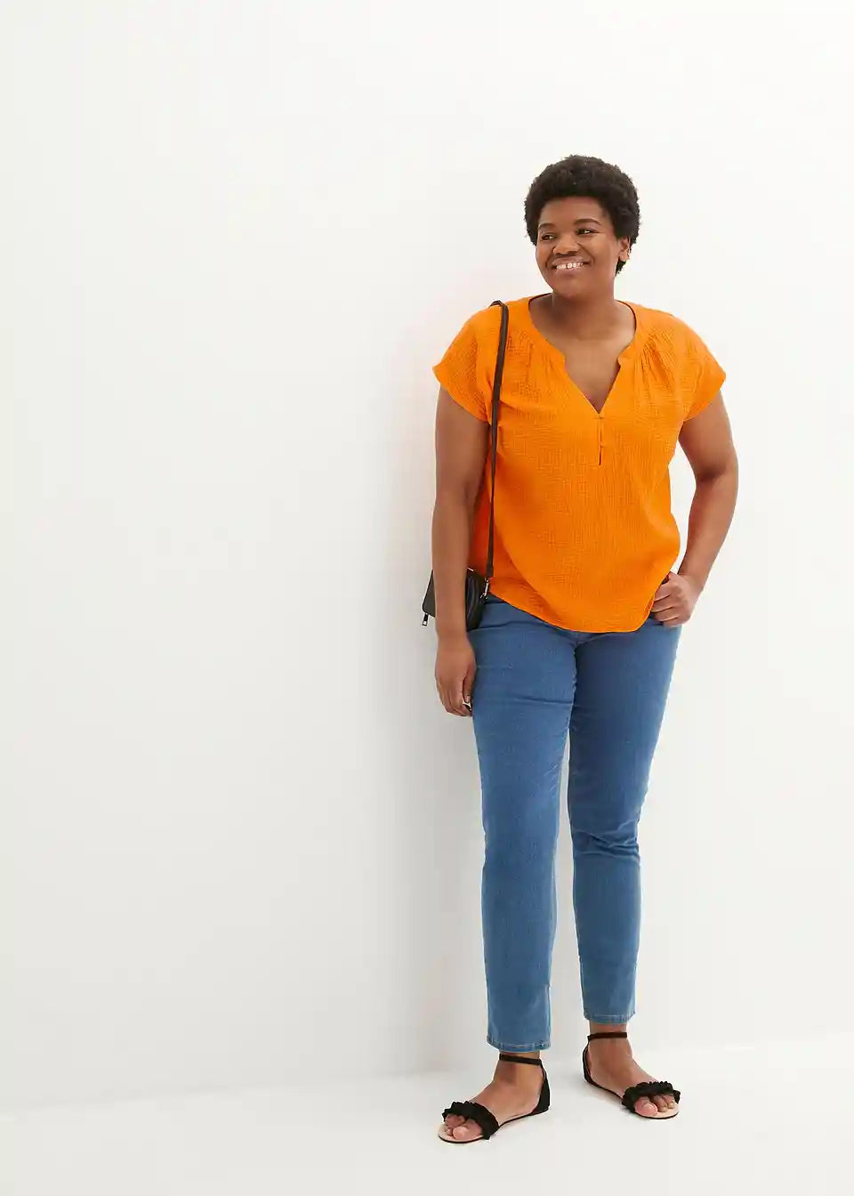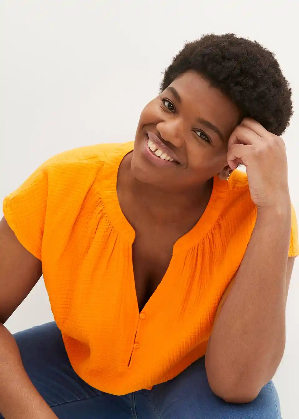 Moderna musselin-bluza s V-izrezom i prepuštenim ramenima