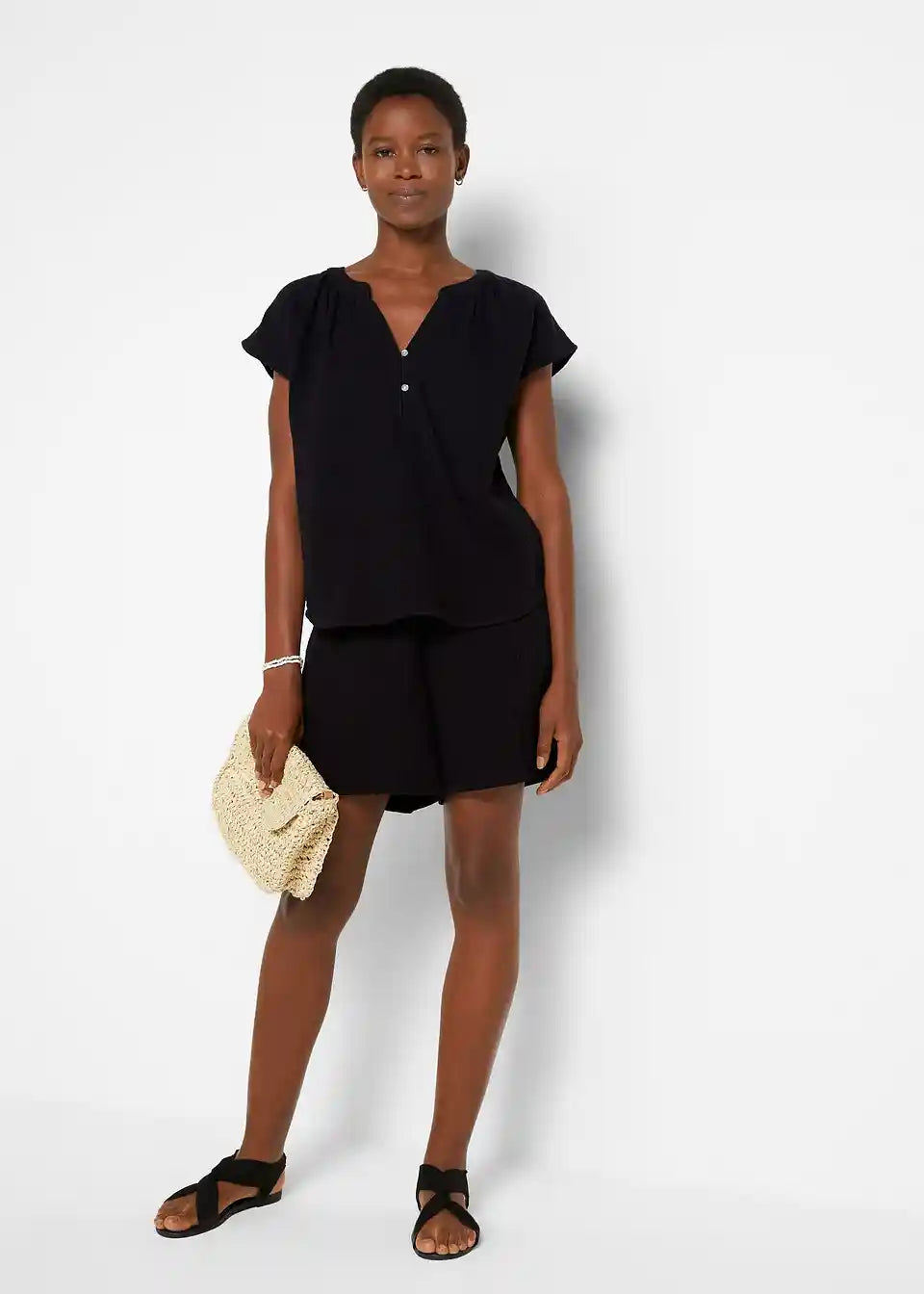 Moderna Musselin-bluza s V-izrezom i prebačenim ramenima