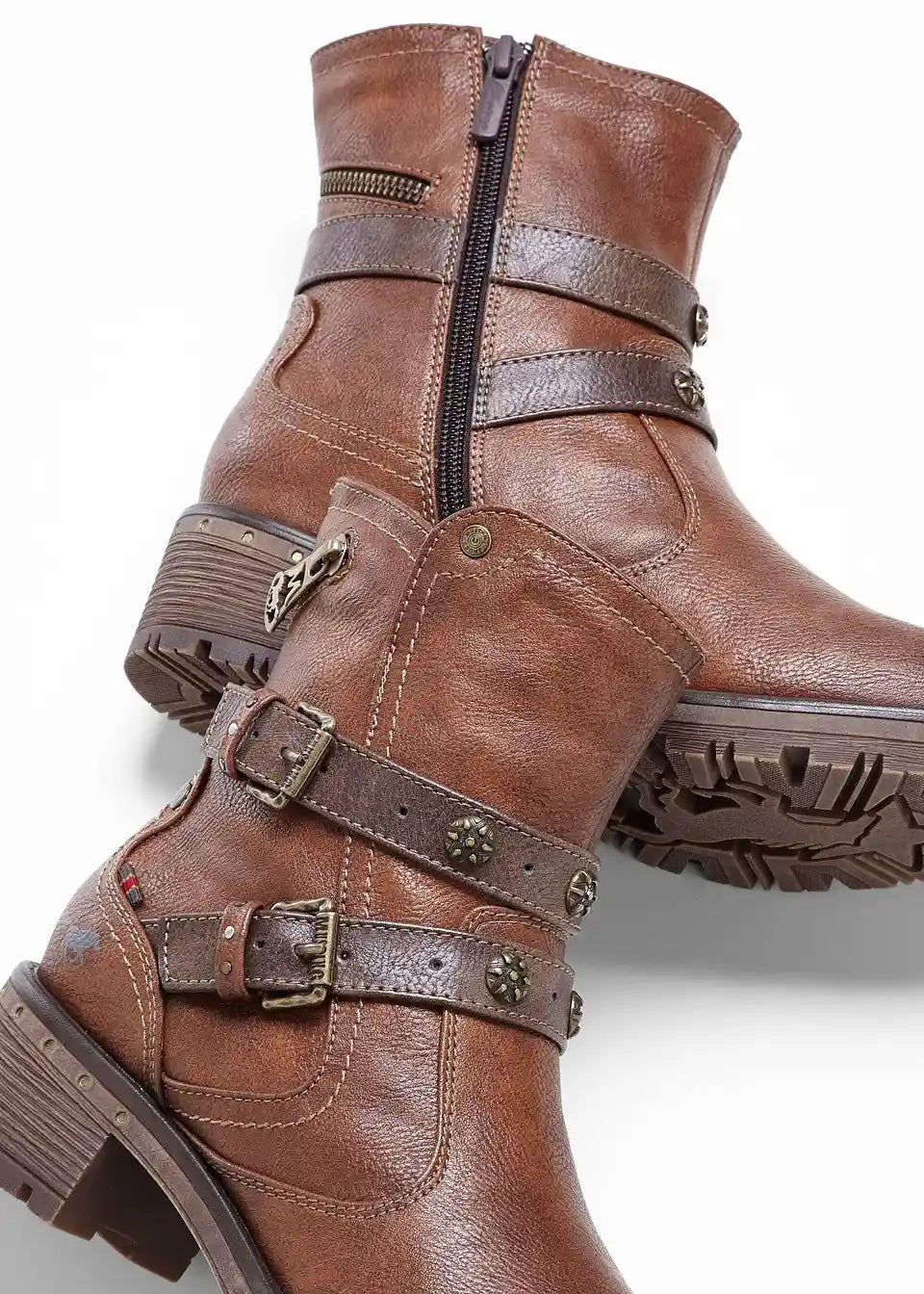 Modernog dizajna i svestrano kombinirajuće: Čizme marke Mustang dizajnirane su u trendi biker stilu. Ovaj izgled karakteriziraju stilske kopče i dekorativni patentni zatvarači na peti. Ulazak je olakšan bočnim patentnim zatvaračem. Bilo da ih nosite s trapericama ili kao kontrast uz kratku suknju - čizme marke Mustang privlače poglede.