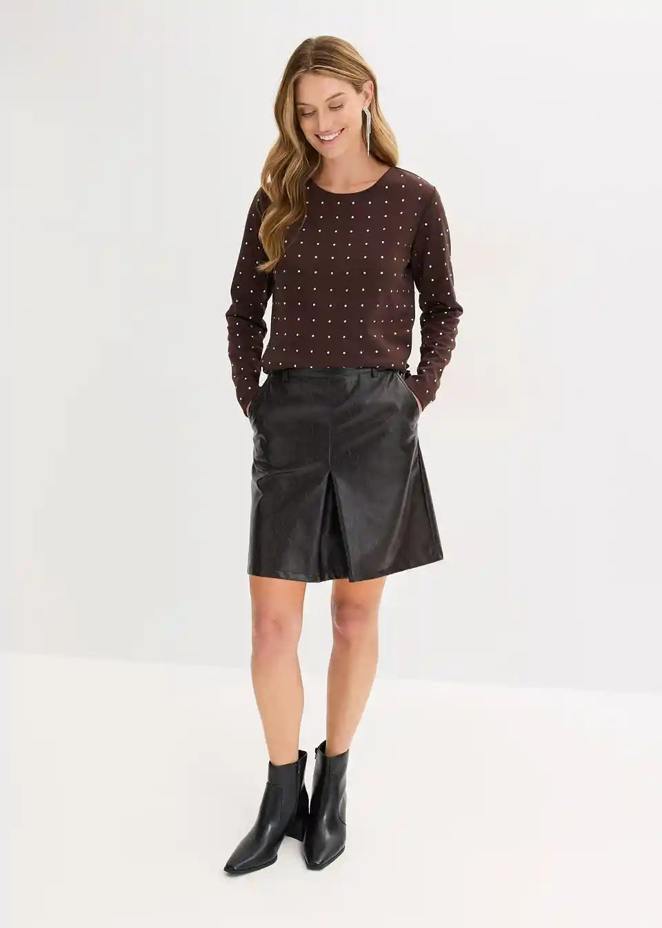 Suknja s faldama od lakirane imitacije kože