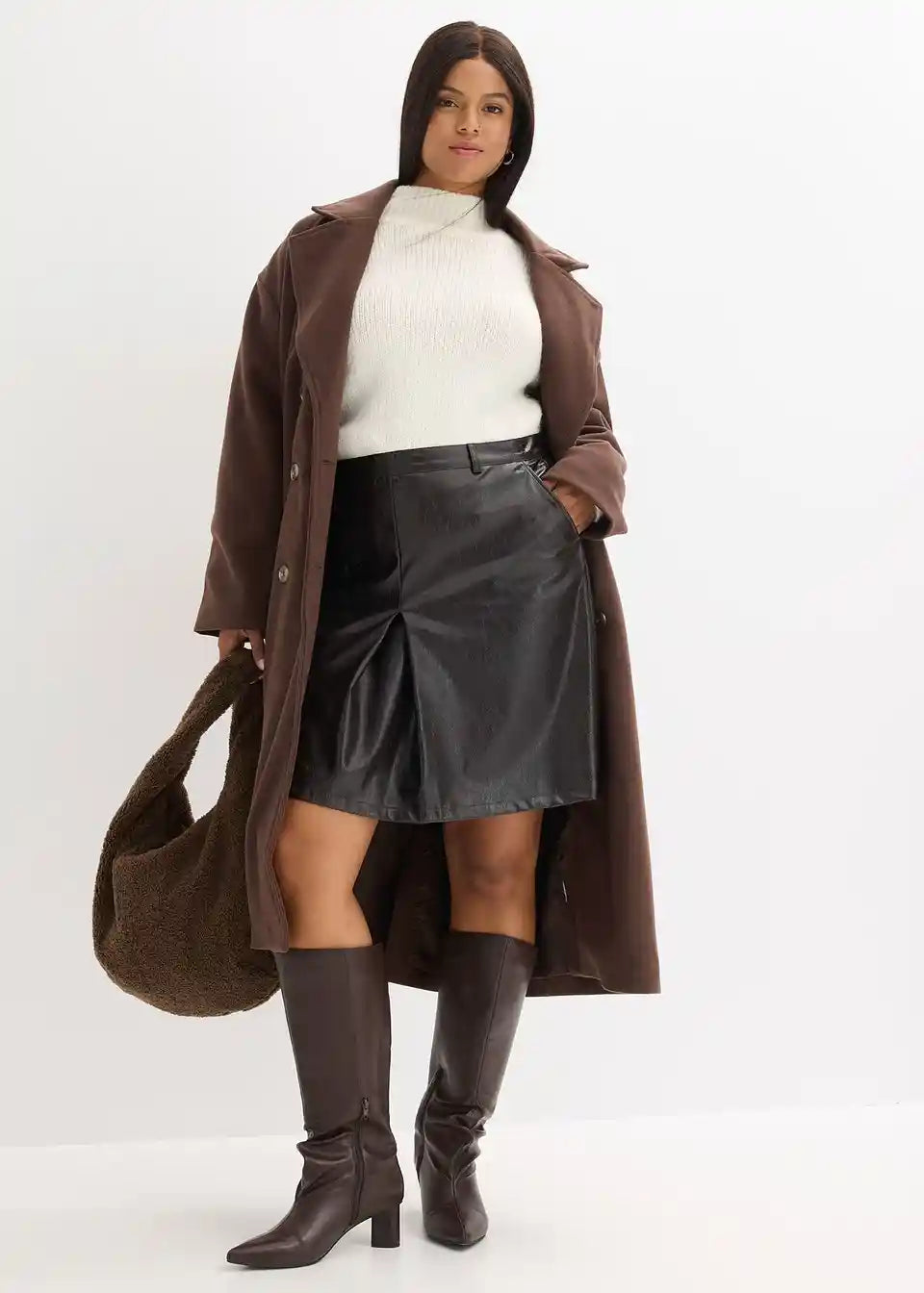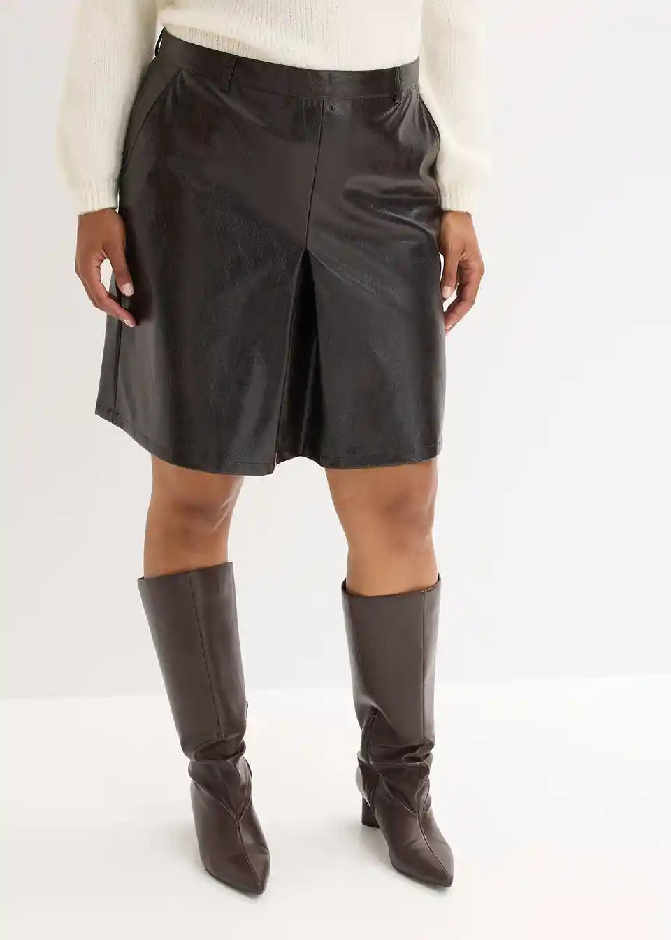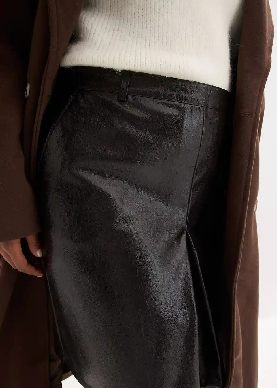 Suknja s faldama od lakirane imitacije kože