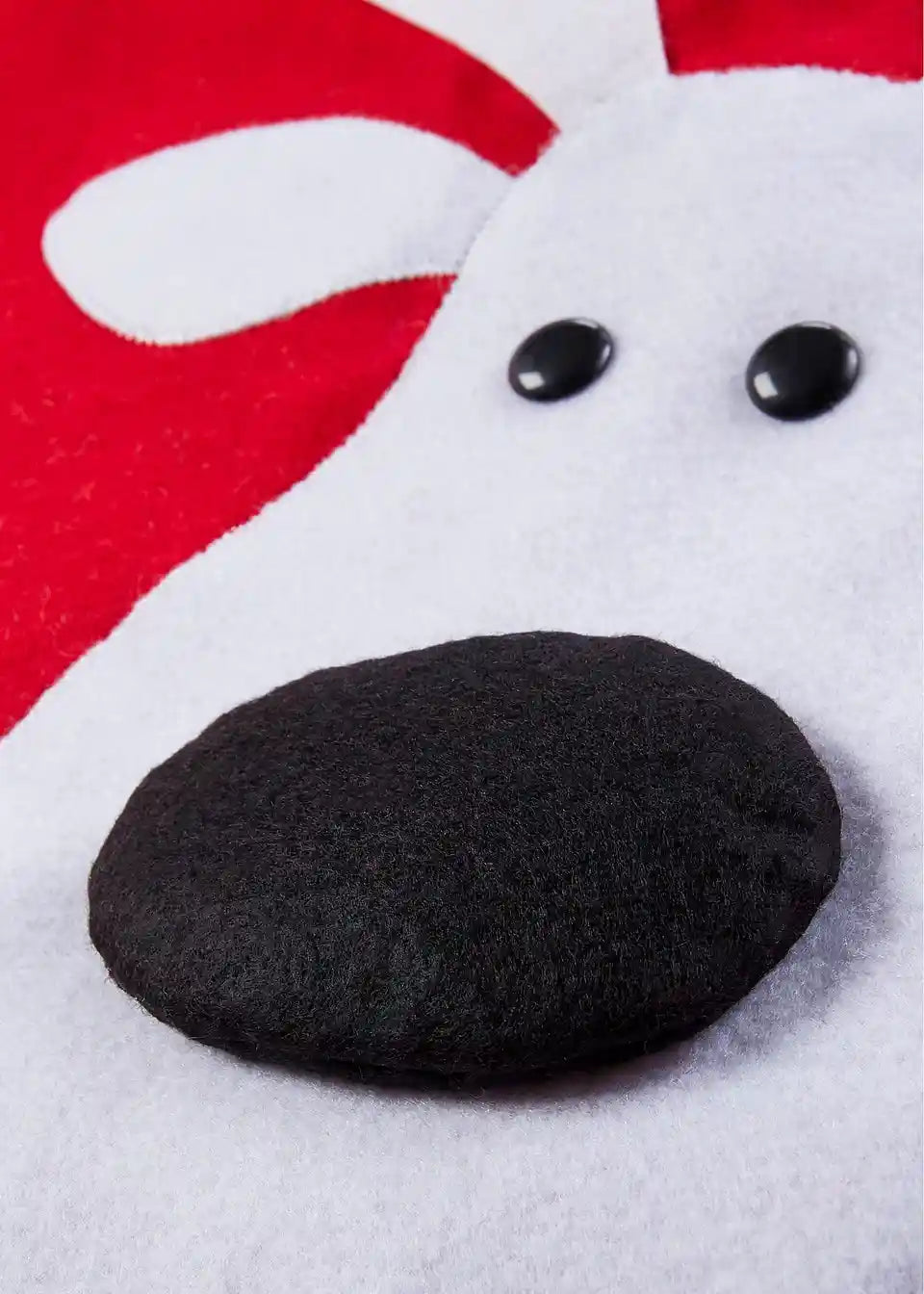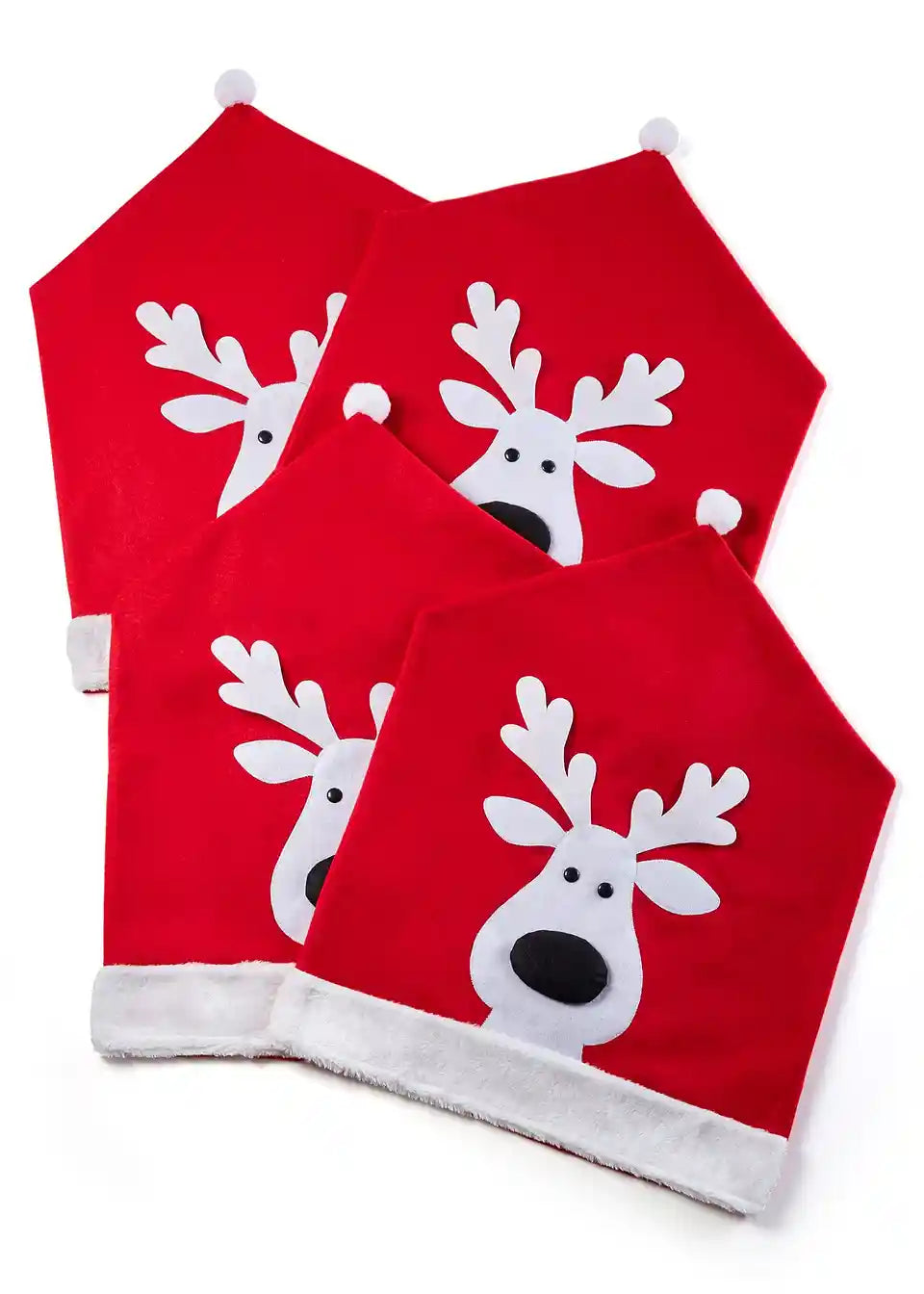 Navlaka za stolice s aplikacijom losa dolazi u božićnom pakiranju od 4 komada. Dizajnirana u obliku kapice sa šilterom, impresionira svojim simpatičnim izgledom. Oduševljava i velike i male: s navlakom za stolice blagovaonski prostor odmah dobiva blagdanski ugođaj.