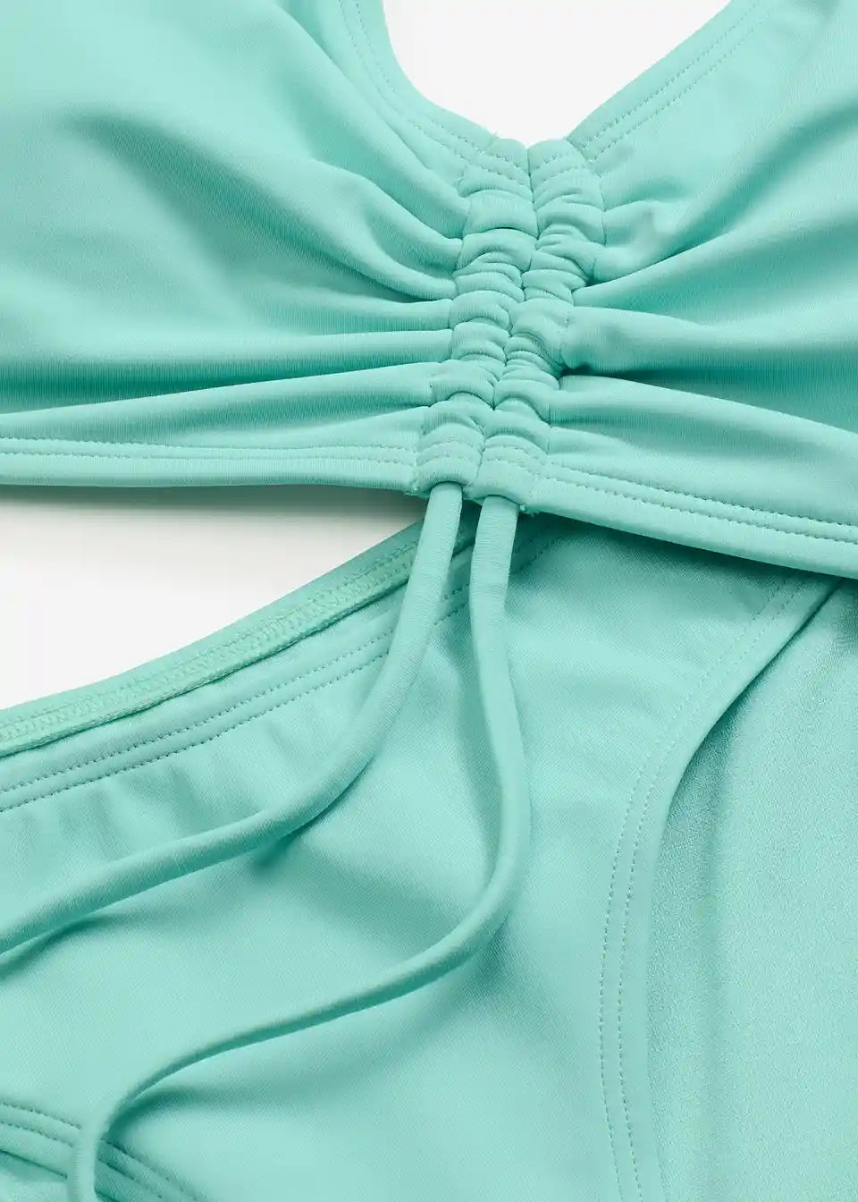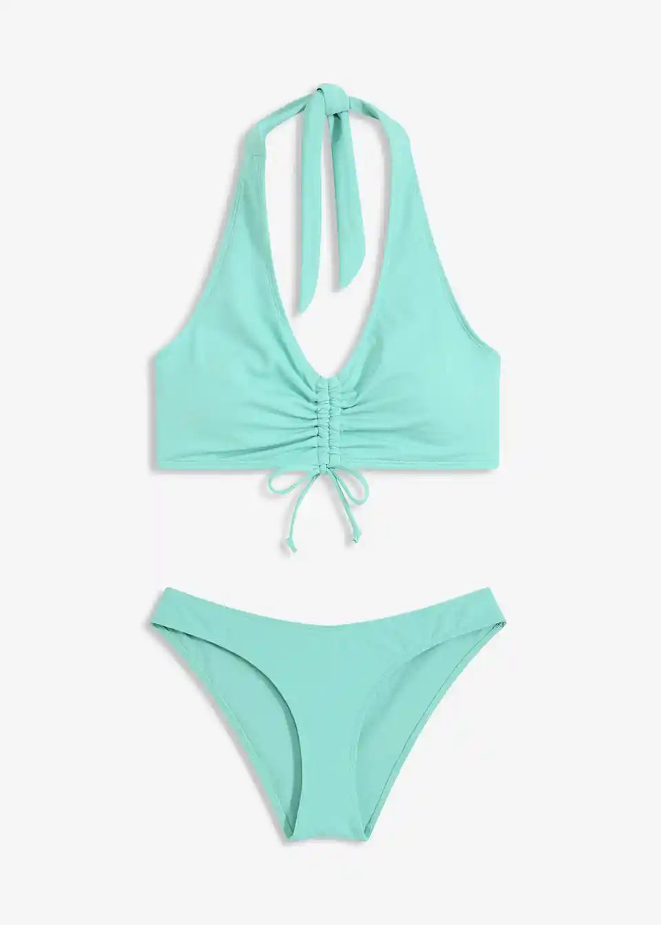 Bikini dvodijelni kupači kostim s naramenicom oko vrata i naborima