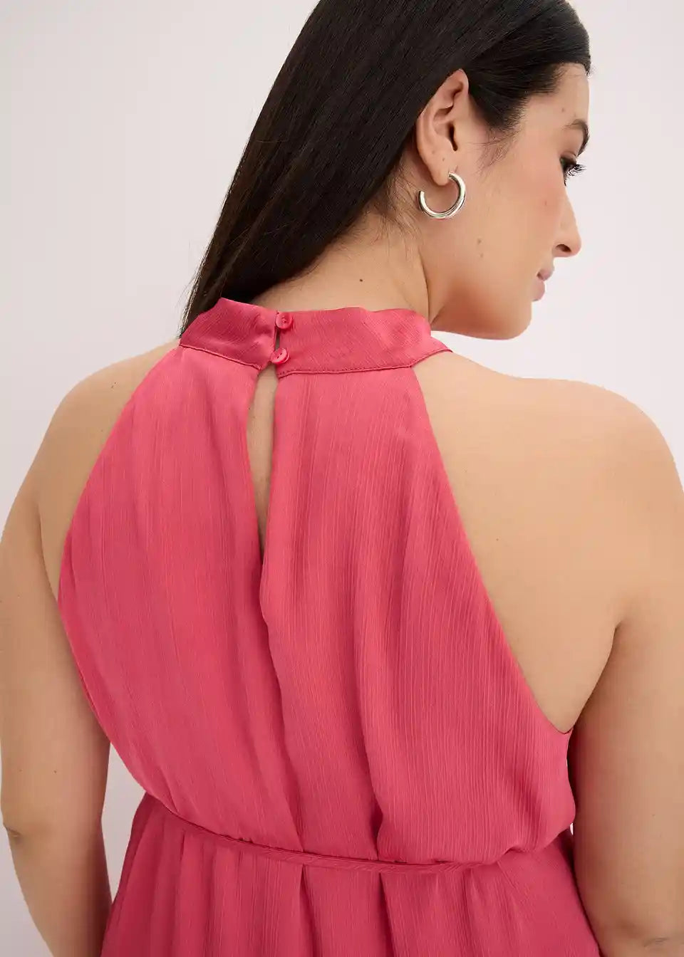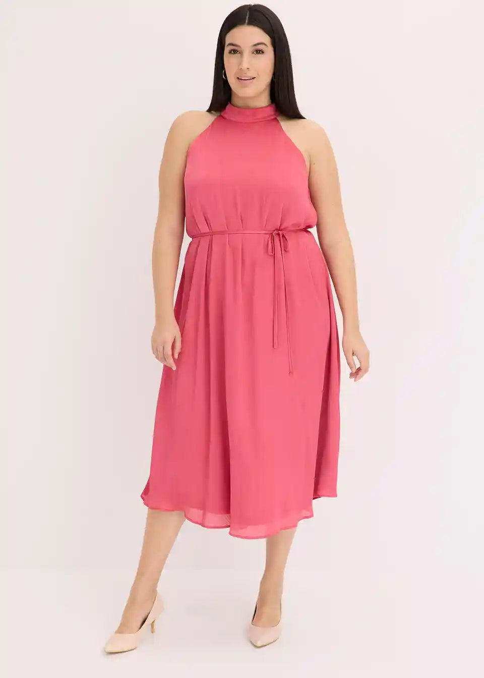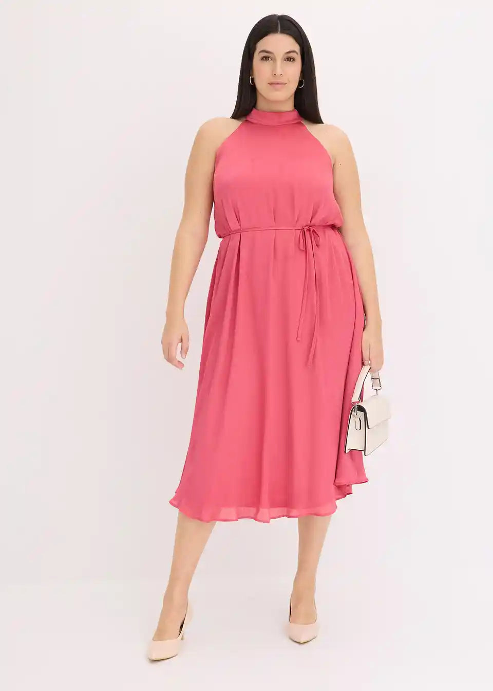 ženstvena Neckholder midi haljina od lepršavog satenskog krepa