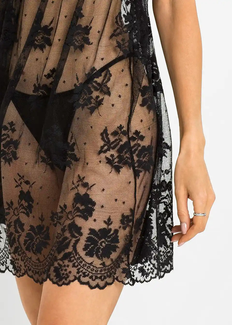 Očarajte svoju voljenu osobu! Ovaj nježni negliže prati vaše obline i čini ih senzualno prozirnima. Romantična čipka savršeno ističe vaše obline, a raskošan mašni detalj krasi vaš dekolte. Kombinirajte negliže s crnim visokim potpeticama i neka noć postane dan.