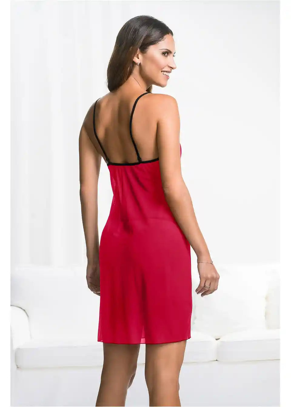 Prozirni negliže prava je atrakcija u svakoj spavaćoj sobi. Čipkasti umetci su istaknuti zbog kontrasta s nijansom bobičastog voća te pružaju razigrane uvidje. Ležerni kroj pruža osjećaj ugodnosti i radosti tijekom intimnih trenutaka u dvoje.