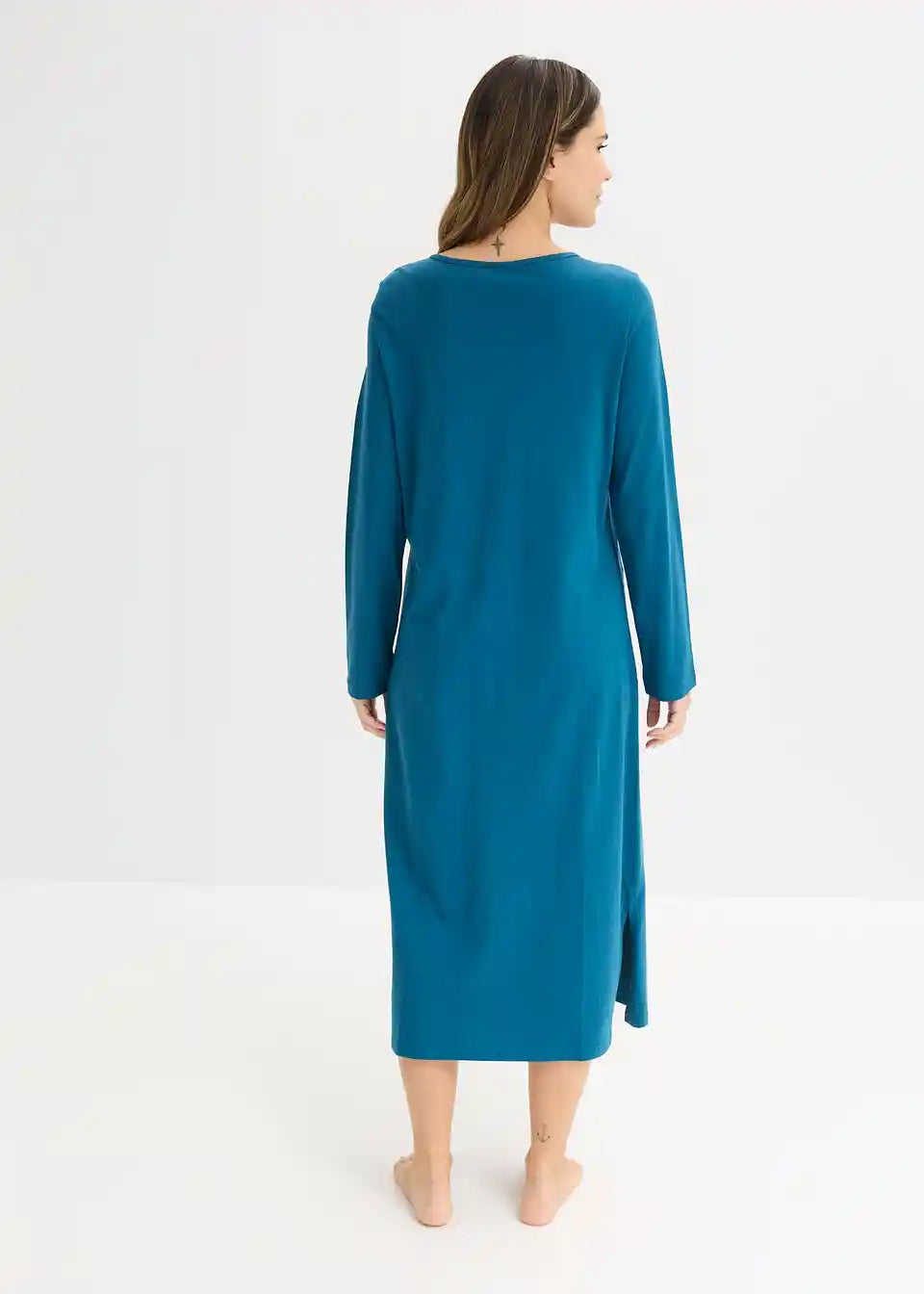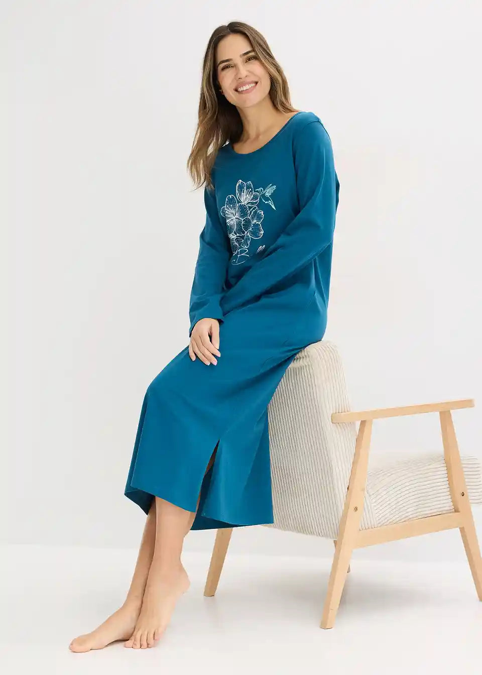 Udobna duga noćna haljina s dugim rukavima i bočnim prorezima te s lijepim cvjetnim printom