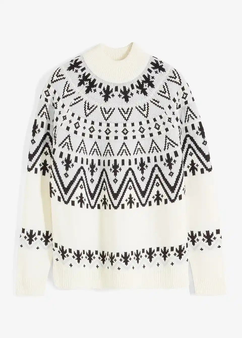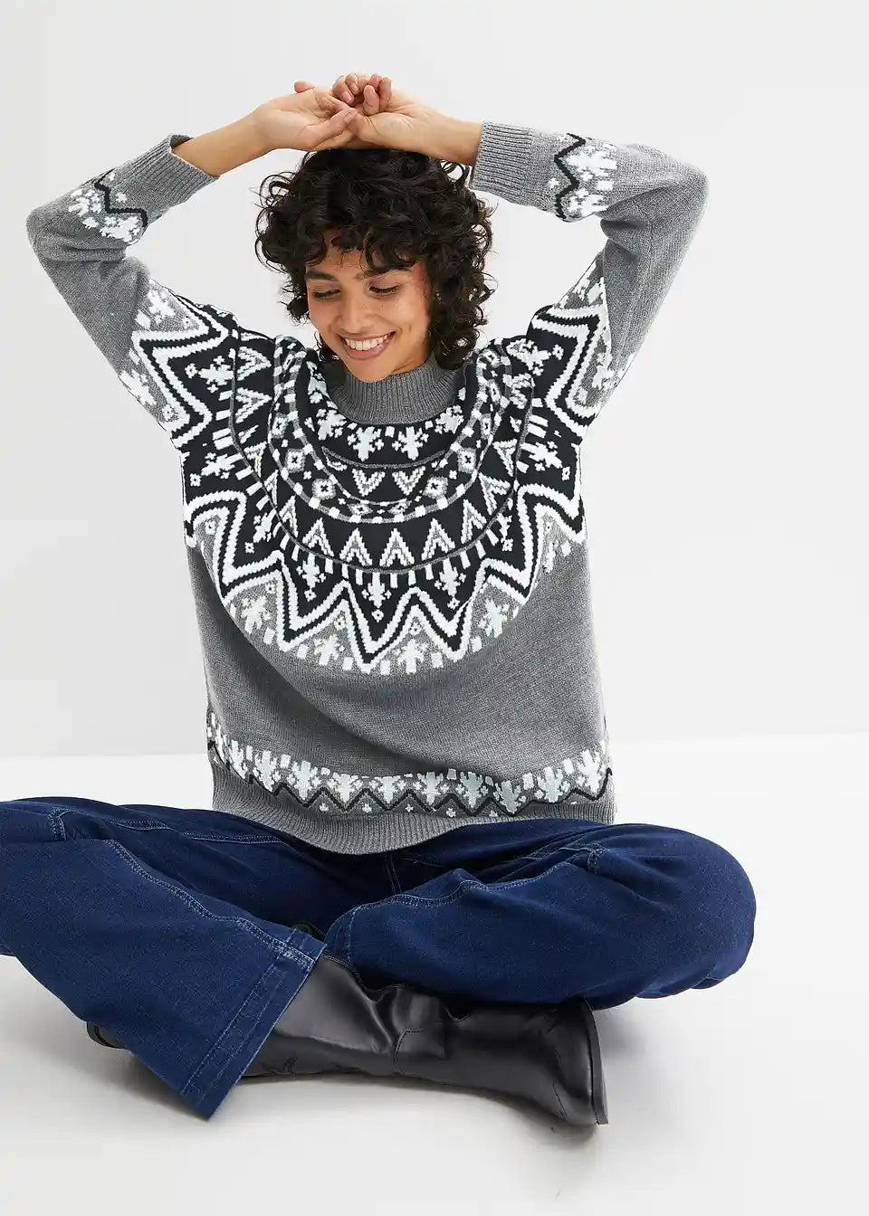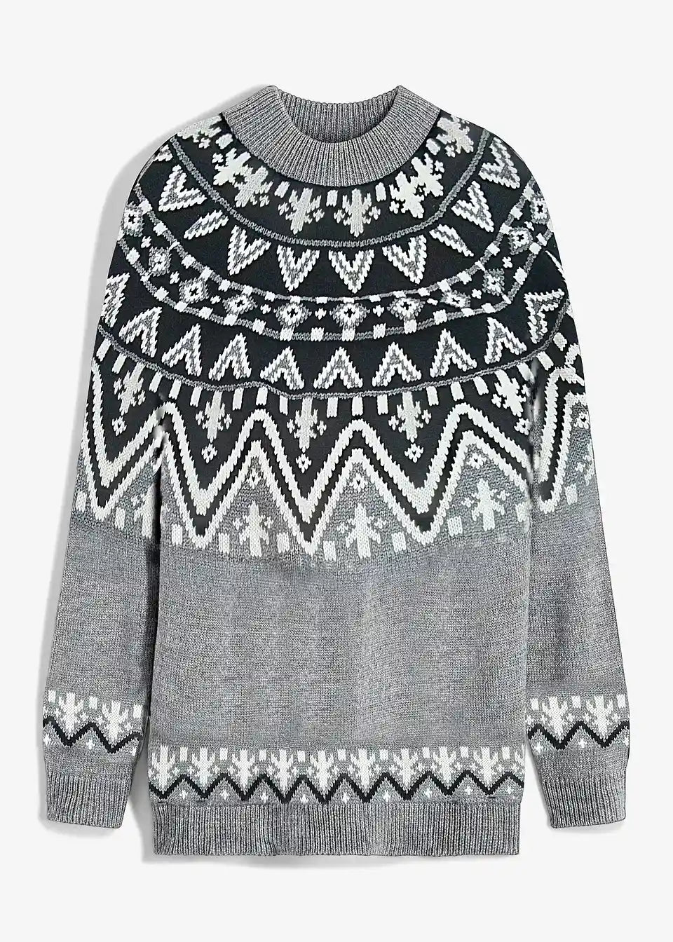 Široko krojena pletena majica s lijepim norveškim uzorkom