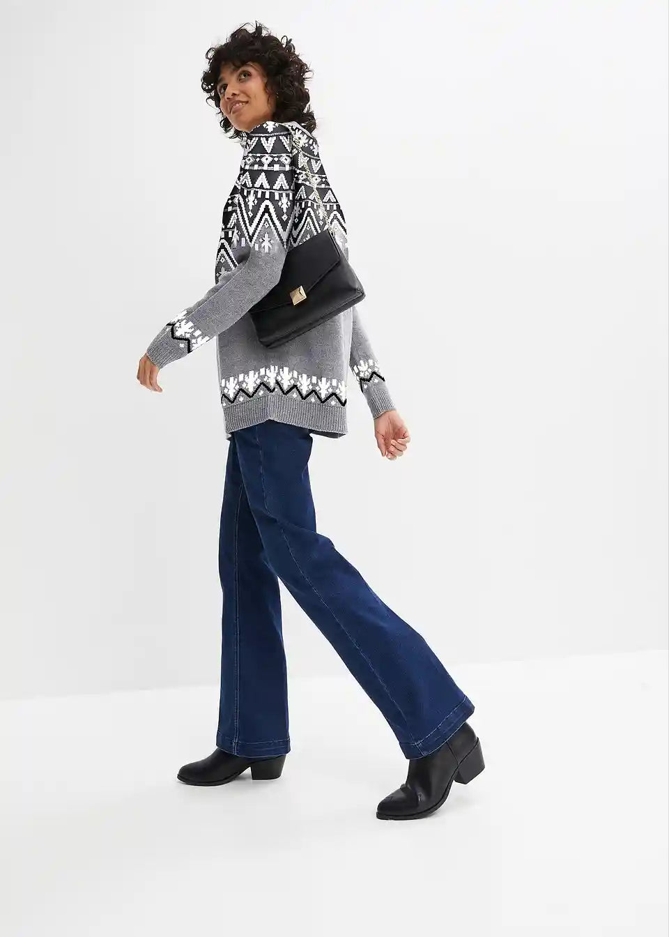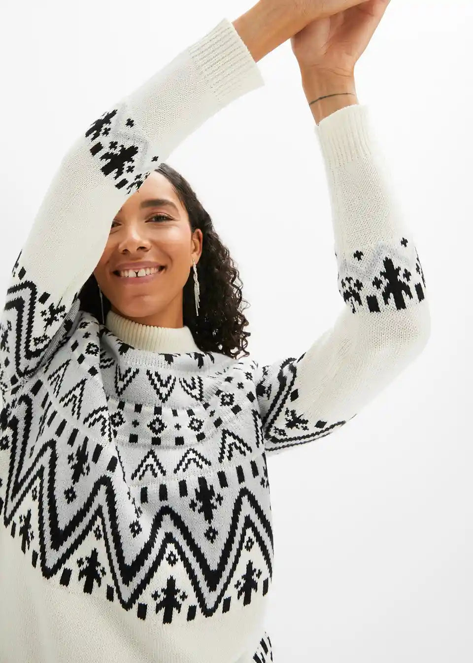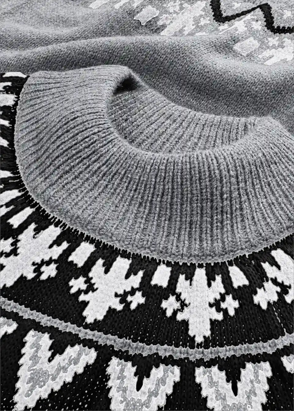 Široko krojena pletena majica s lijepim norveškim uzorkom