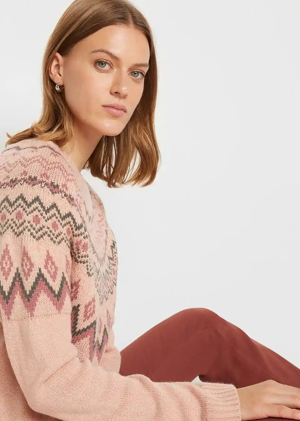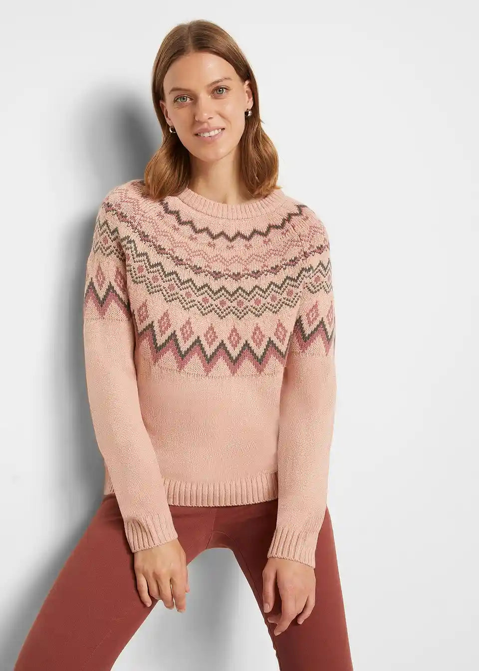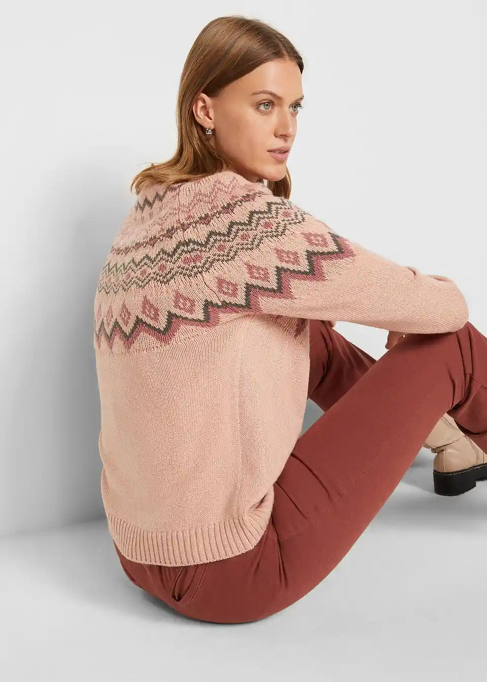 Udoban pleteni pulover s modernim norveškim uzorkom