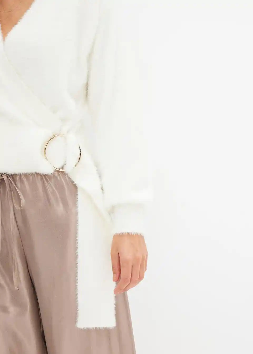 Pulover na preklop s modnim dodatkom