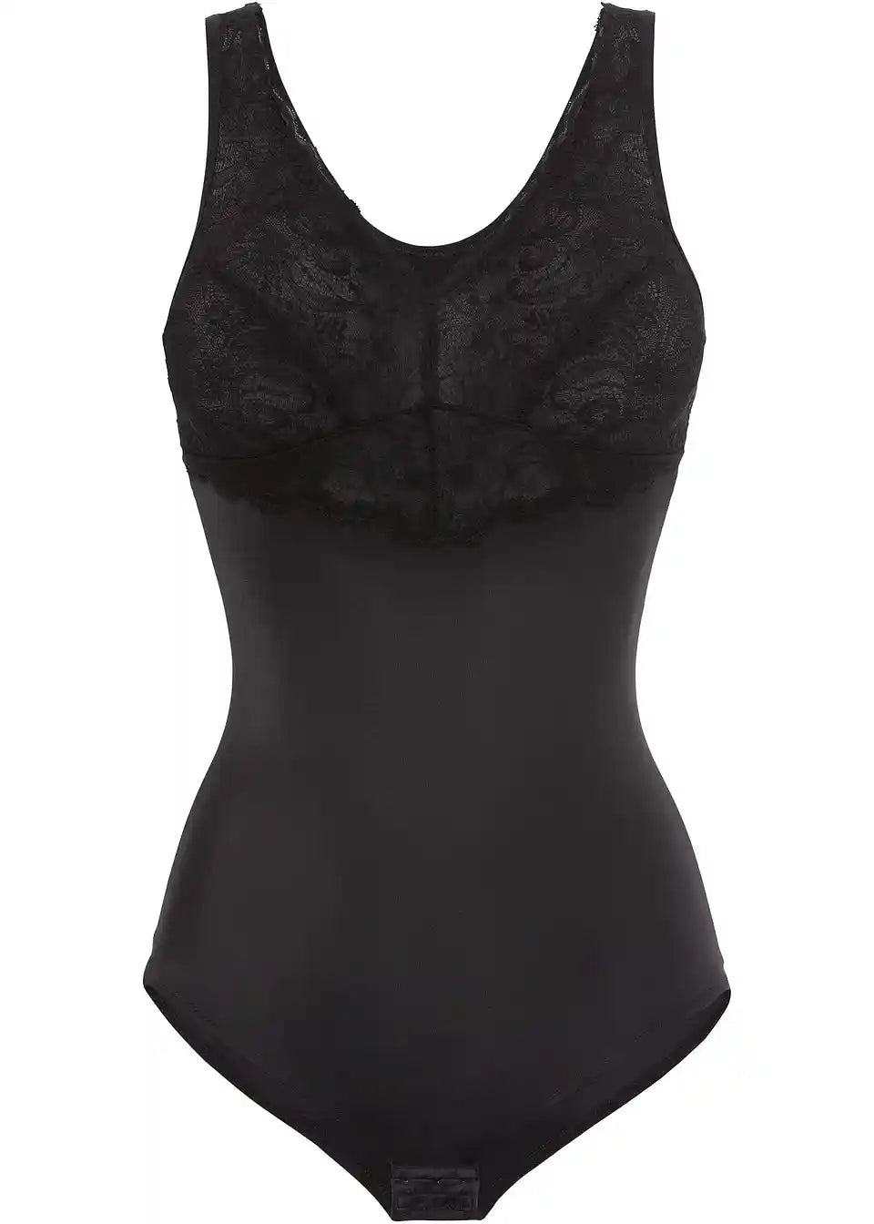 Ovaj atraktivni oblikovni body od Nice Size prikriva i naglašava točno na željenim mjestima. Čvrst i oblikovan materijal na trbuhu stvara posebno lijep struk i osigurava zapanjujuću žensku siluetu. Ovaj dojam dodatno pojačavaju fine čipkasti detalji na prednjem dijelu. Body se zatvara na preponama, a mekani umetci od pamuka pružaju visoku udobnost nošenja.