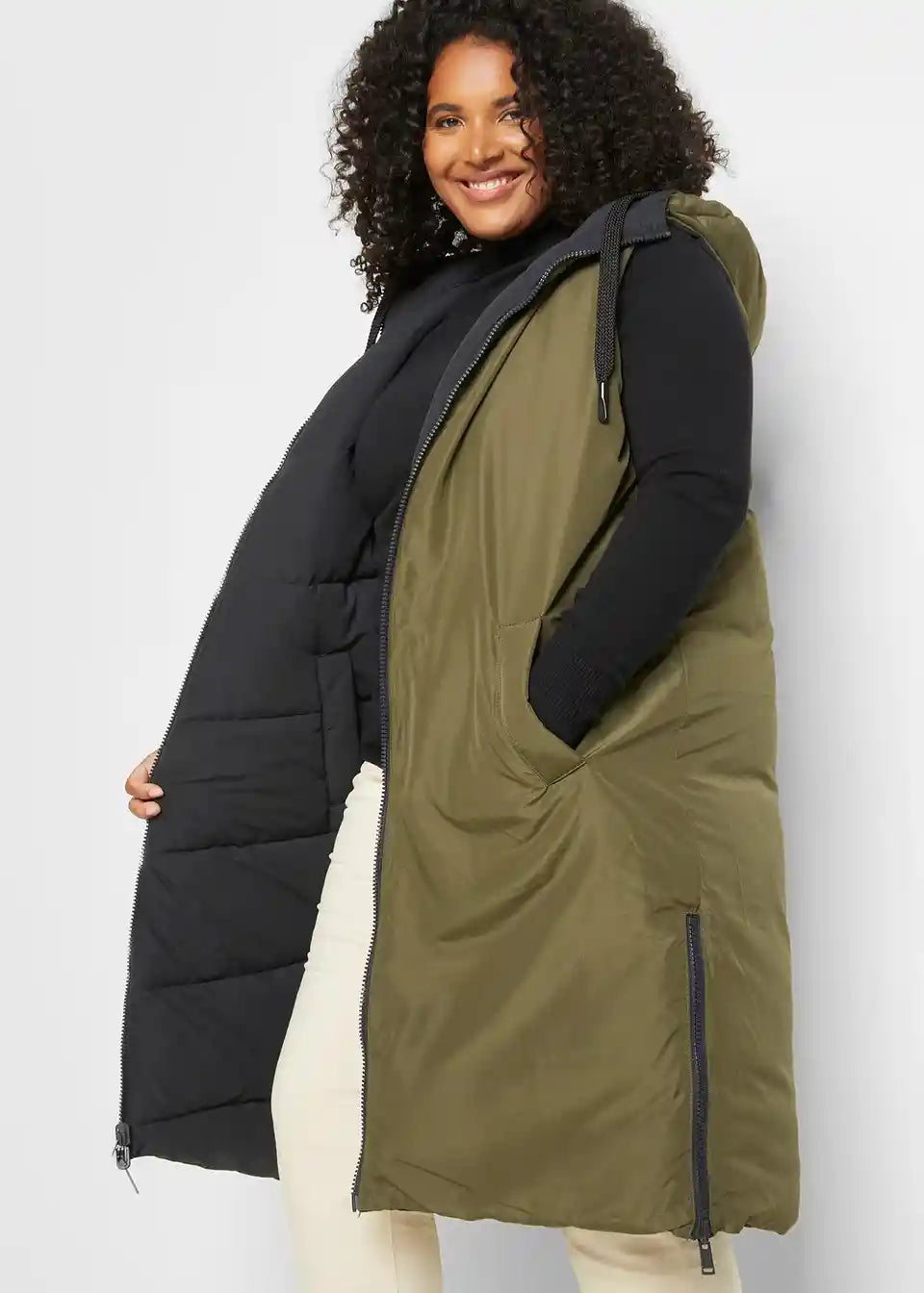 Oversize obostrano prošiveni prsluk s kapuljačom