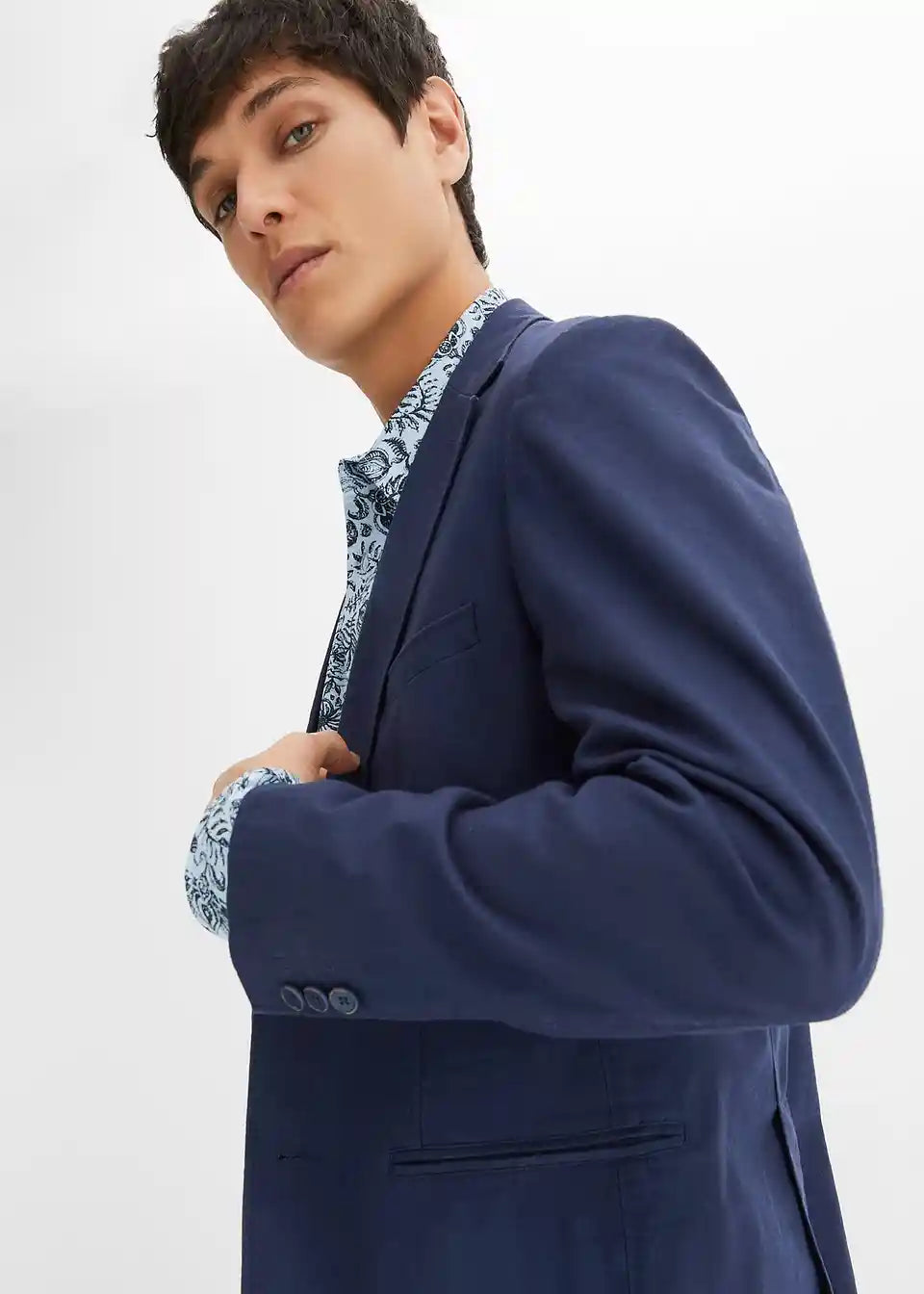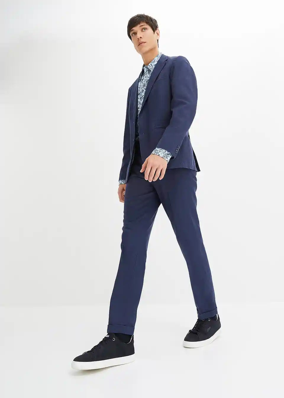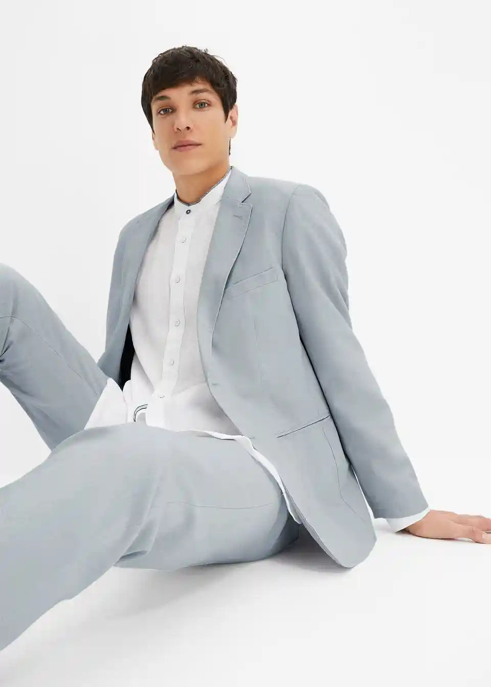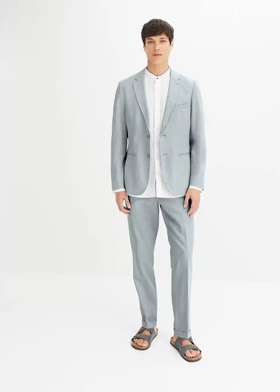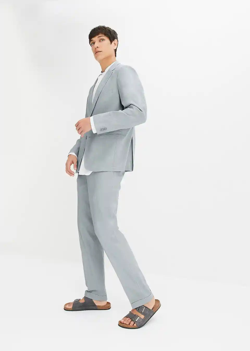 Moderno 2-dijelno odijelo koje se sastoji od sakoa i hlača od lana u kroju Slim Fit