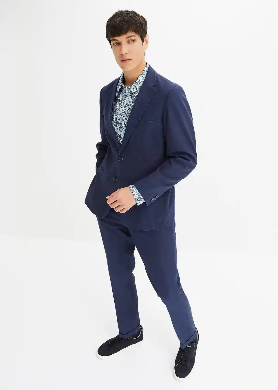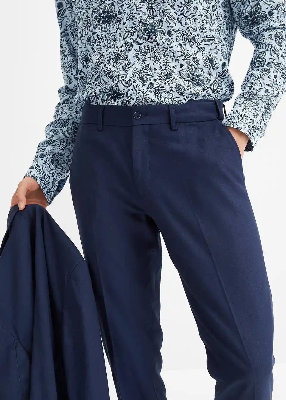 Završetak ruba:hlače: fiksirani zavrnuti rubovi, sako: ravan rub