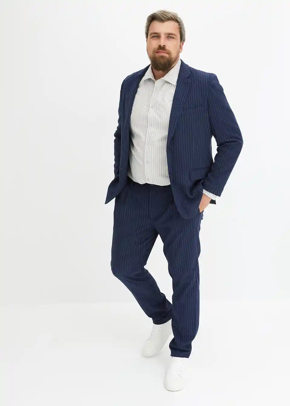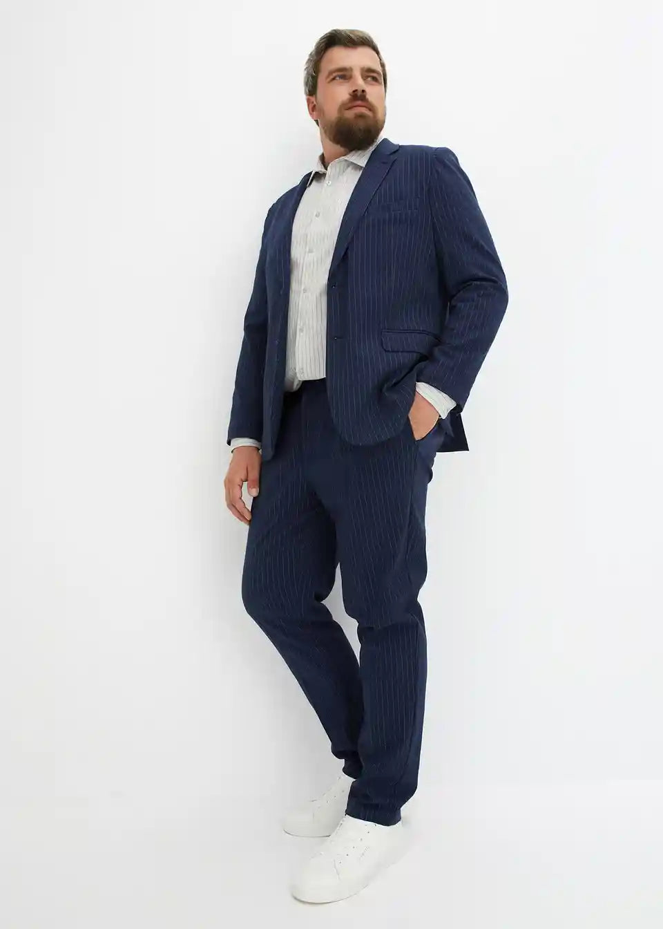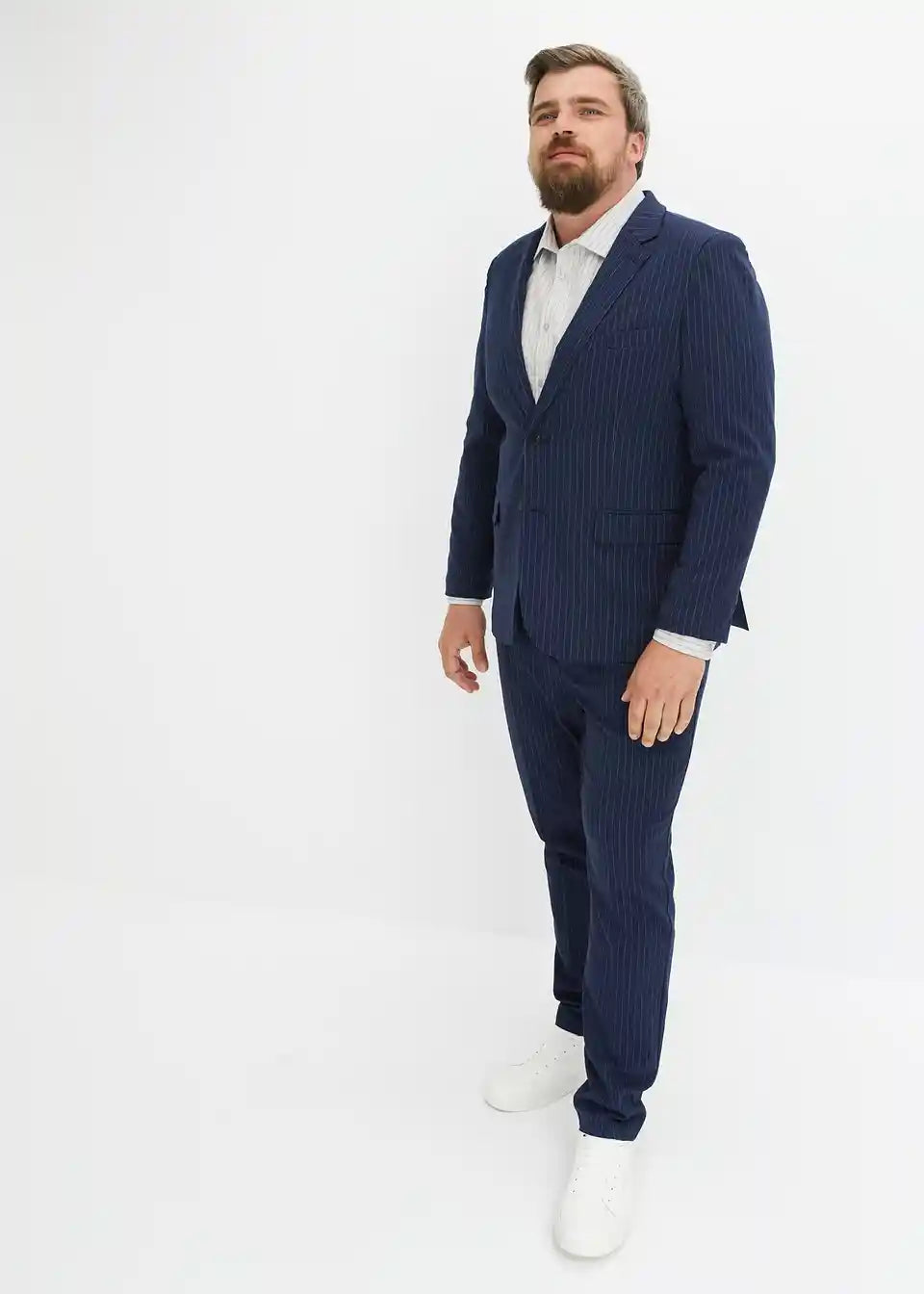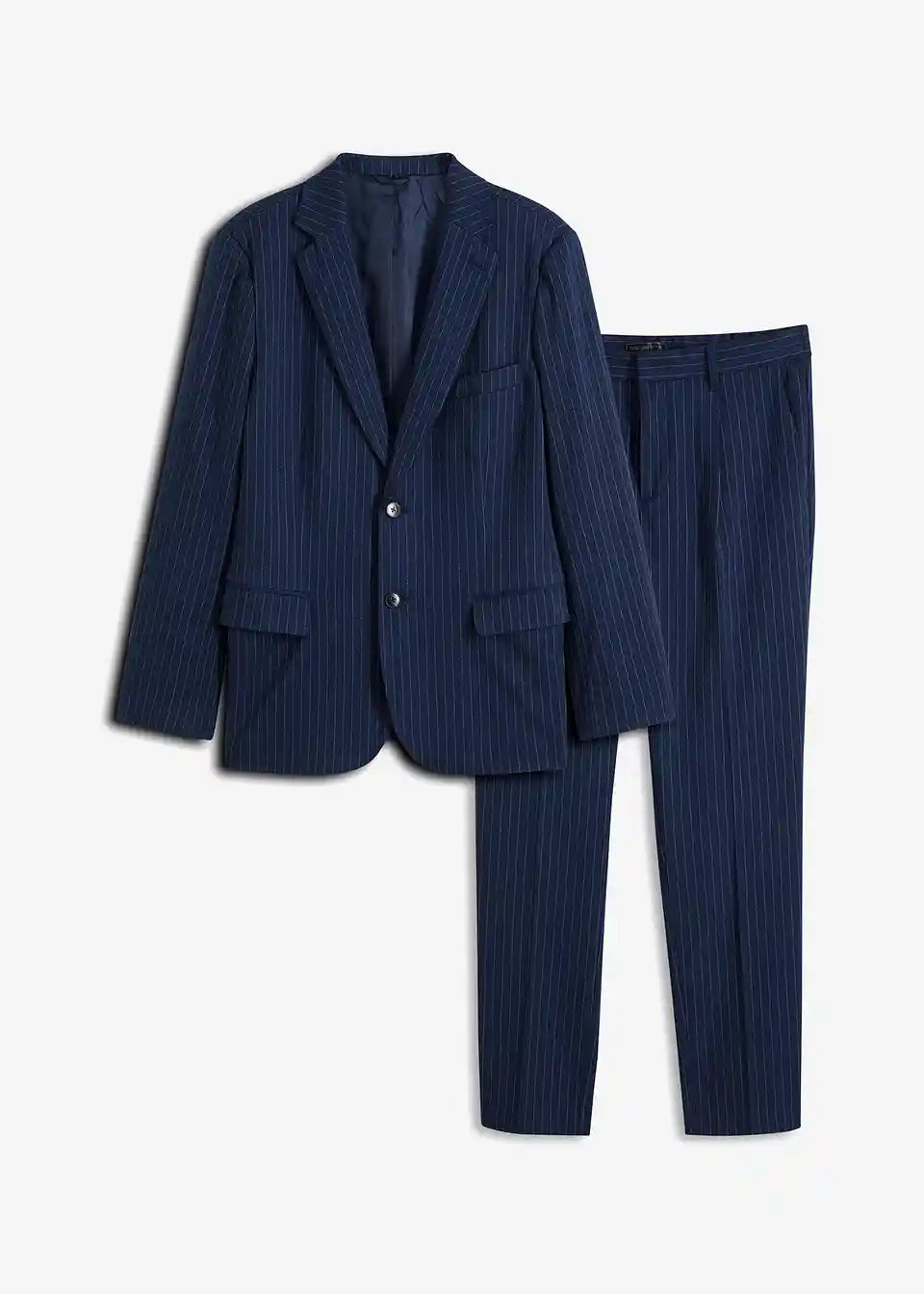 Moderno odijelo Slim Fit kroja s uzorkom pruga, sastoji se od sakoa i hlača