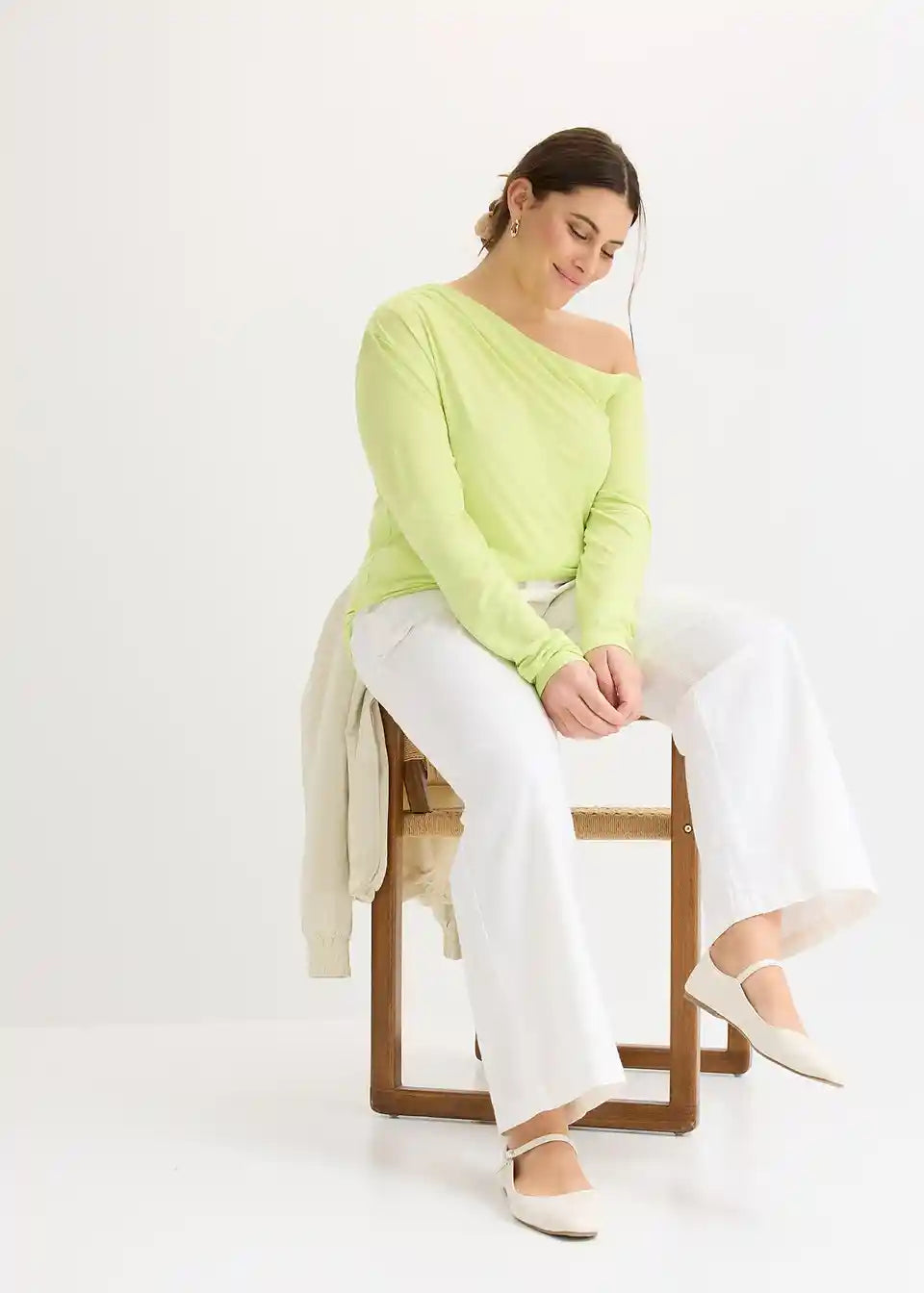 Majica s otvorenim ramenima i naborima
