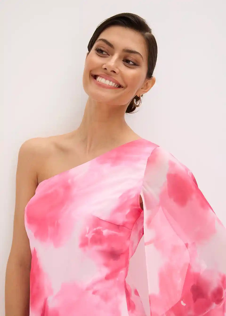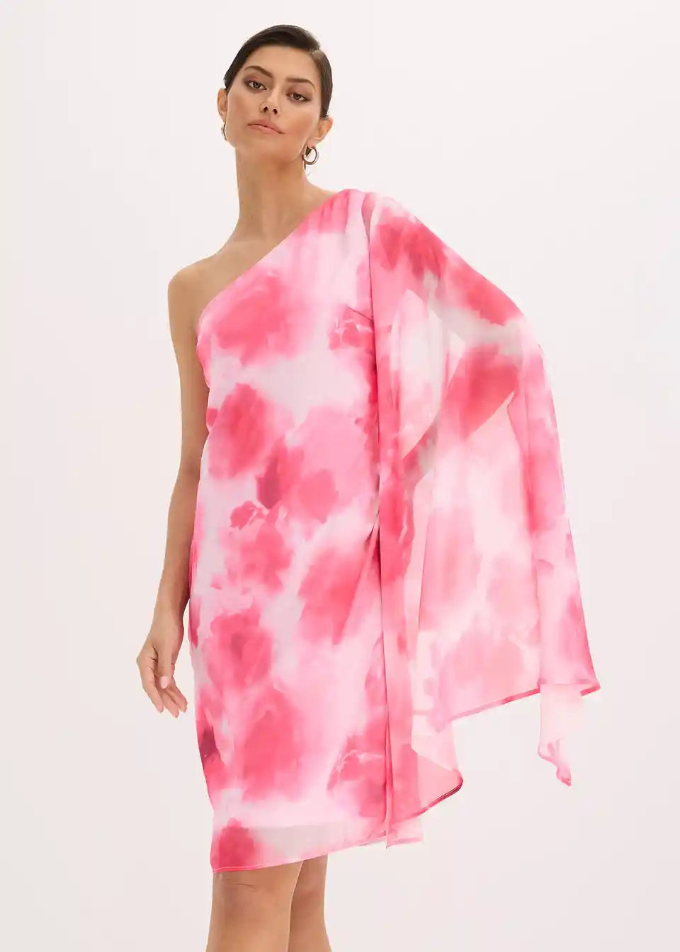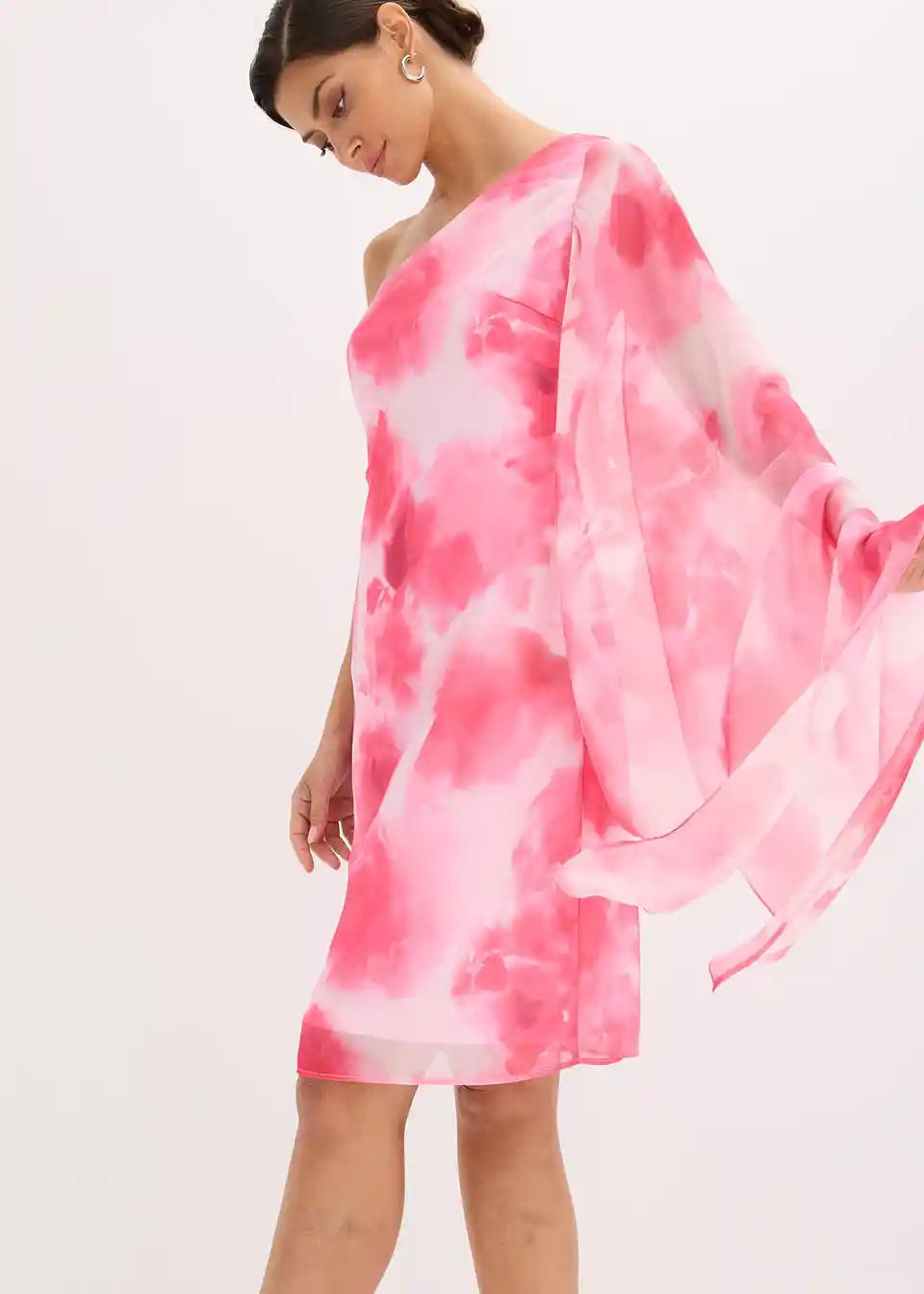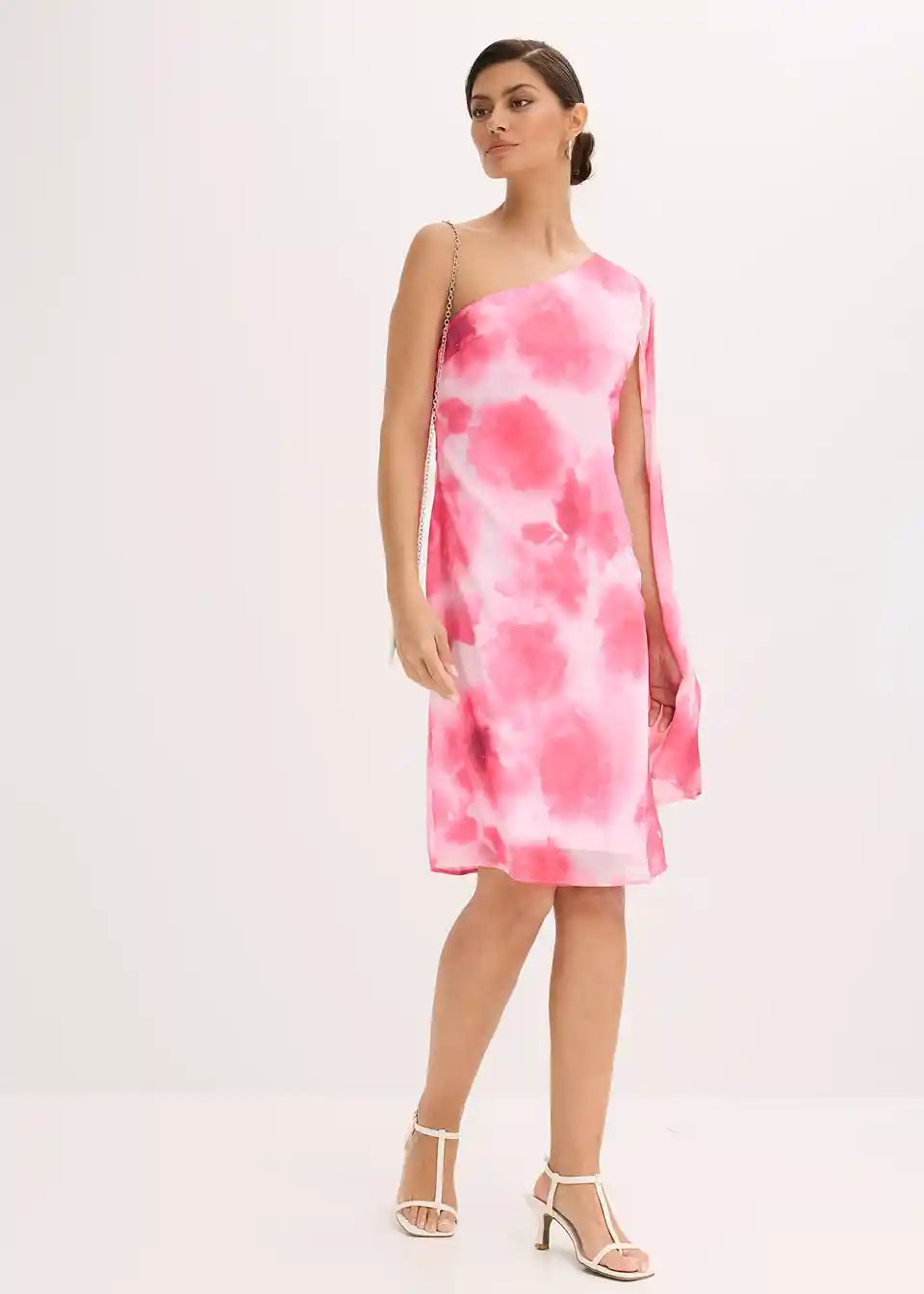 Moderna i ženstvena: One-Shoulder haljina od finog šifona s printom po cijeloj površini, što svaki komad čini unikatnim.