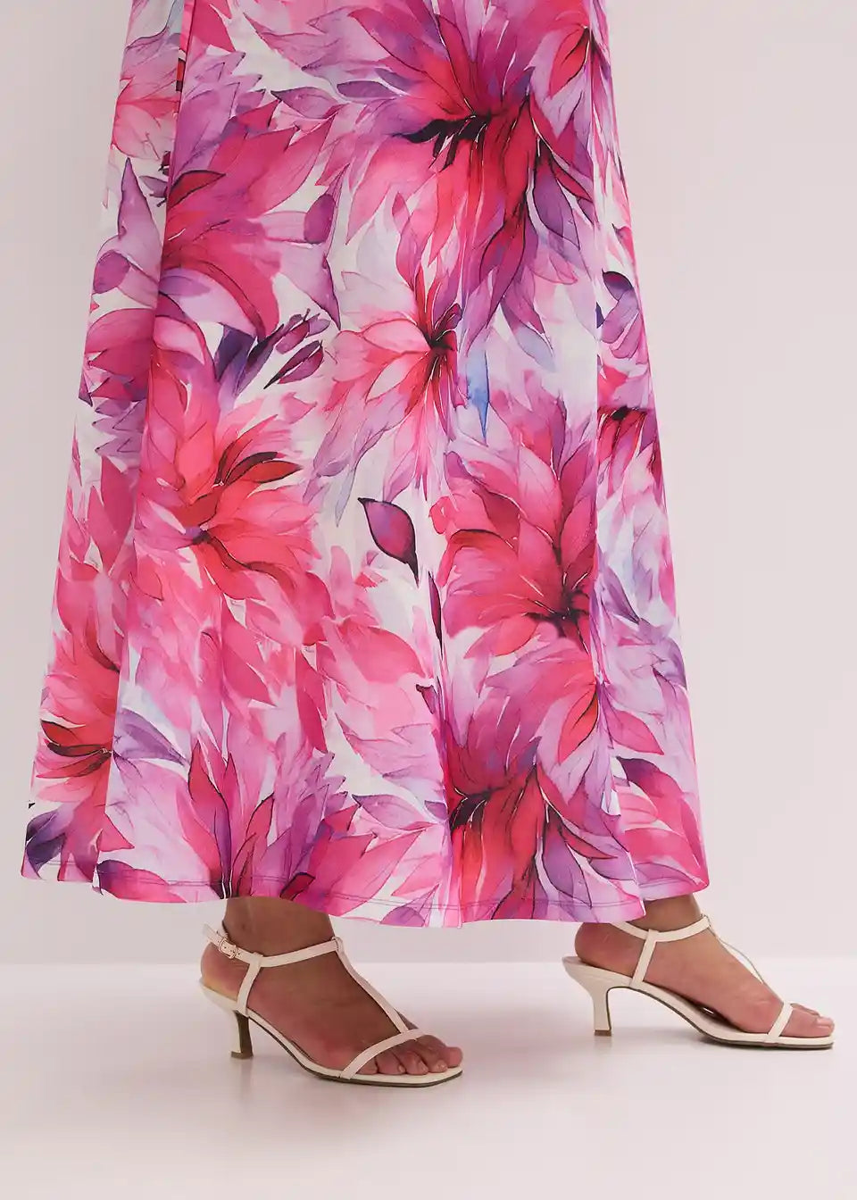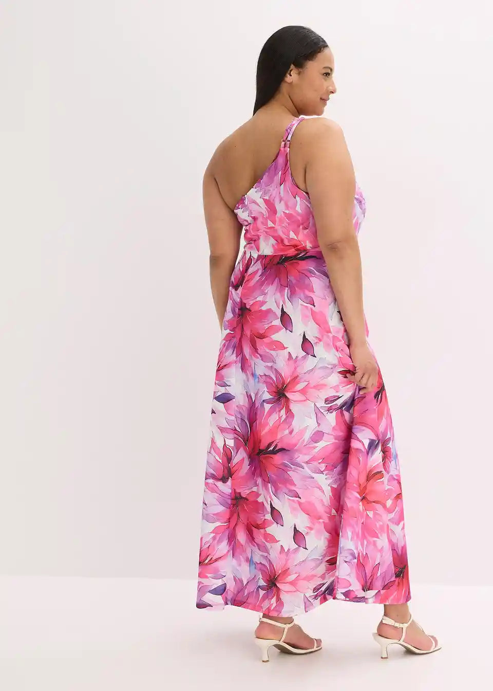 Moderna i ženstvena: One-Shoulder haljina maksi duljine od strukturiranog krepa s uzorkom po cijeloj površini čini svaki komad jedinstvenim