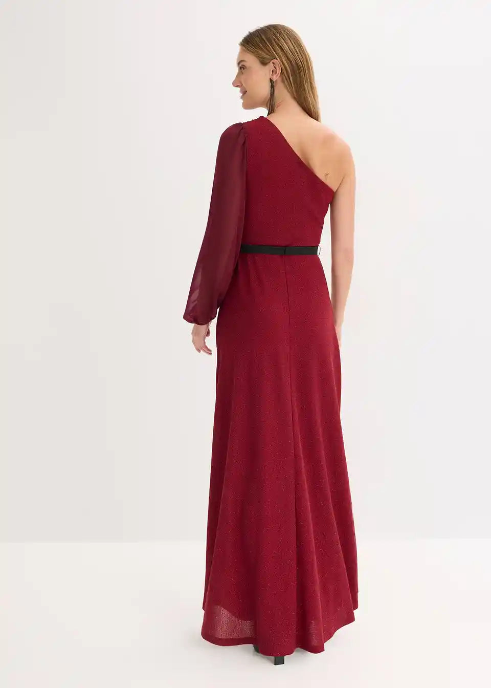 Glamurozna i ženstvena: večernja haljina s One-Shoulder izrezom i šljokicama u maksi dužini s cvjetnim detaljem u struku